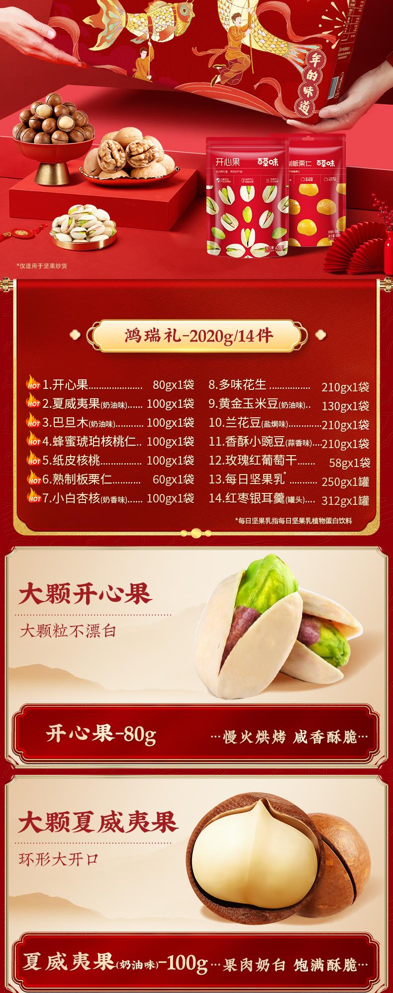 【百草味】坚果零食礼盒2020g(鸿瑞礼)