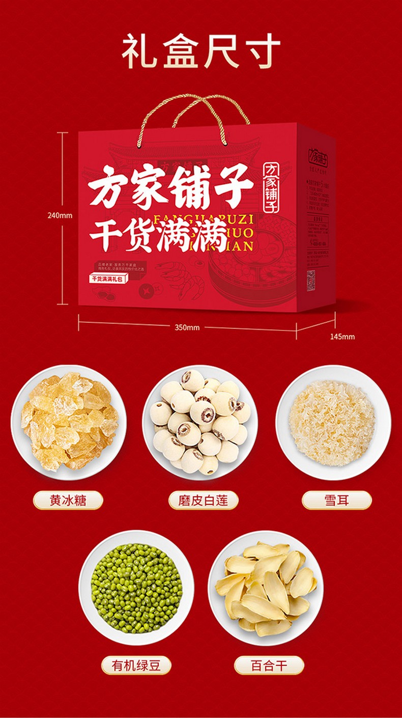 【方家铺子】夏爽杂粮干货礼盒1618g/礼盒装(绿豆百合莲子银耳羹)