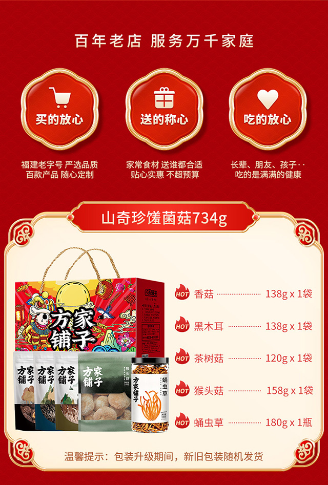 【方家铺子】山奇珍馐菌菇干货节日礼盒734g/礼盒装