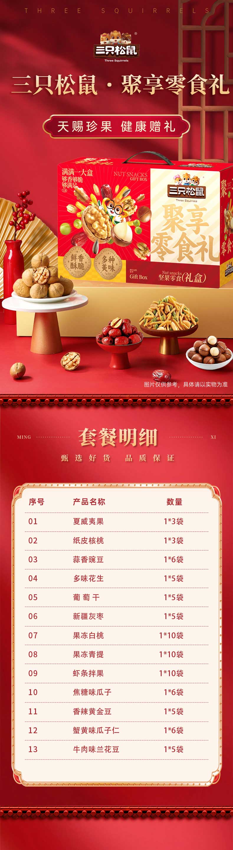 2.三只松鼠零食聚享礼(约750g手抓包系列79袋)
