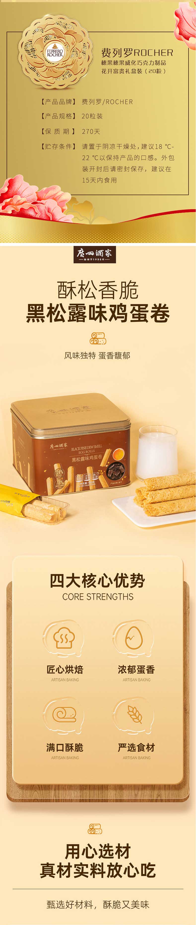 费列罗/蒙鑫/广州酒家-巧克力蛋卷坚果心意福盟组合1760g