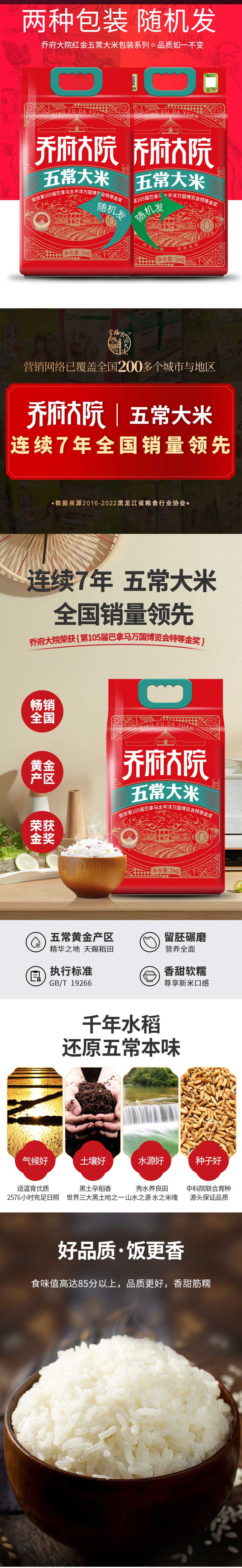 2.乔府大院五常大米红金色5kg