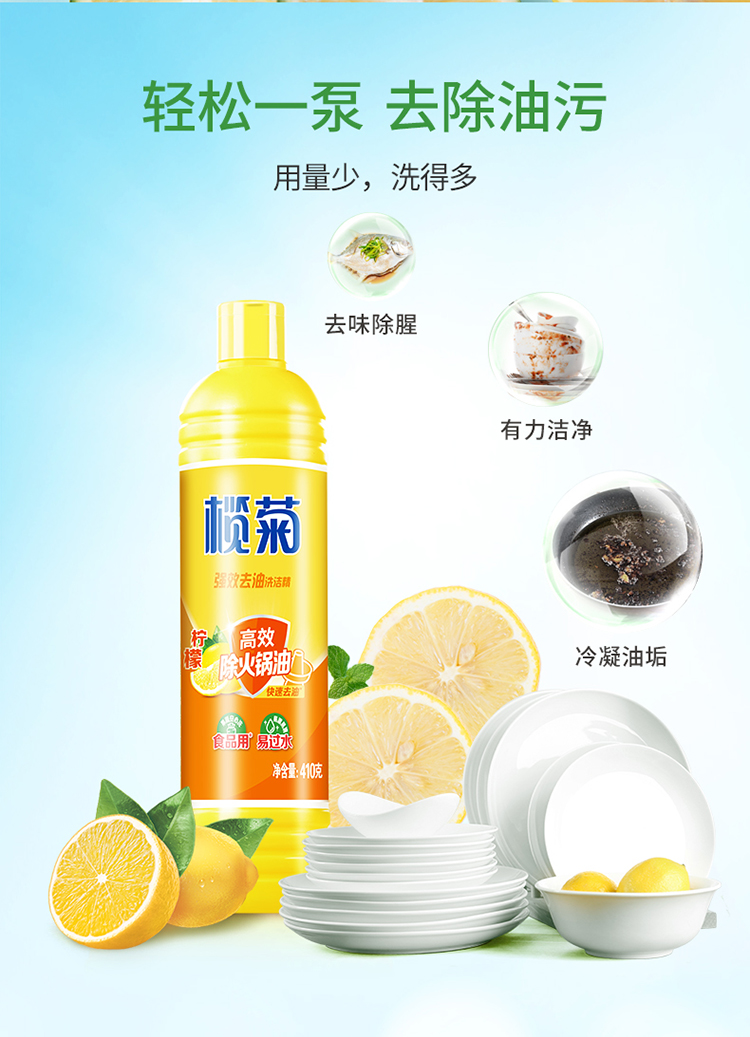 3、榄菊-强效去油洗洁精410g( 柠檬味)x2袋