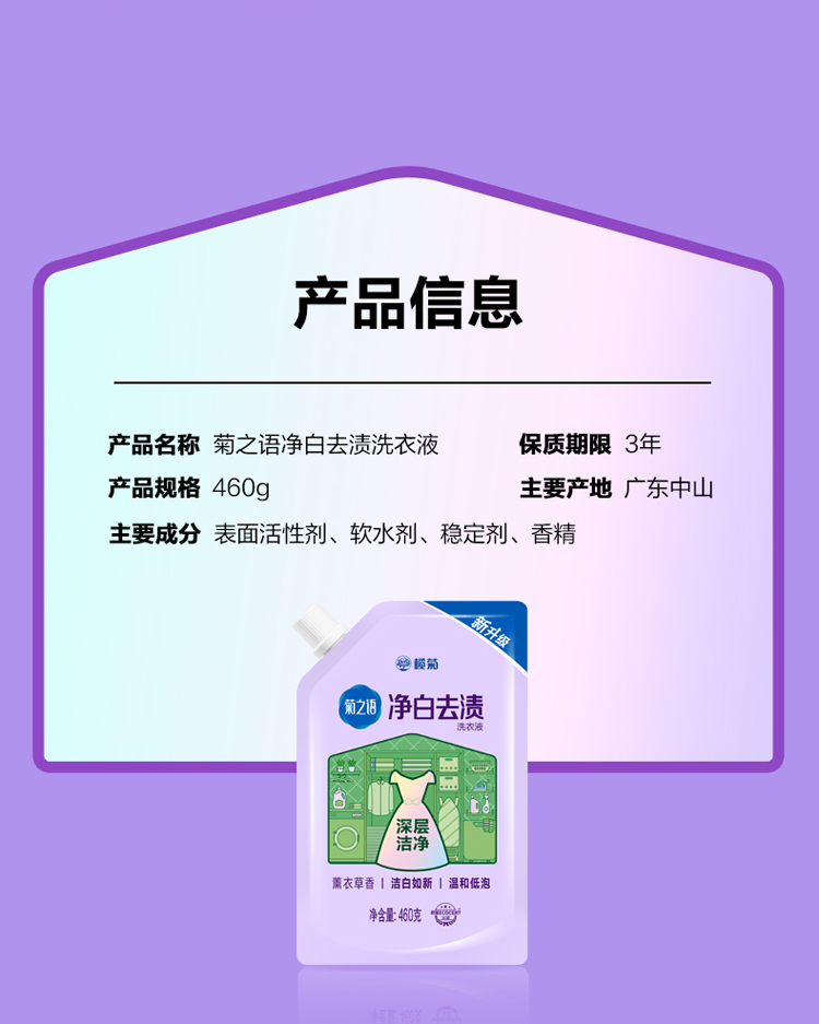 2、榄菊 菊之语净白去渍洗衣液460gx2袋