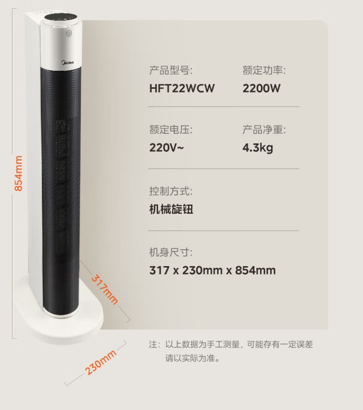 美的 暖风机 HFT22WCW