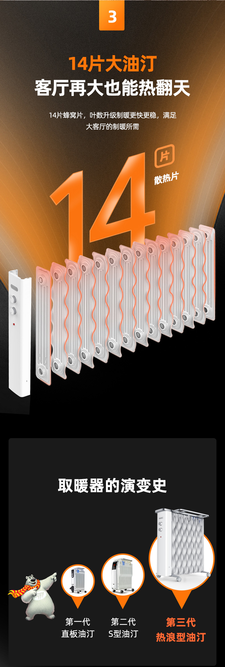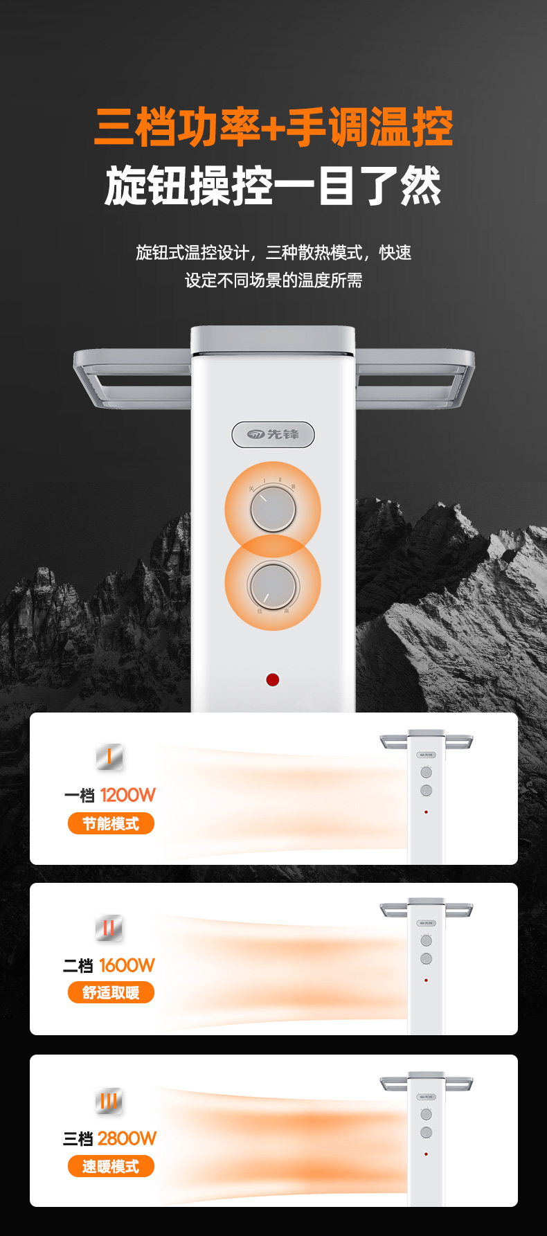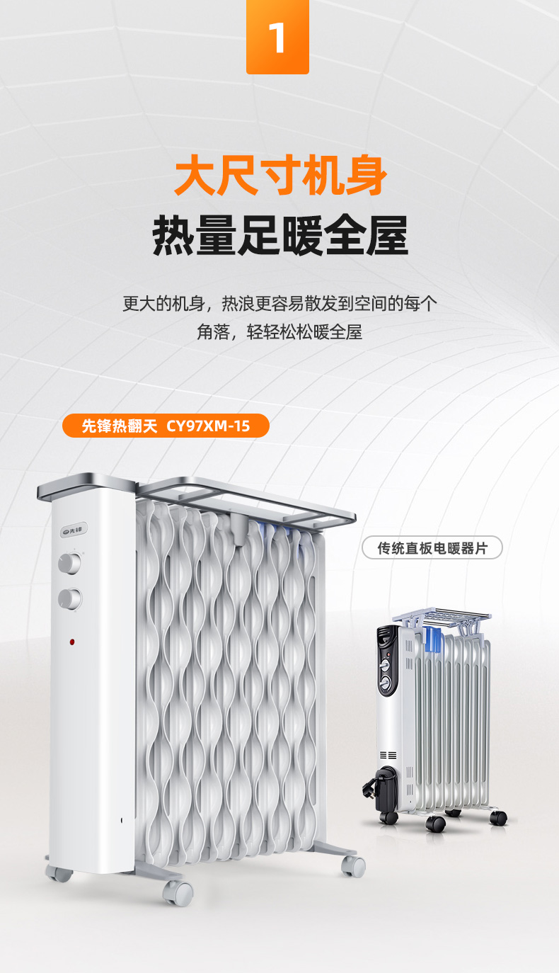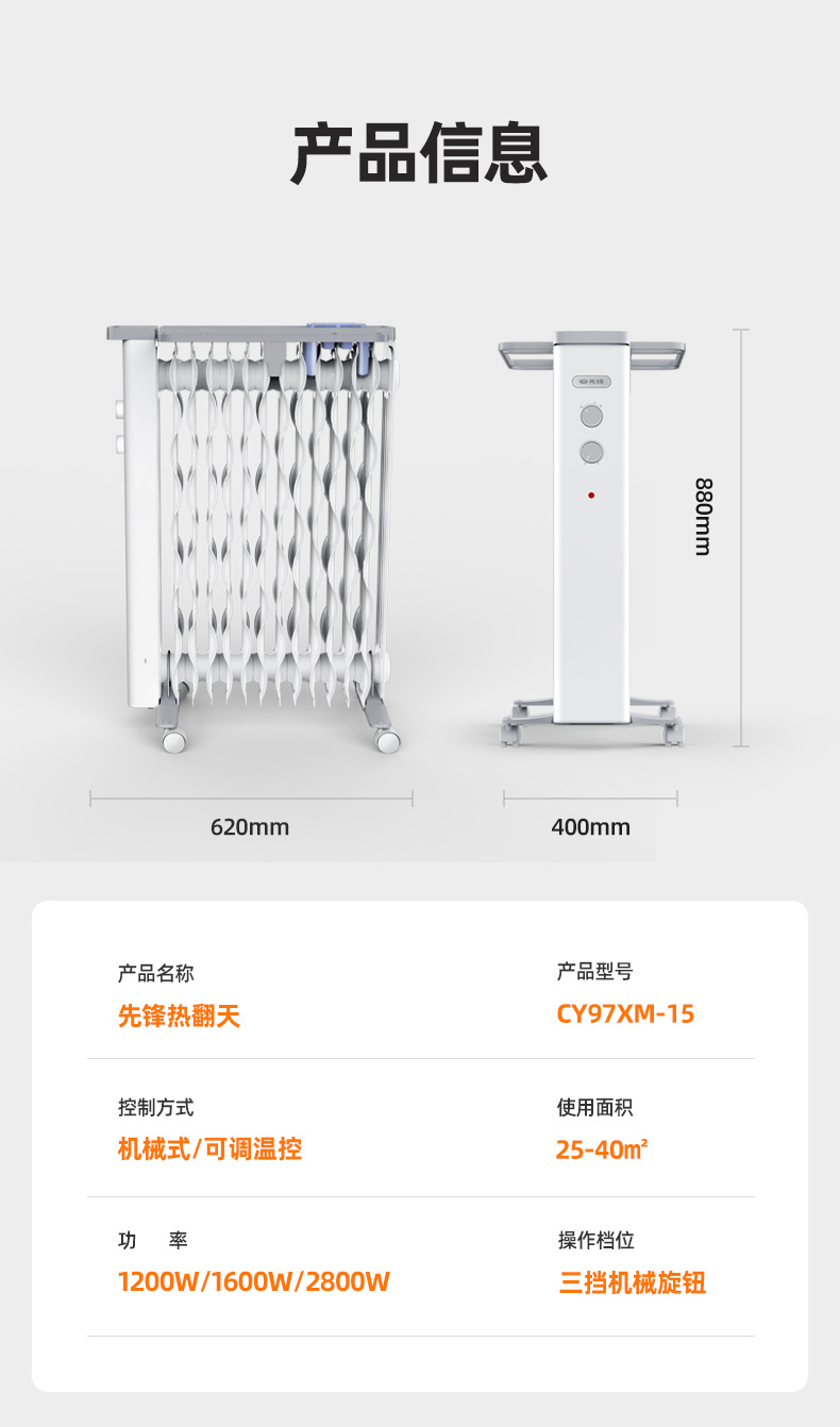 先锋电热油汀CY97XM-15(DS1975)(机械式/可调温控)