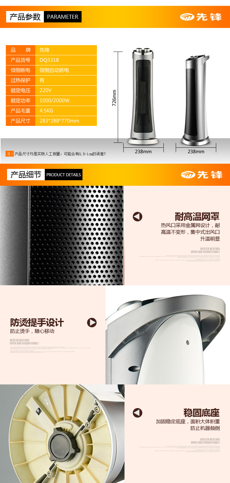 先锋暖风机DQ3318(HN413PS-20) (机械式)