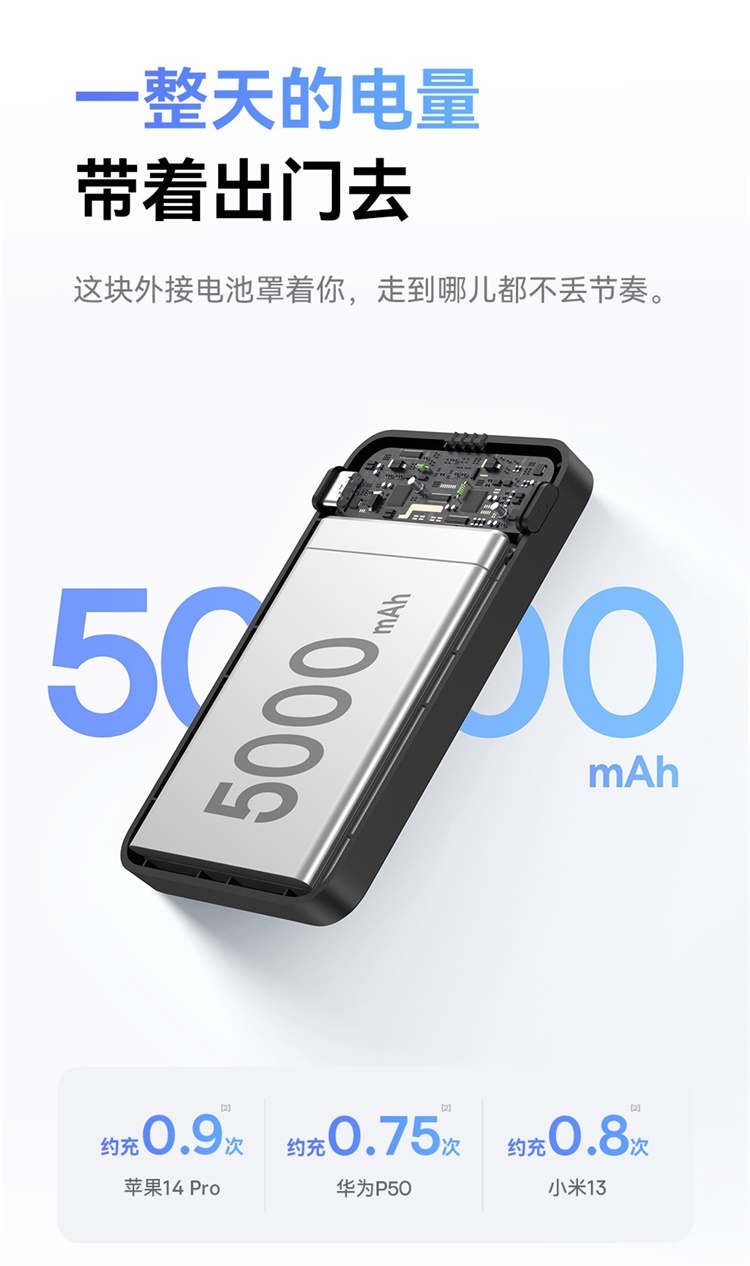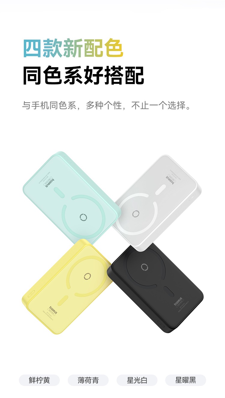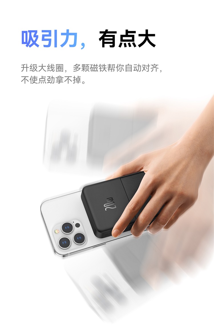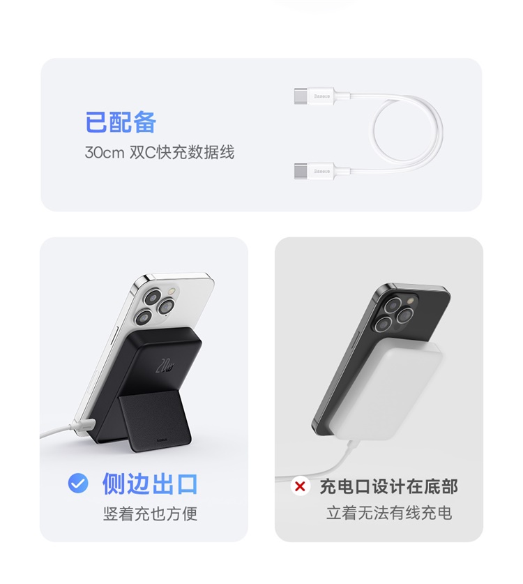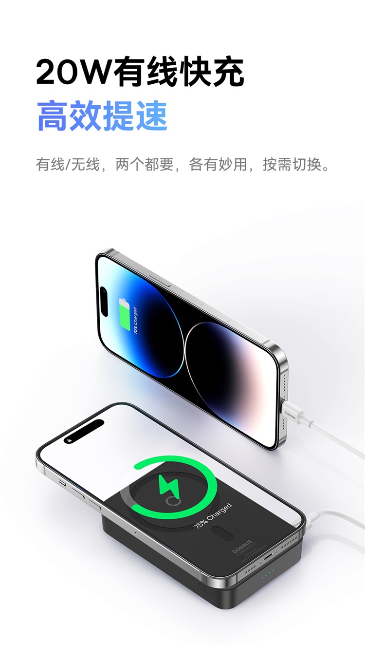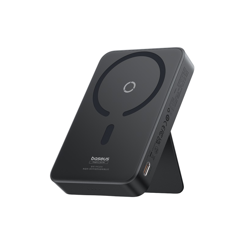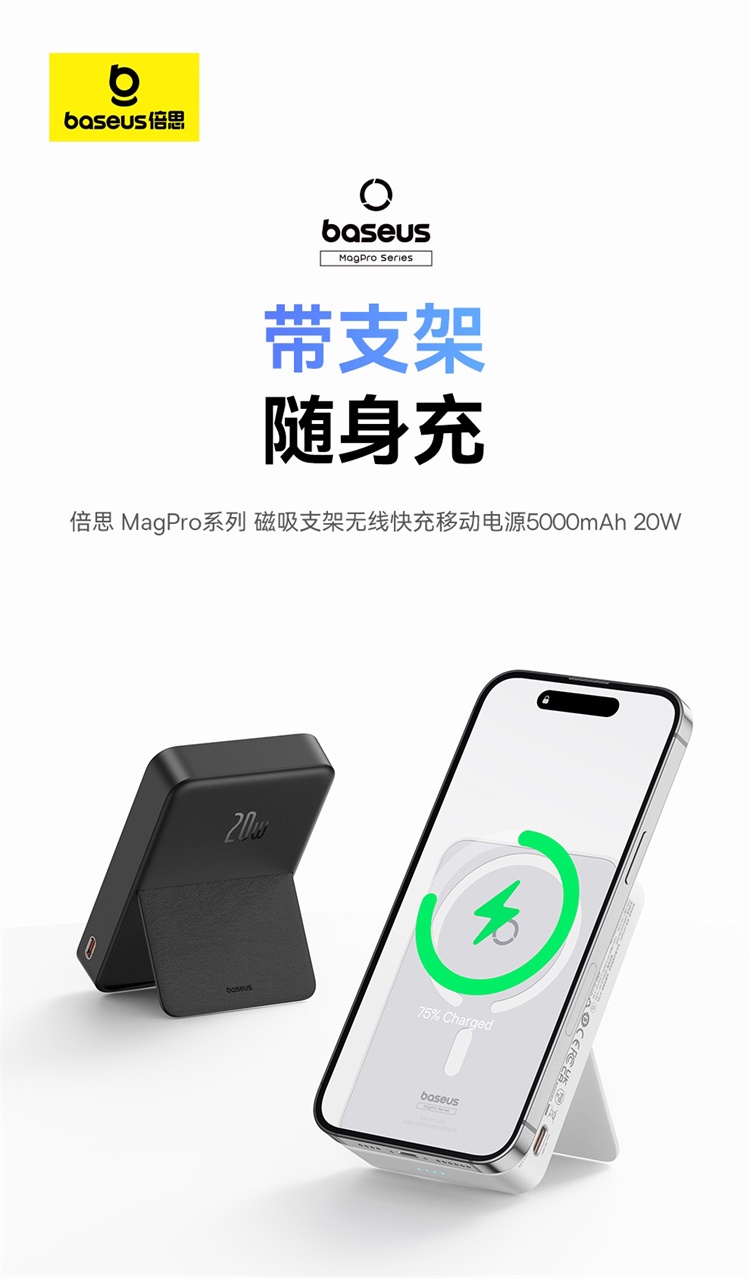 倍思MagPro磁吸支架无线快充移动电源5000mAh20W星际黑(含:简易数据线Type-CtoType-C(20V/3A)30cm白色)