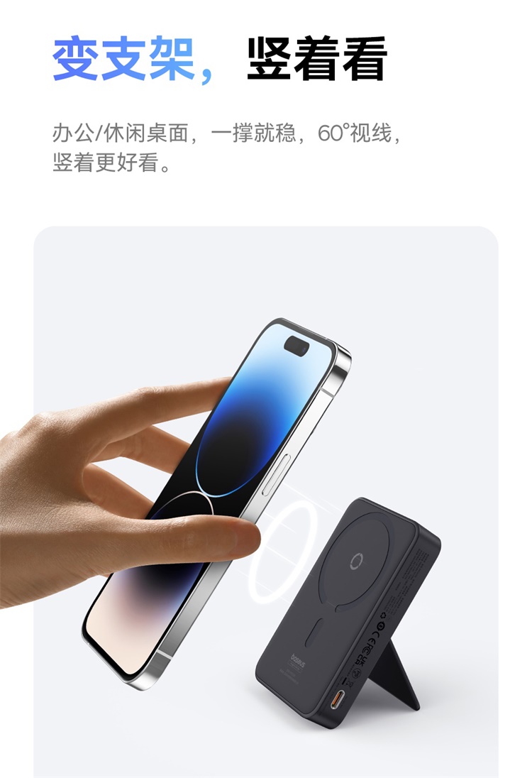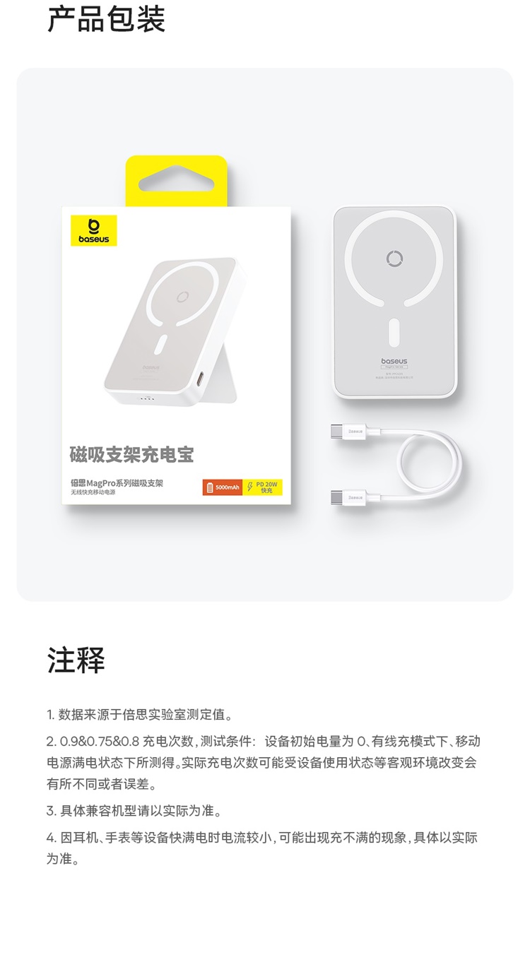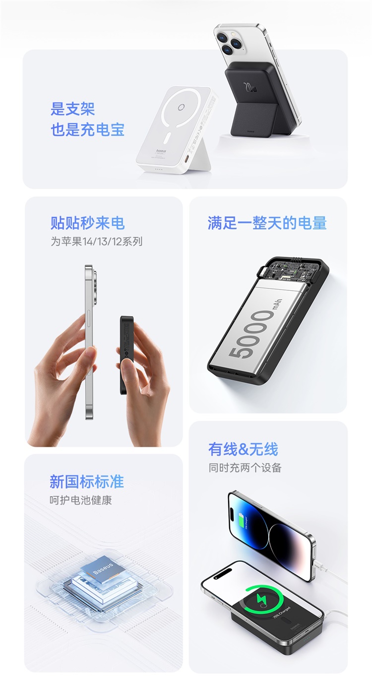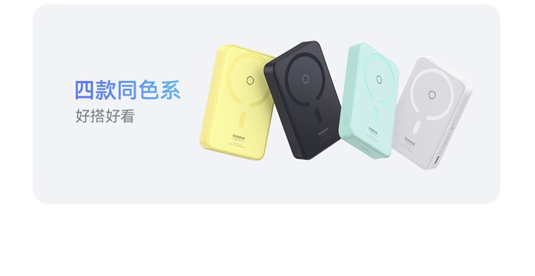 倍思MagPro磁吸支架无线快充移动电源5000mAh20W薄荷青(含:简易数据线Type-CtoType-C(20V/3A)30cm白色)