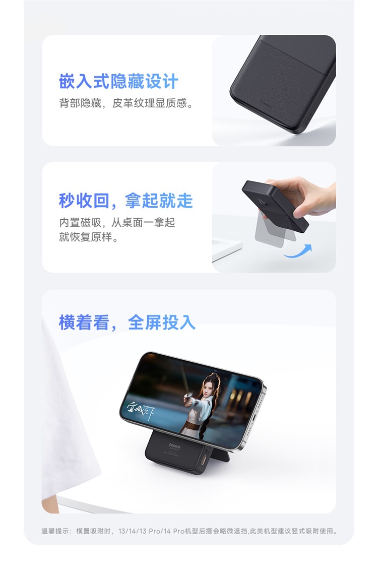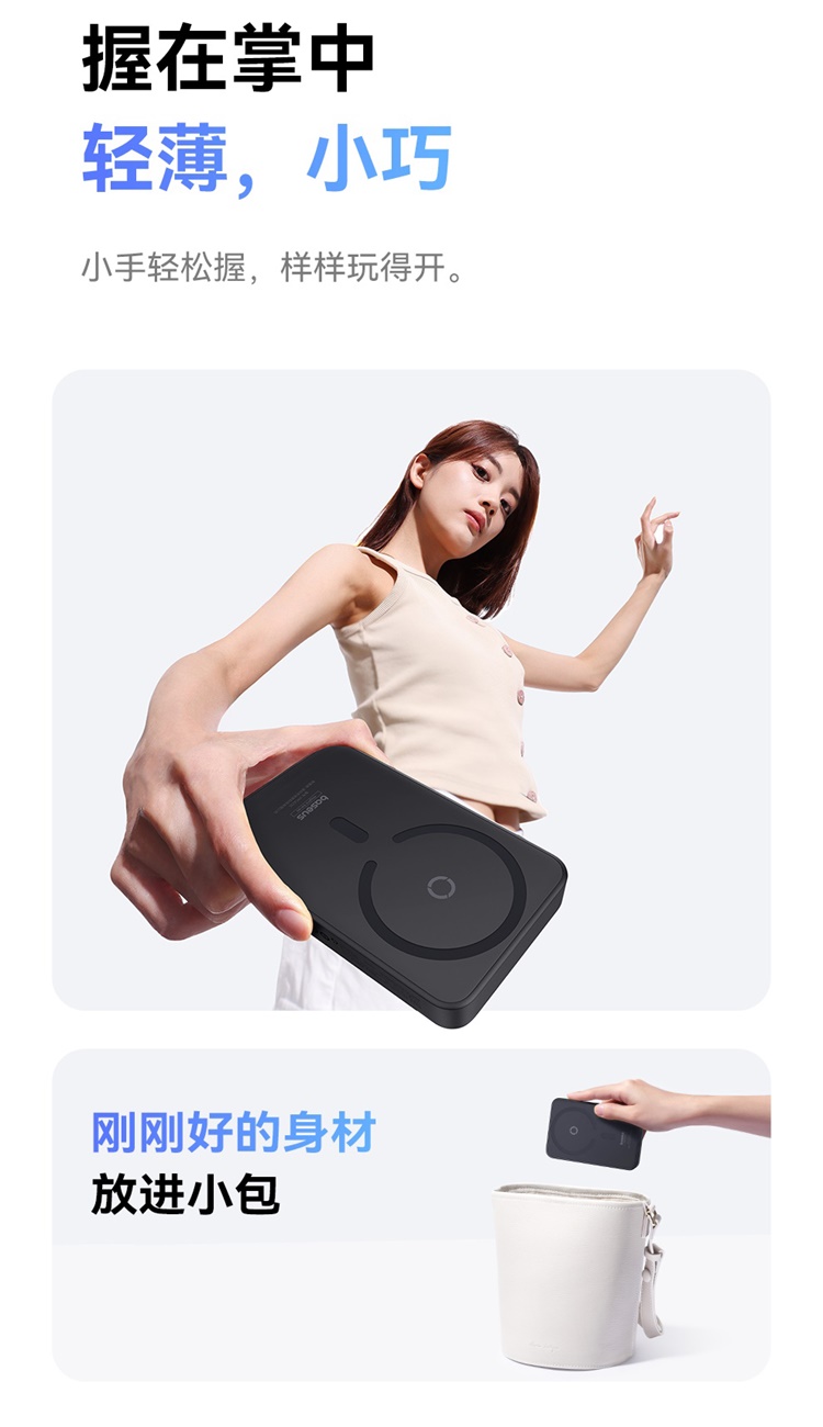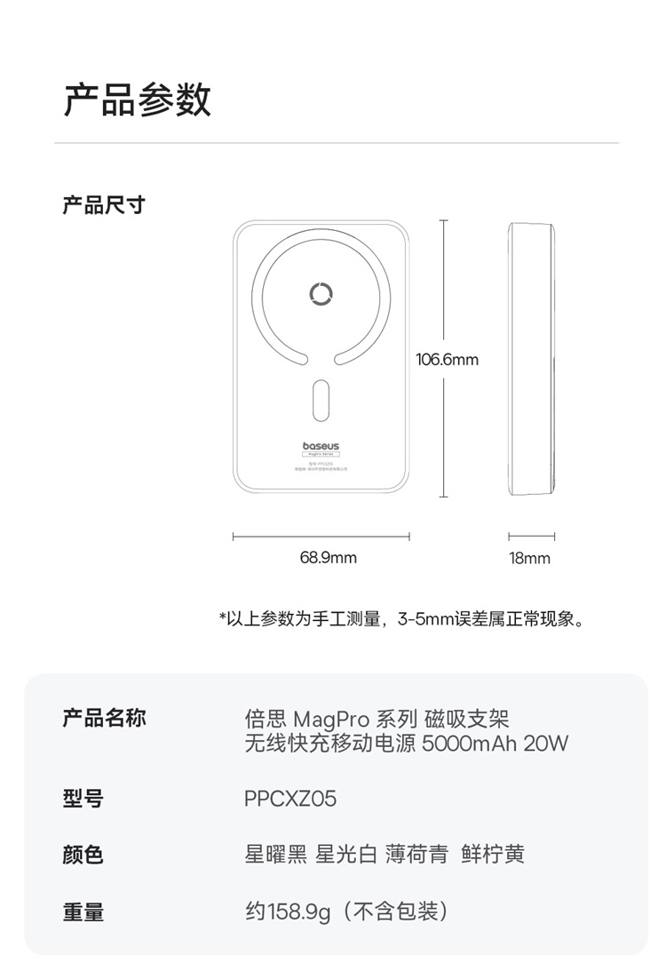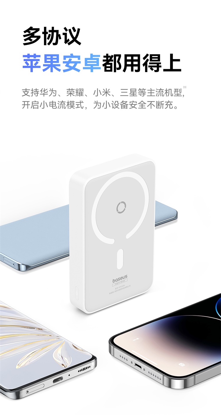 倍思MagPro磁吸支架无线快充移动电源5000mAh20W薄荷青(含:简易数据线Type-CtoType-C(20V/3A)30cm白色)