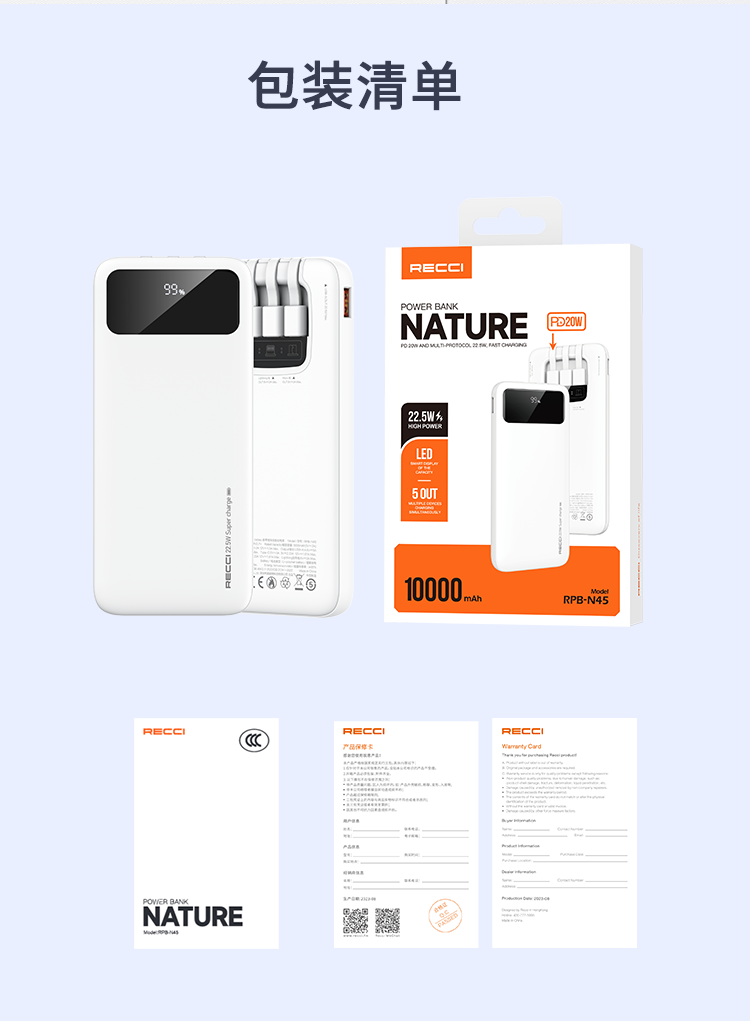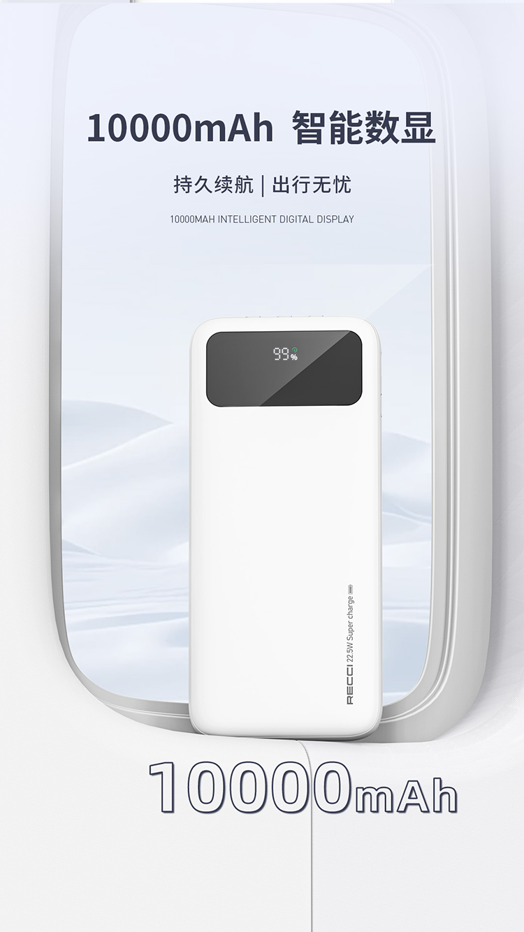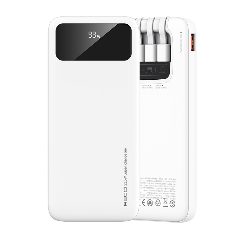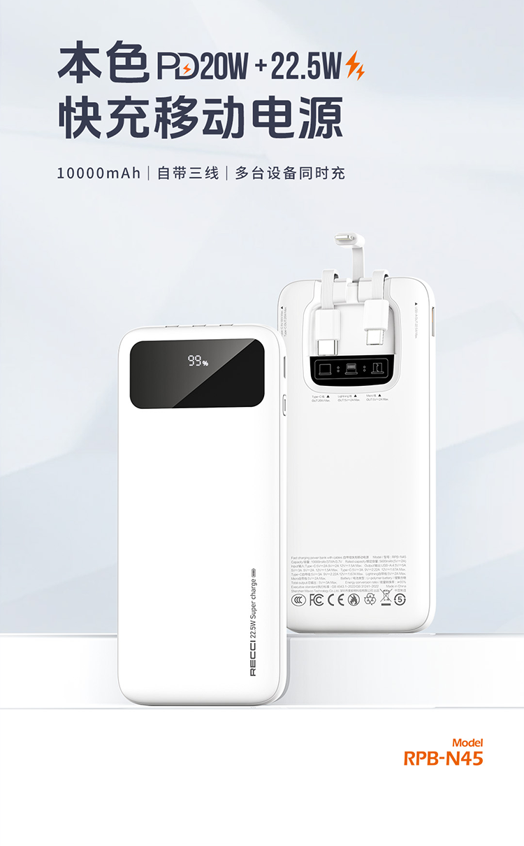 RECCI锐思RPB-N45充电宝22.5W+PD20W自带线10000mAh可支持苹果