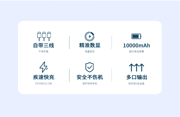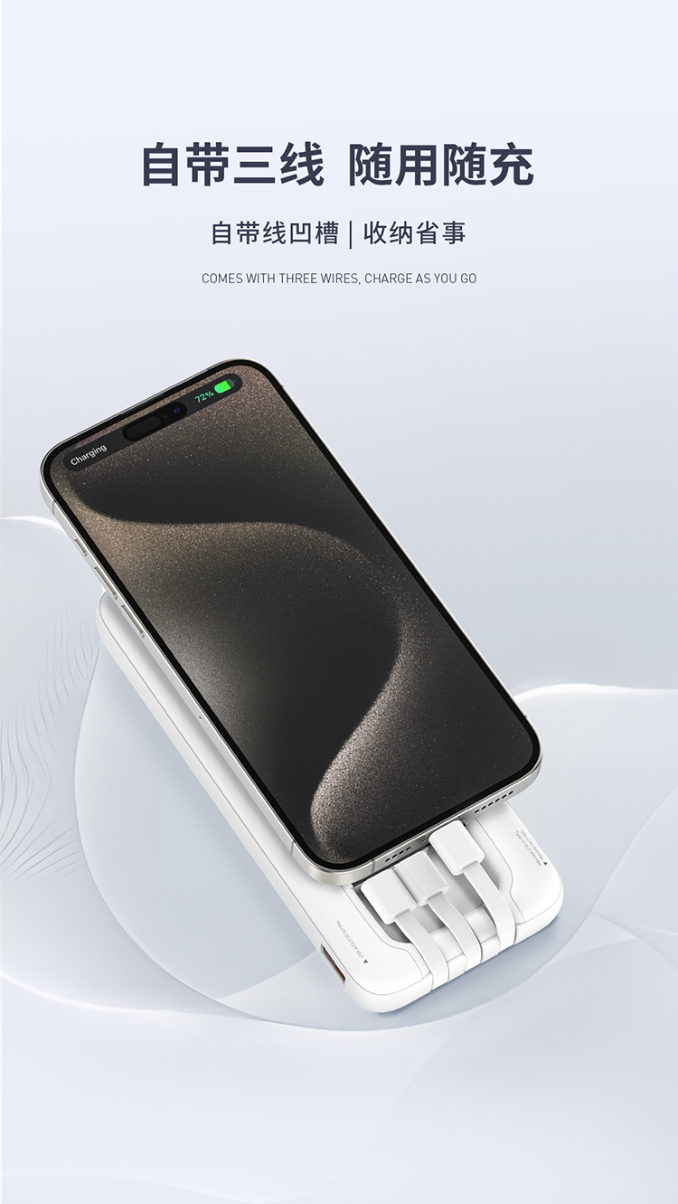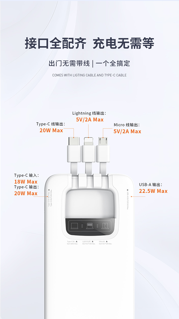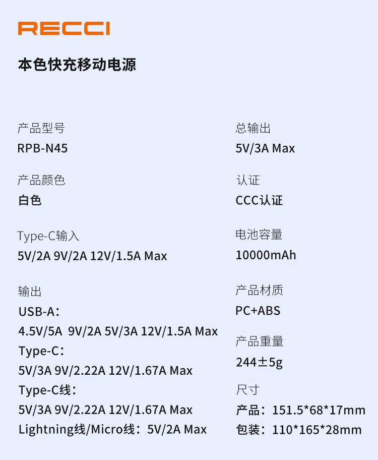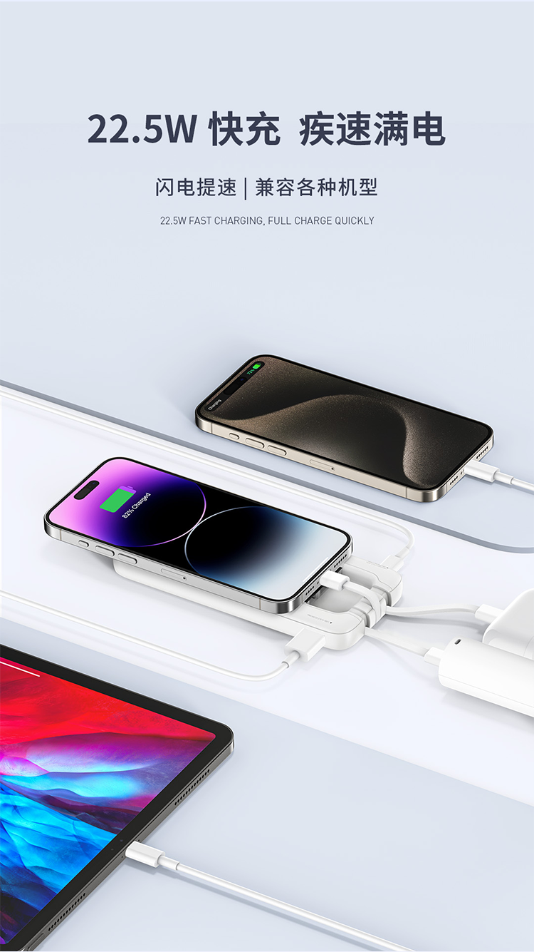 RECCI锐思RPB-N45充电宝22.5W+PD20W自带线10000mAh可支持苹果