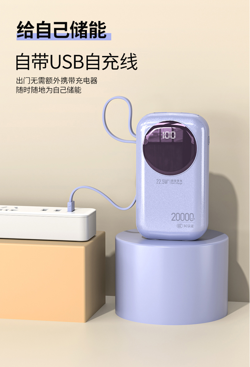 2. 出门无需自带线,1个充电宝解决「充电+储能」双难题;