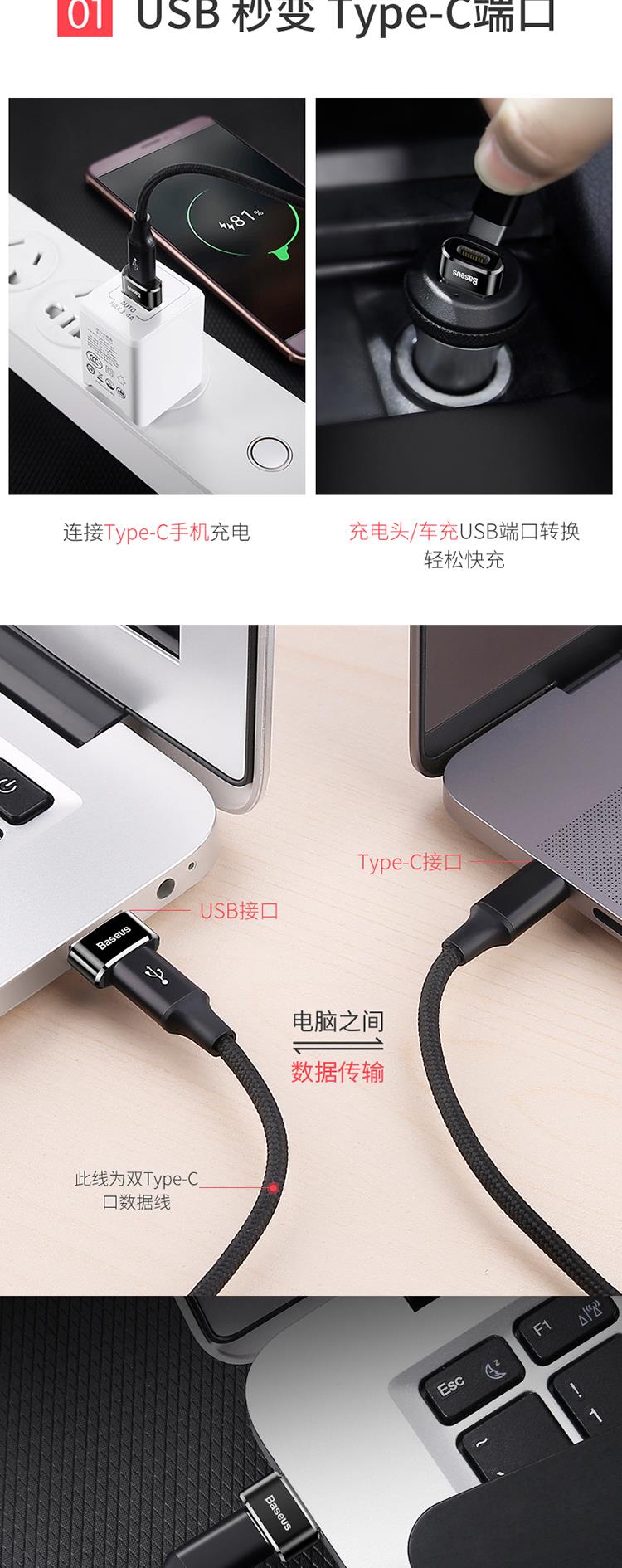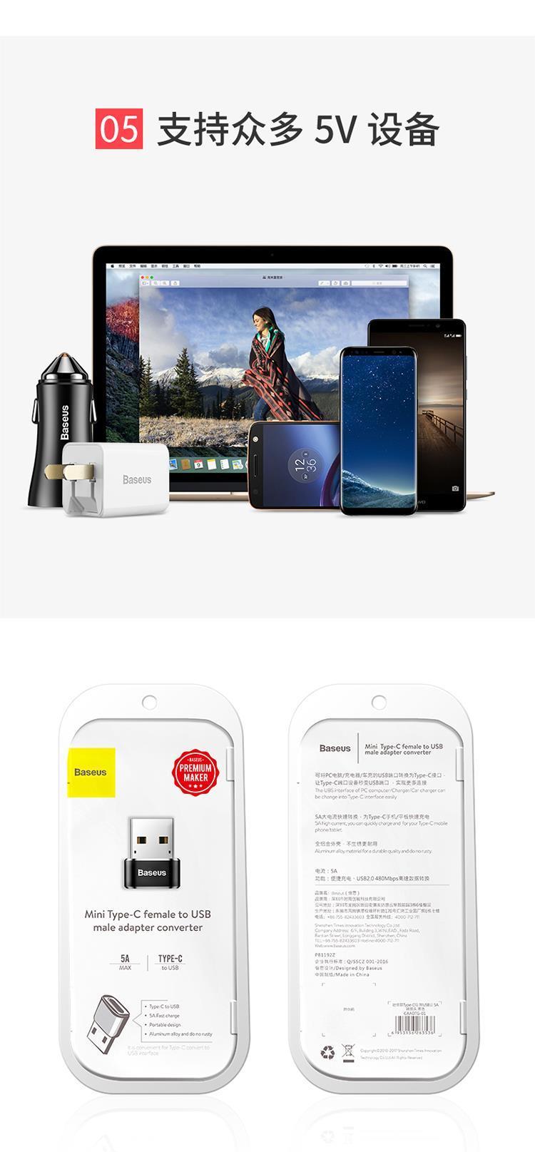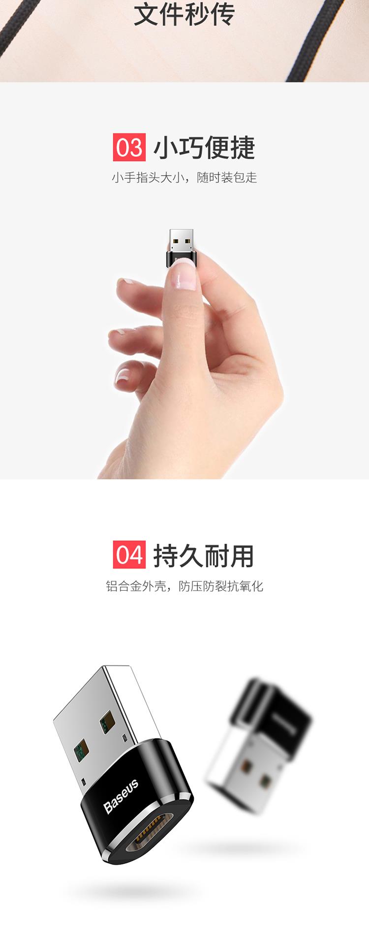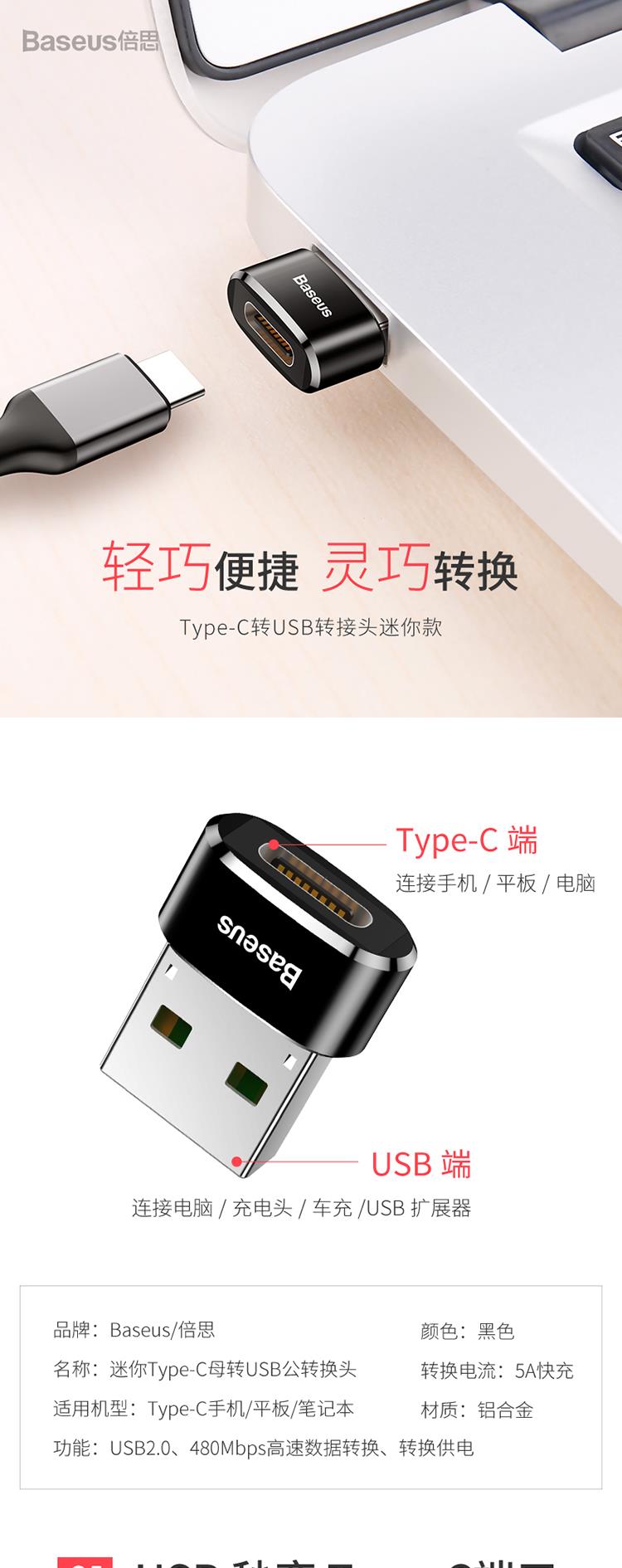 倍思迷你Type-C母转USB公转换头颜色:黑色 CAAOTG-01