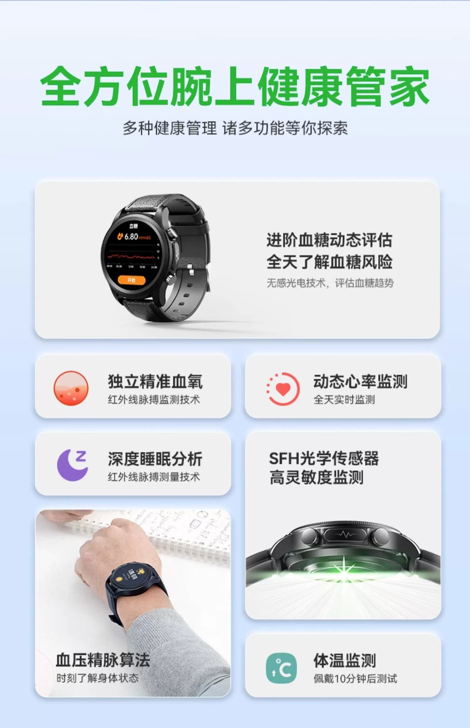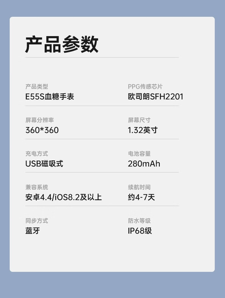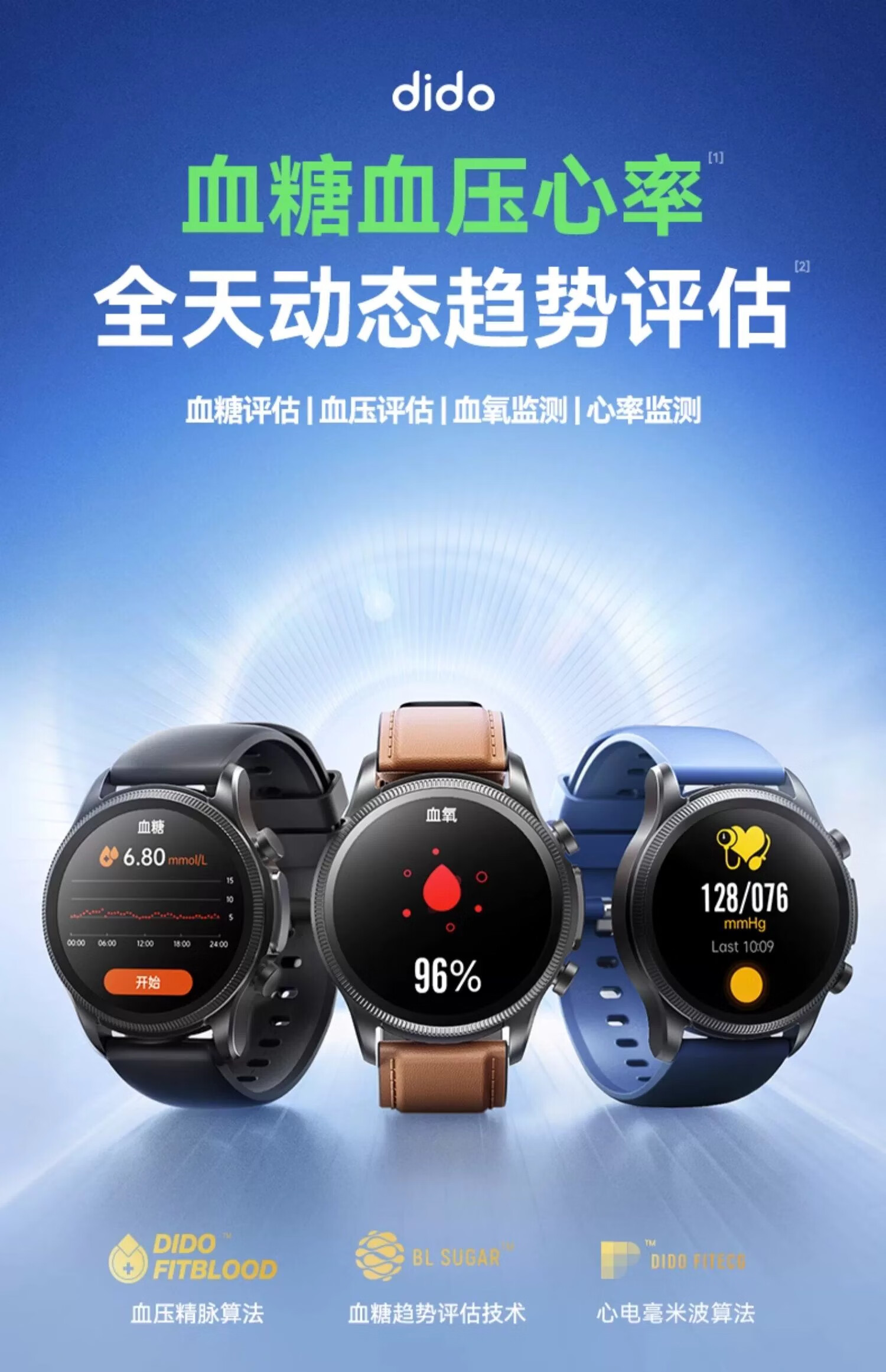 dido E55 高精度心电血压血糖血糖免扎针监测心率血氧智能手表