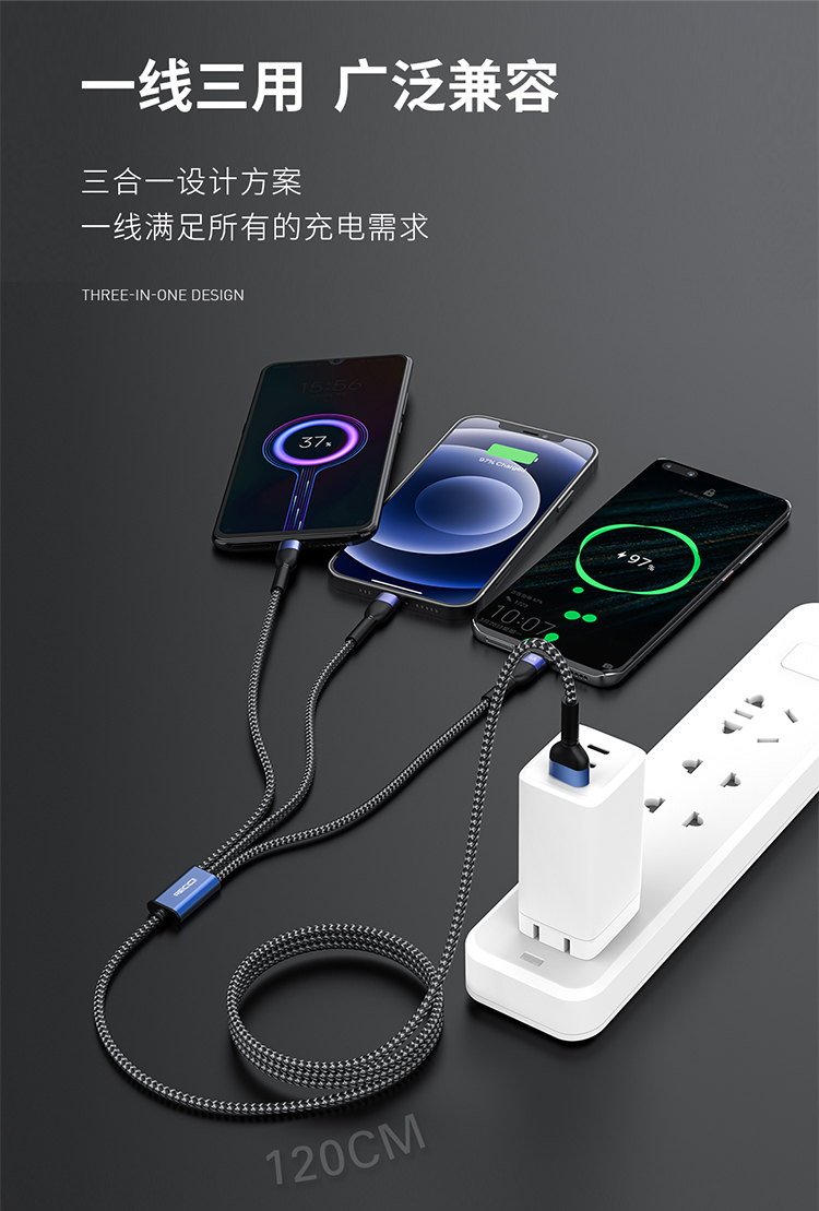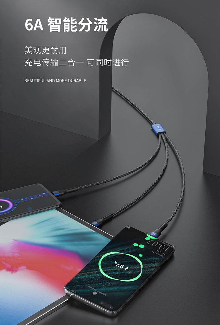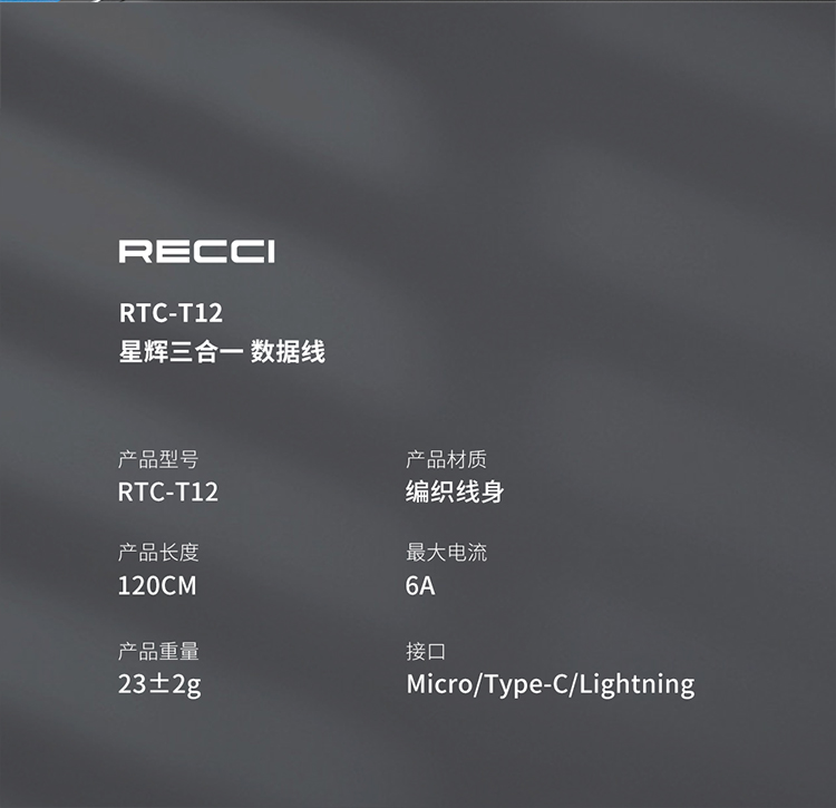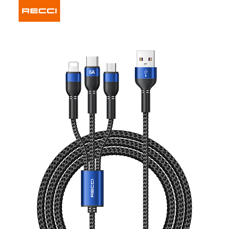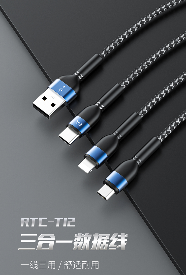 RECCI锐思RTC-T12一拖三数据线快充线USB转苹果华为安卓Type-c