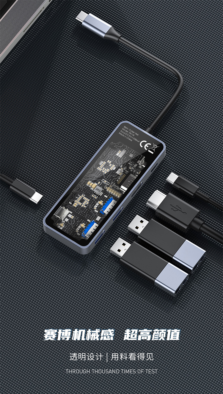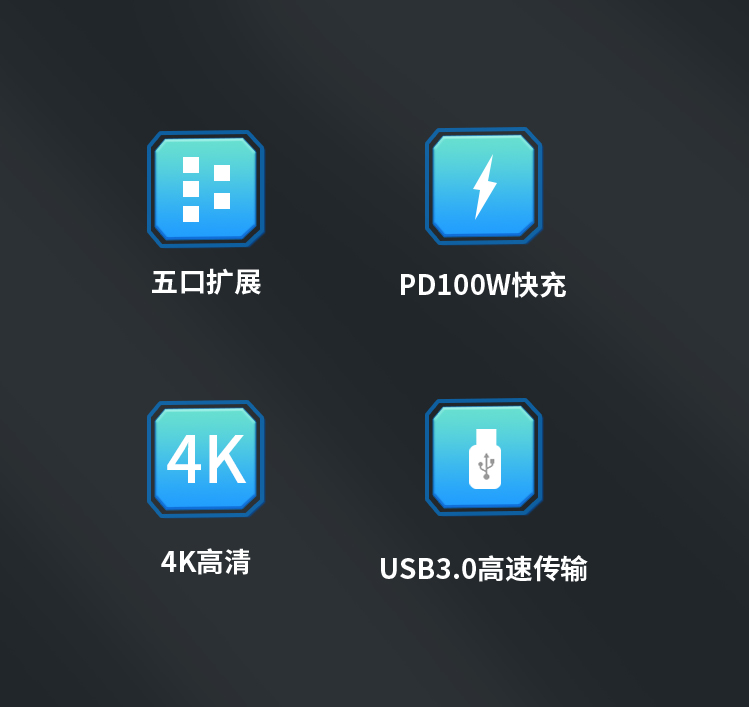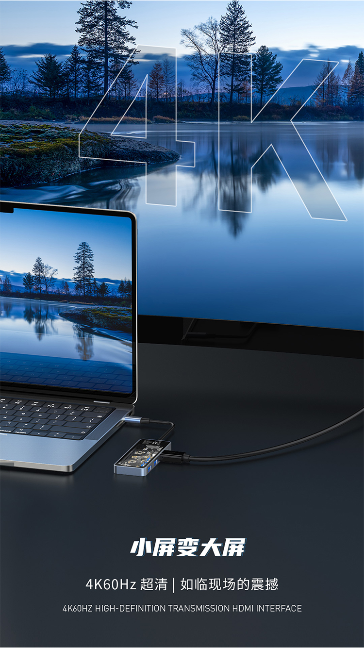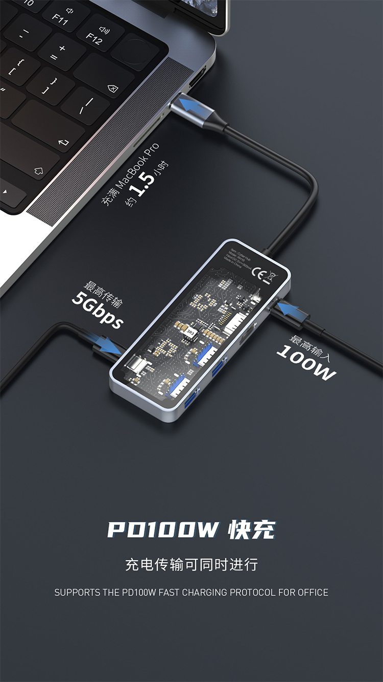 RECCI锐思RH16数据线支持PD100W充电线转HDM五合一HUB