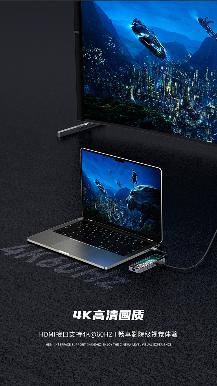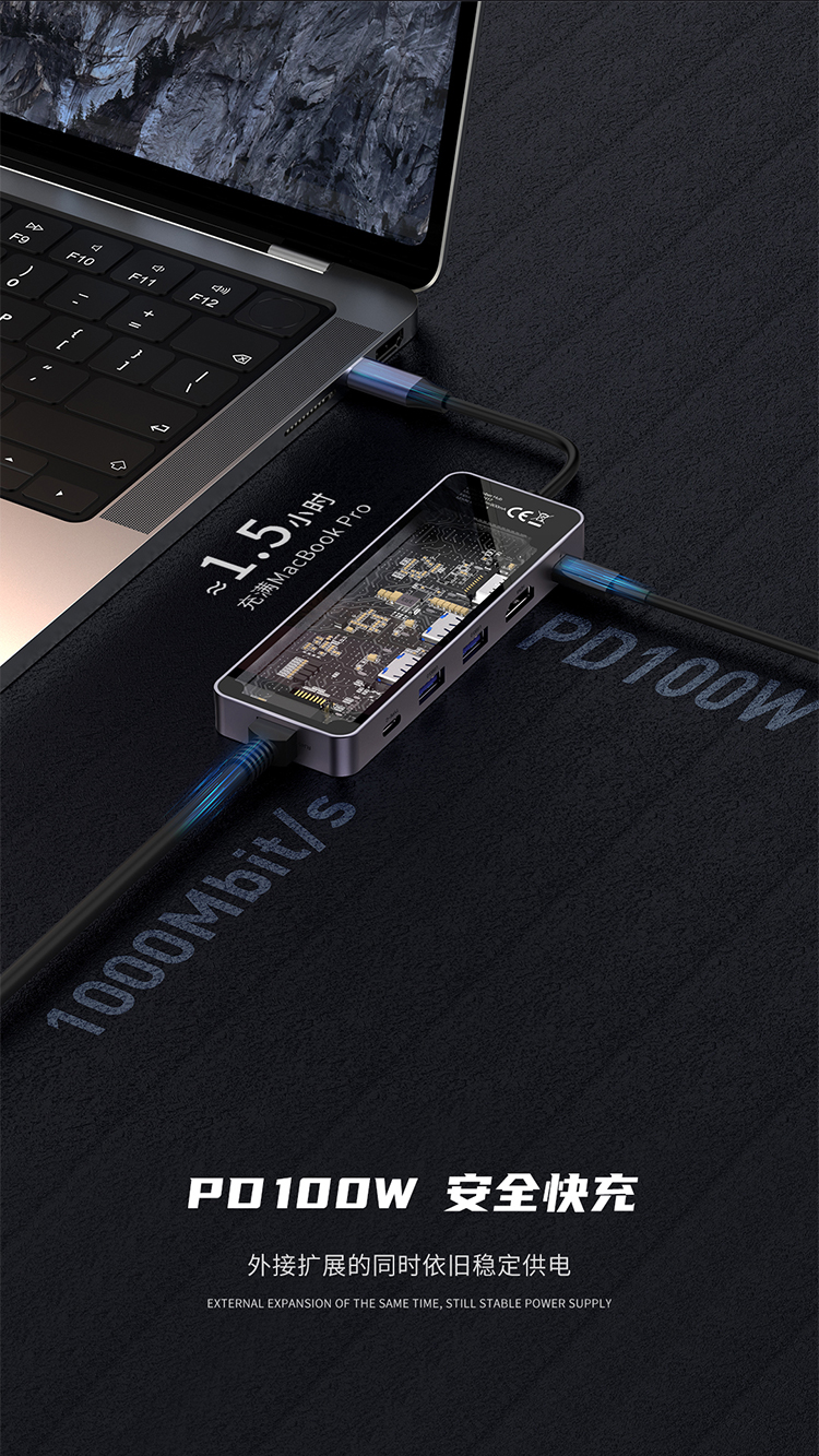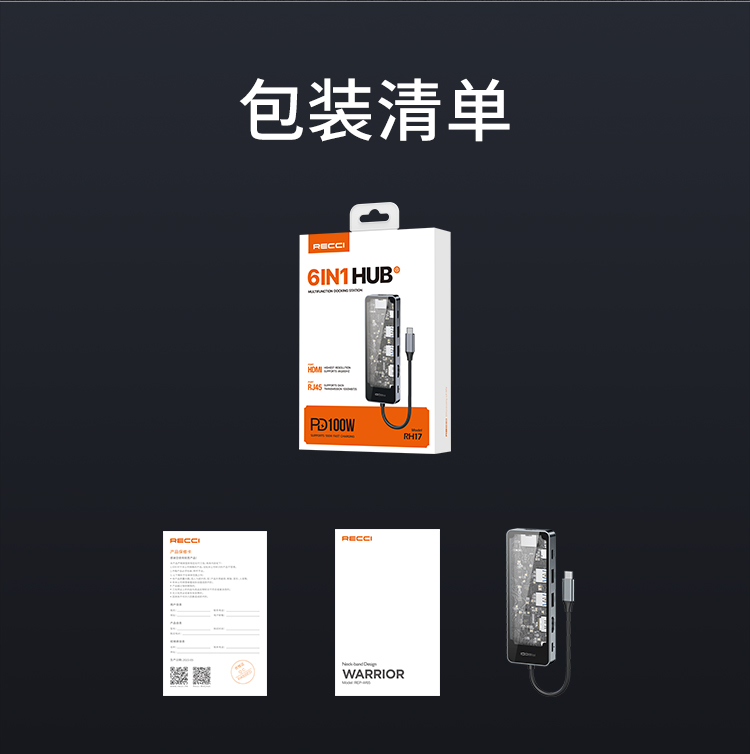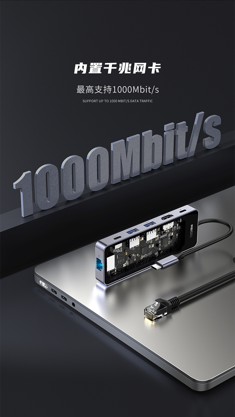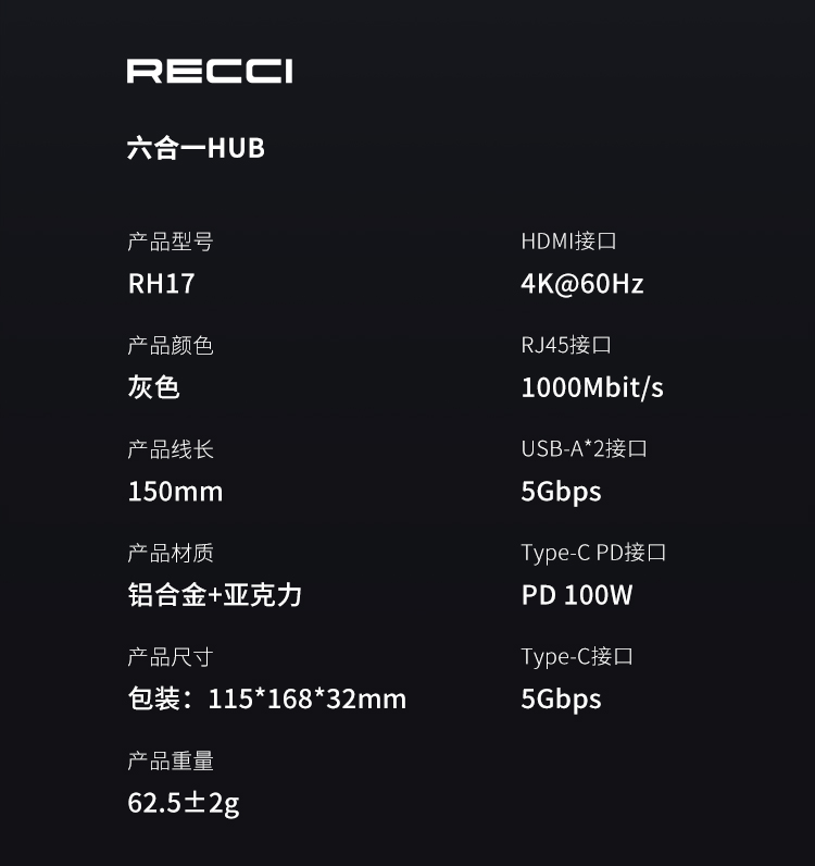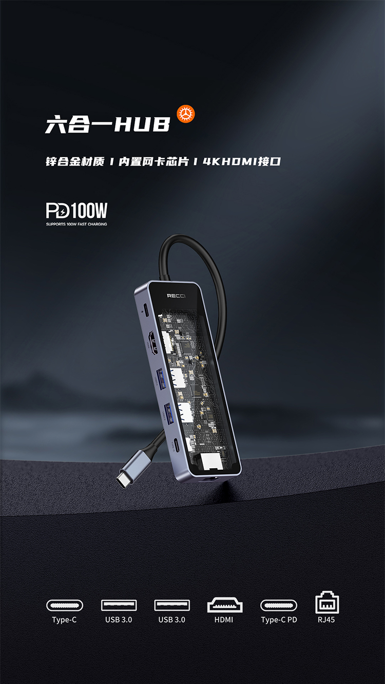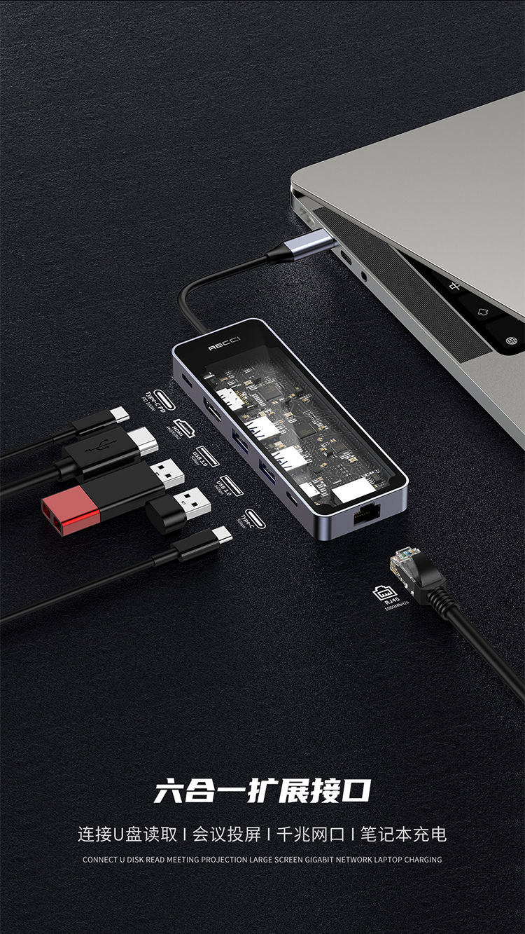 RECCI锐思数据线RH17支持PD100W充电线转HDM六合一IHUB RH17
