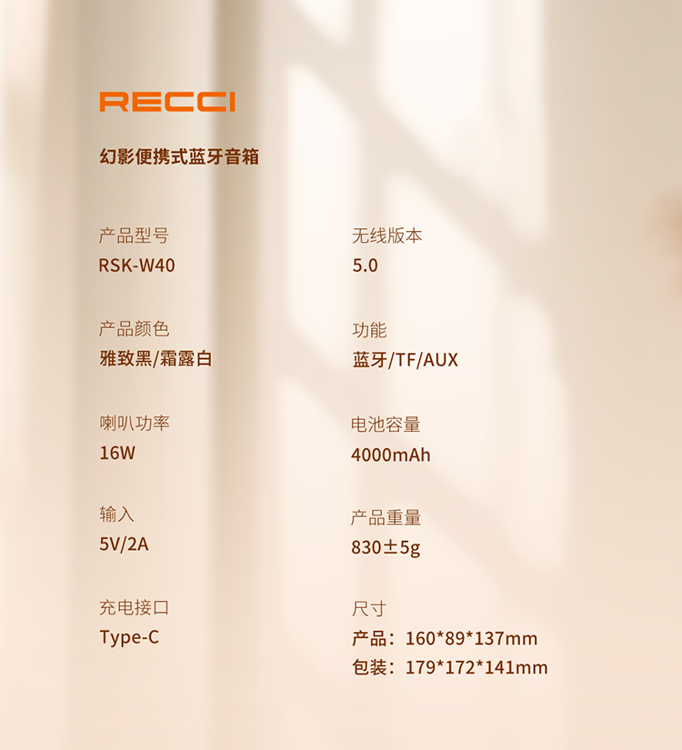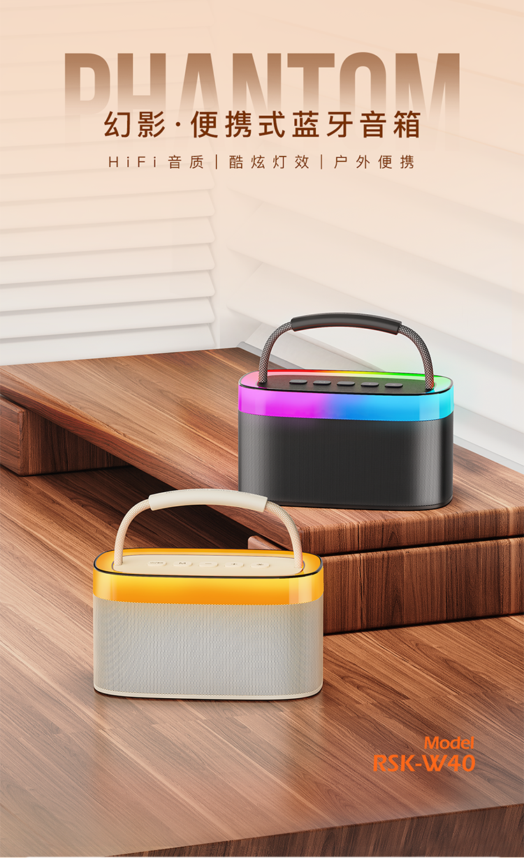 RECCI锐思RSK-W40蓝牙无线音响户外便携支持呼吸灯跑马灯光随声动双喇叭设计超强立体声