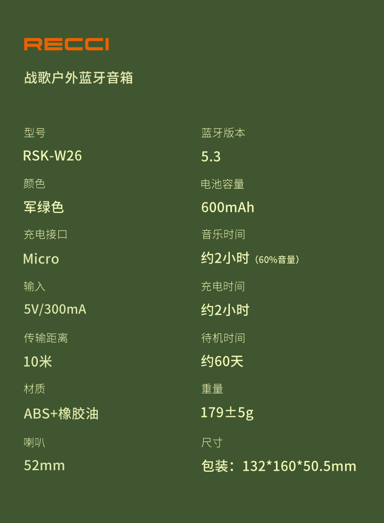 RECCI锐思RSK-W26随身迷你音箱方便携带HiFi高清音质户外高续航音响
