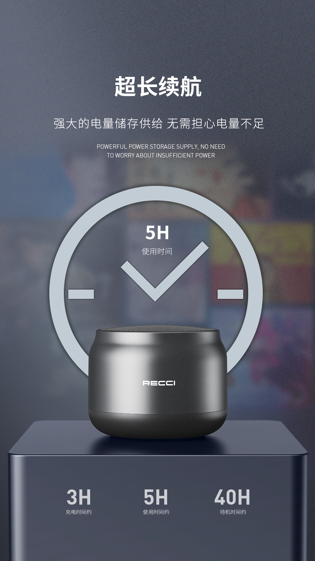 RECCI锐思小钢炮RSK-W13蓝牙音箱超长持航高清音质户外方便携带小巧通用无线音响