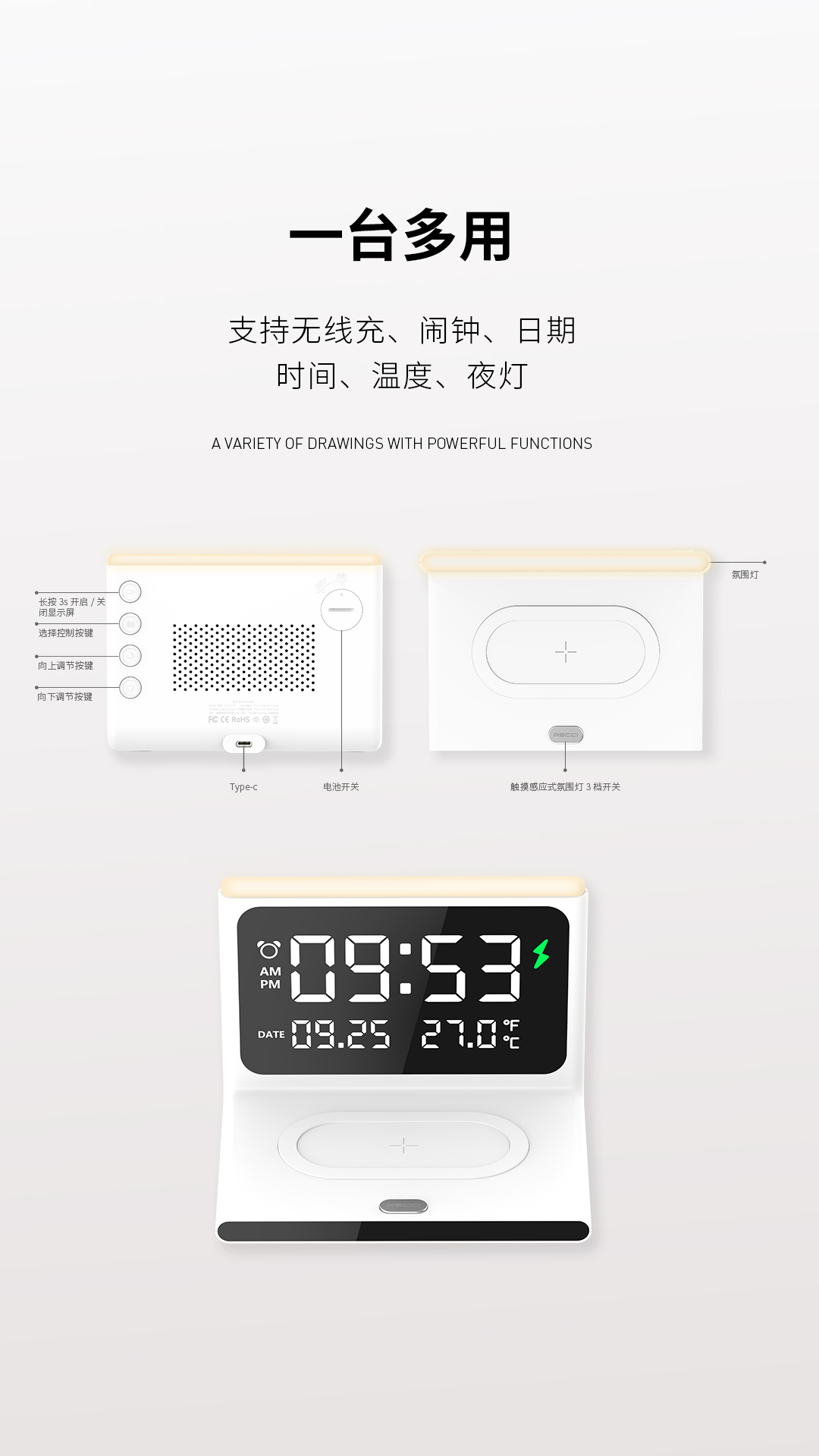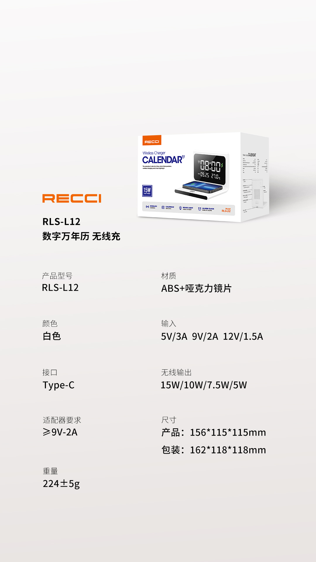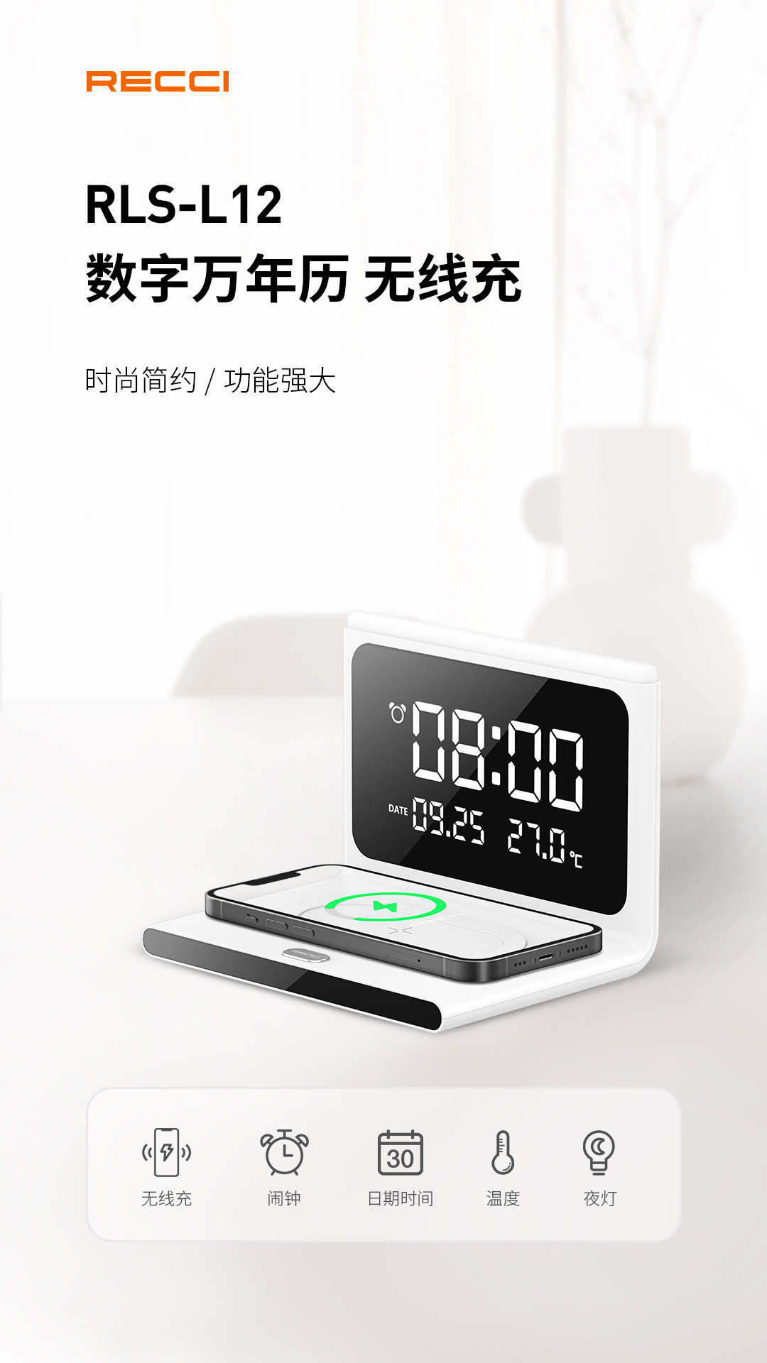 RECCI锐思 RLS-L12无线充电器 万年历 可显示时间