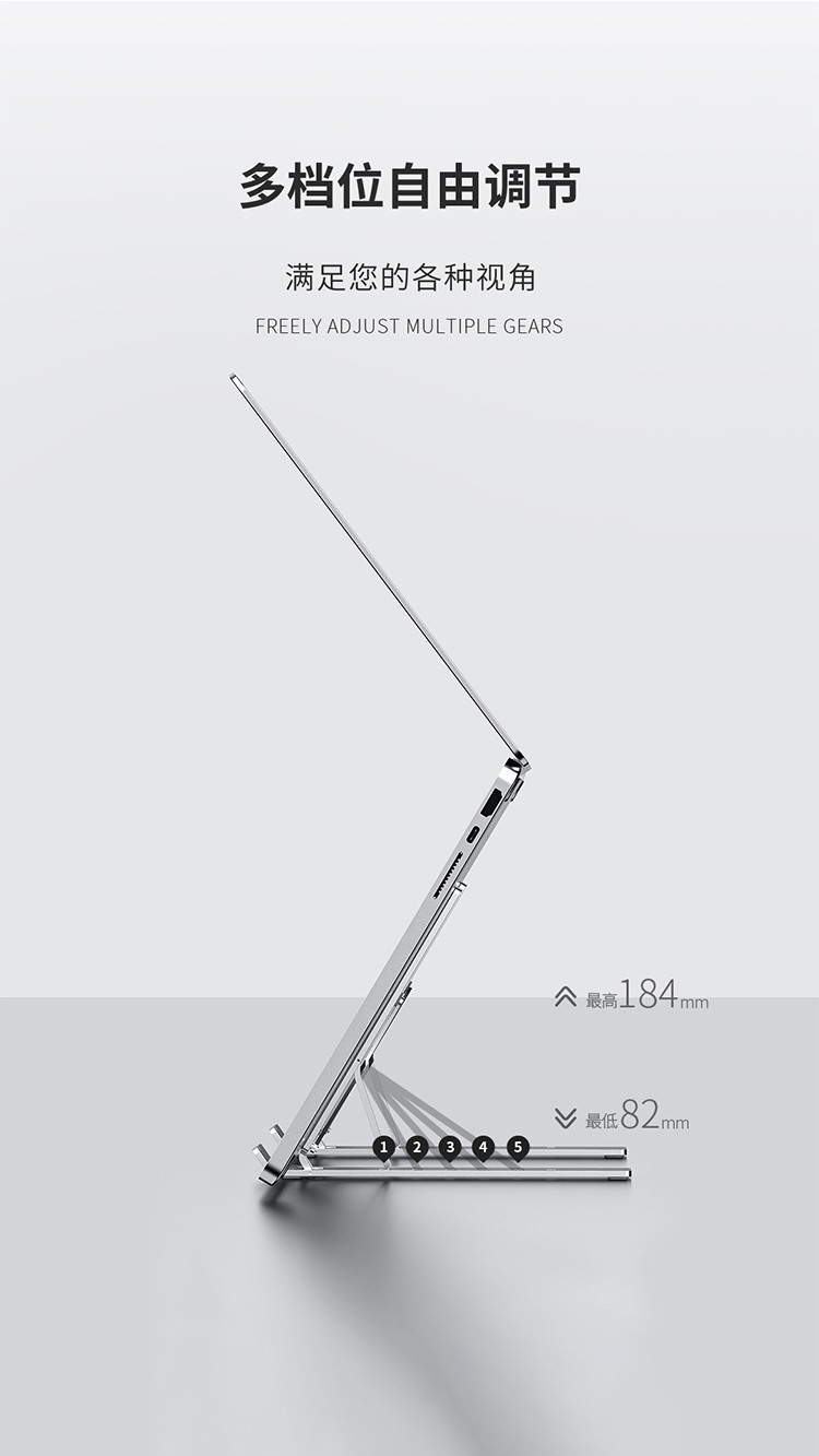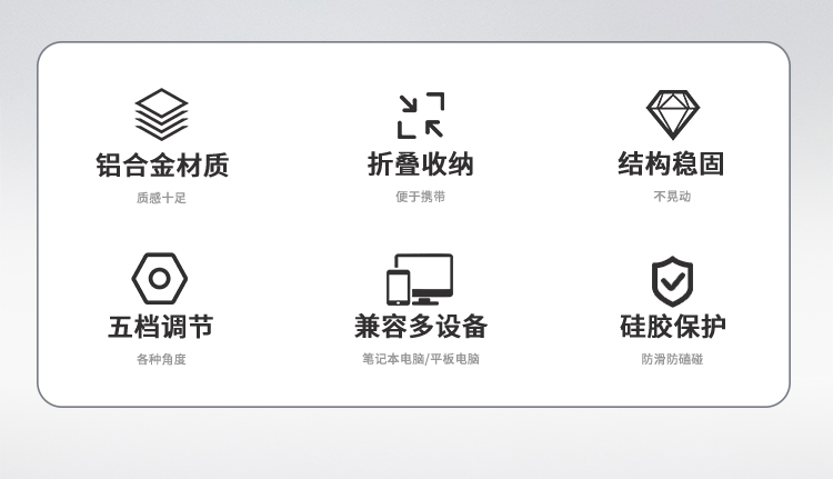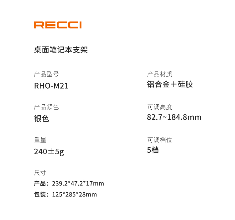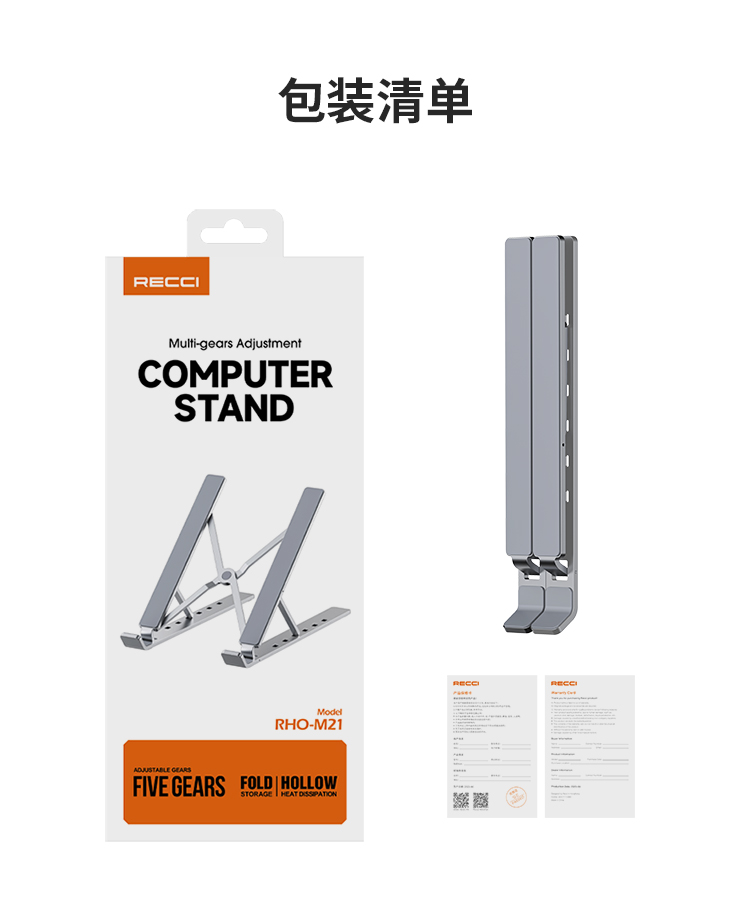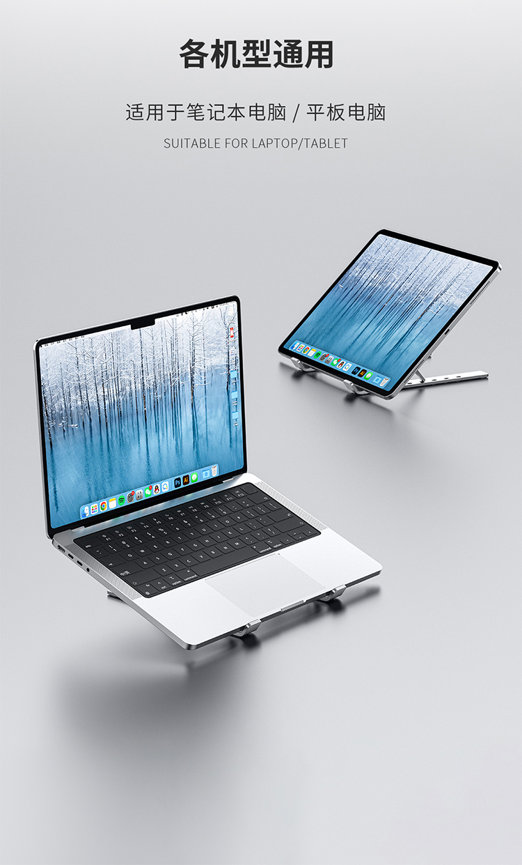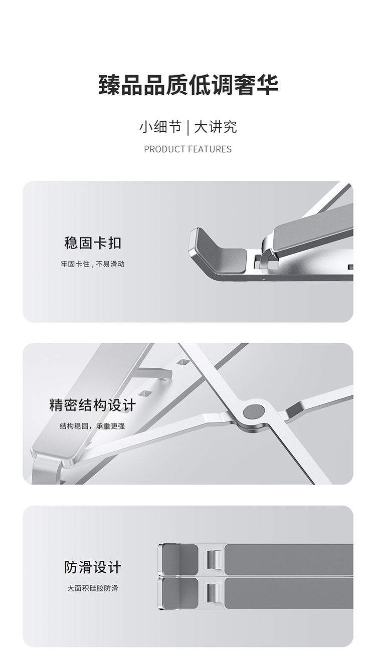 RECCI锐思RHO-M21手机笔记本支架铝合金镂空散热硅胶防滑可折叠收纳随身携带