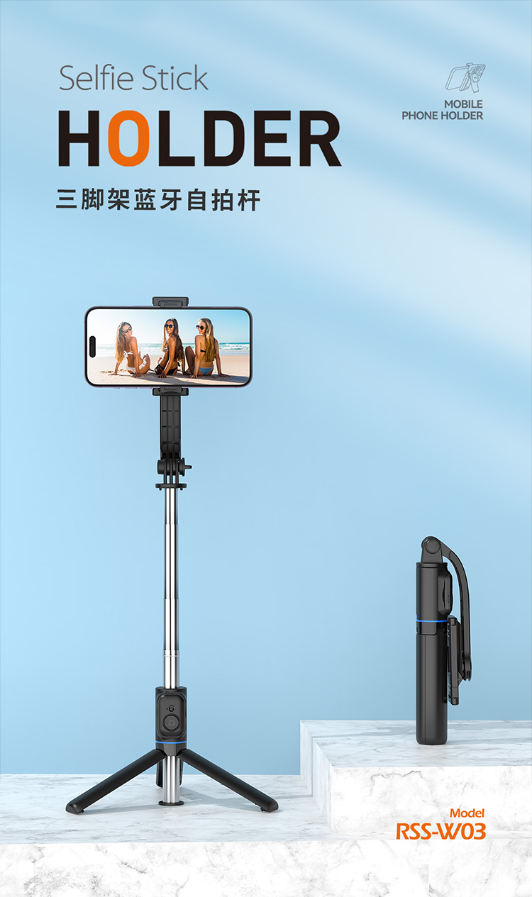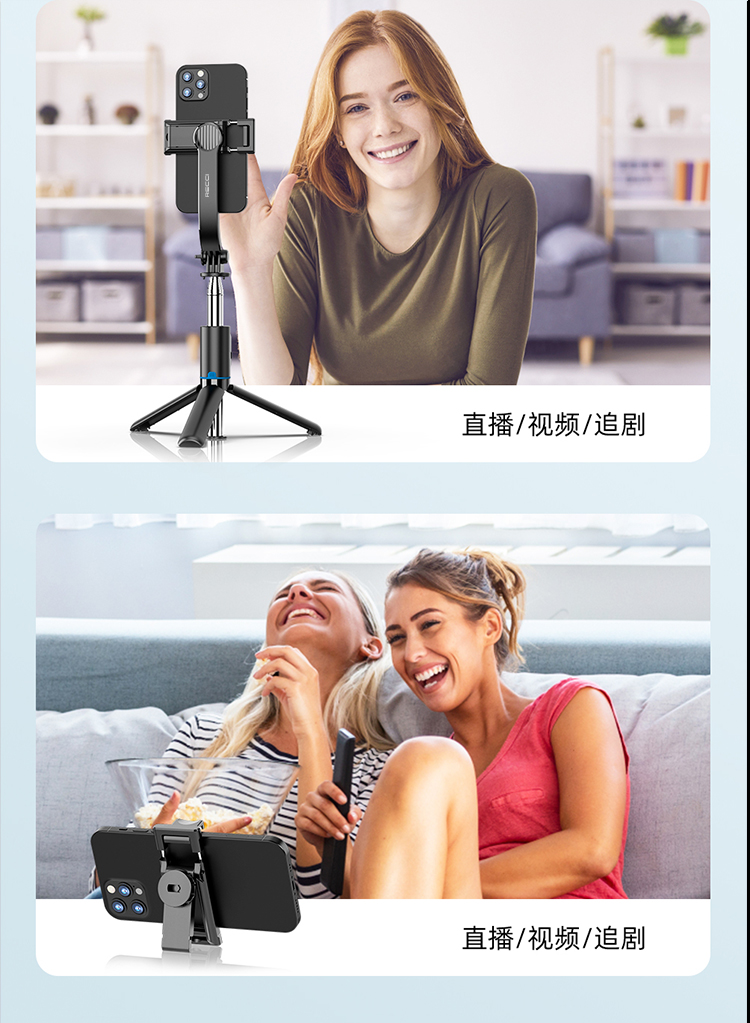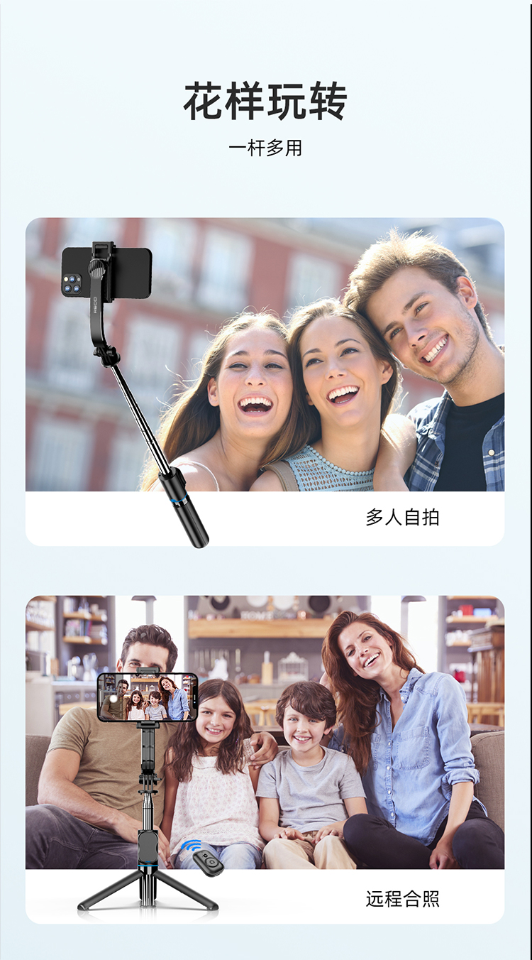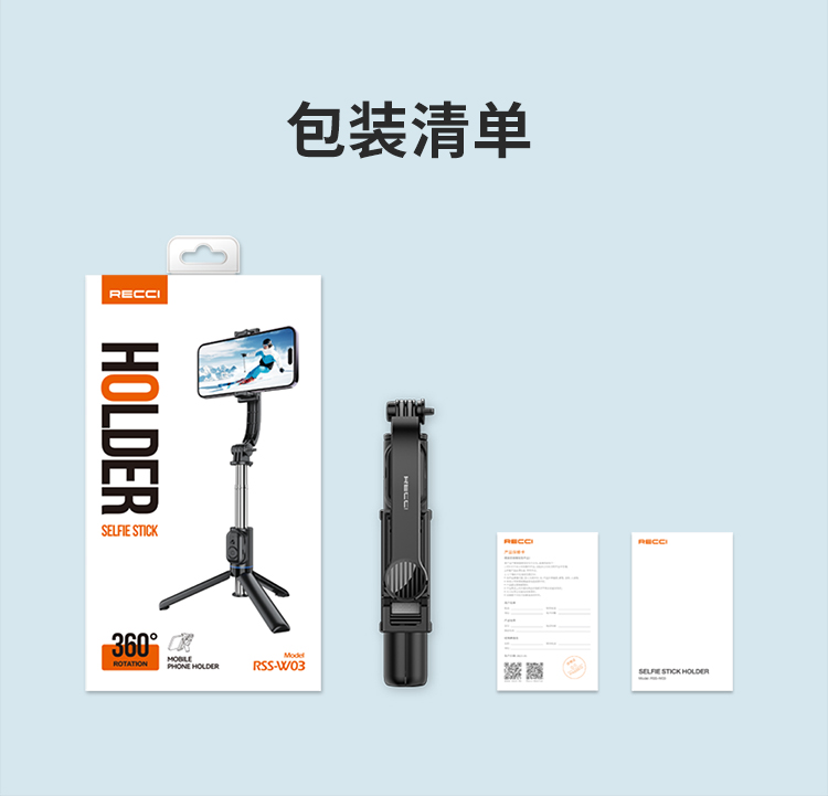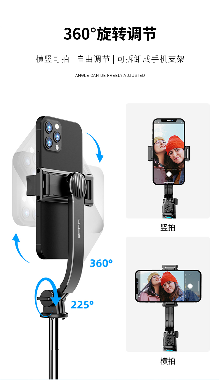 RECCI锐思RSS-W03蓝牙遥控拍照手机夹可360度旋转轻松切横屏自拍杆