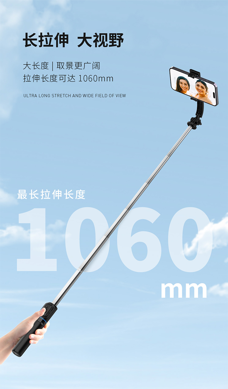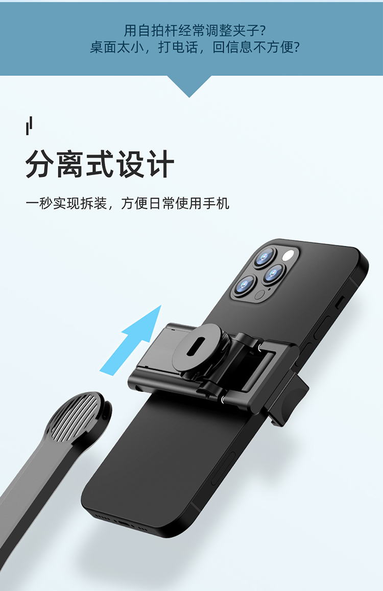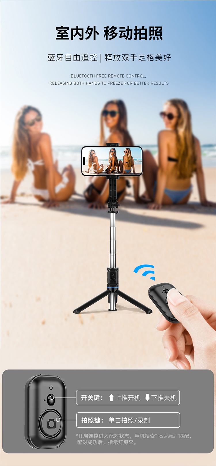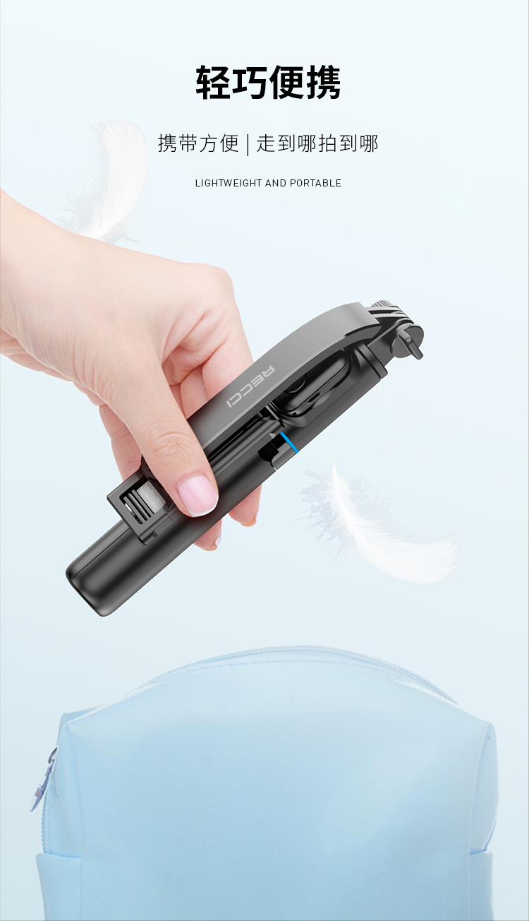 RECCI锐思RSS-W03蓝牙遥控拍照手机夹可360度旋转轻松切横屏自拍杆