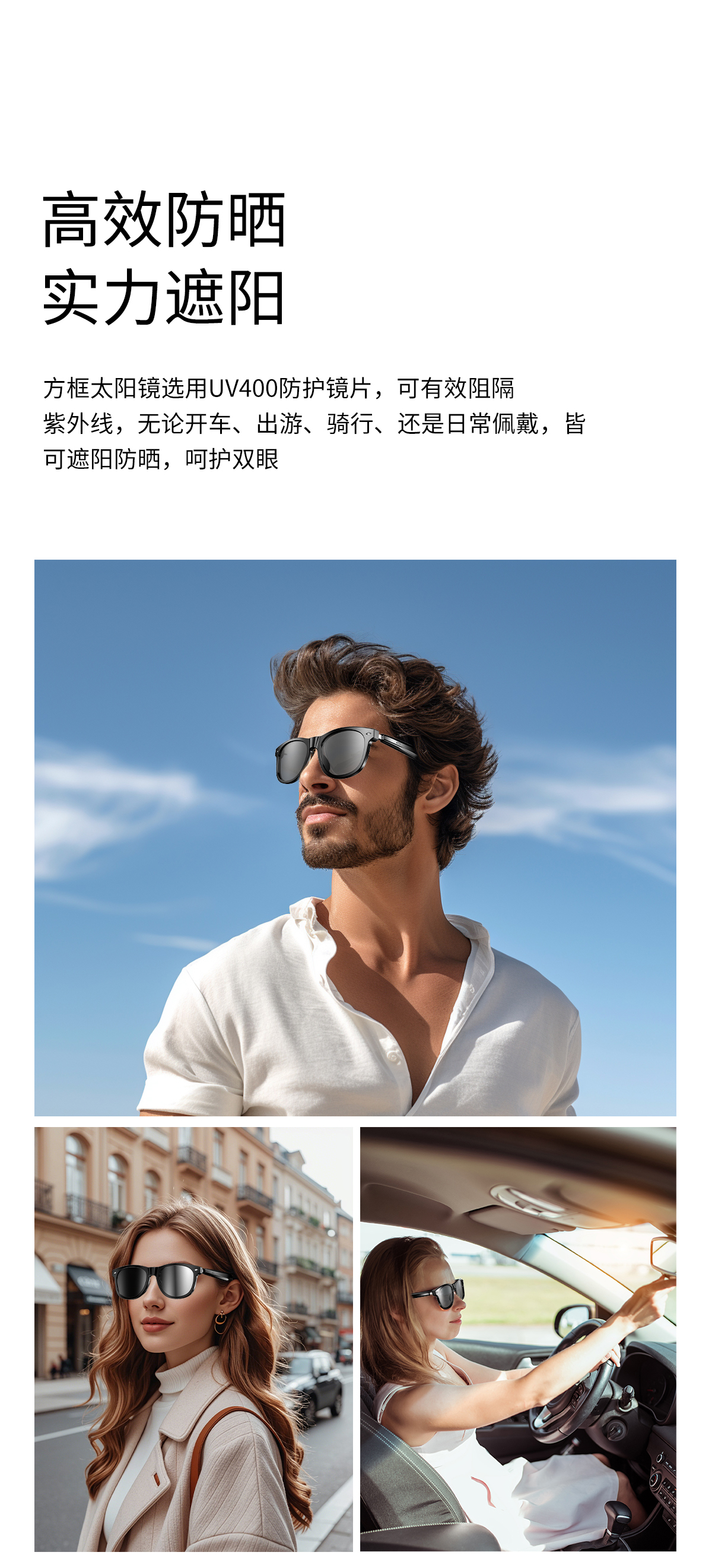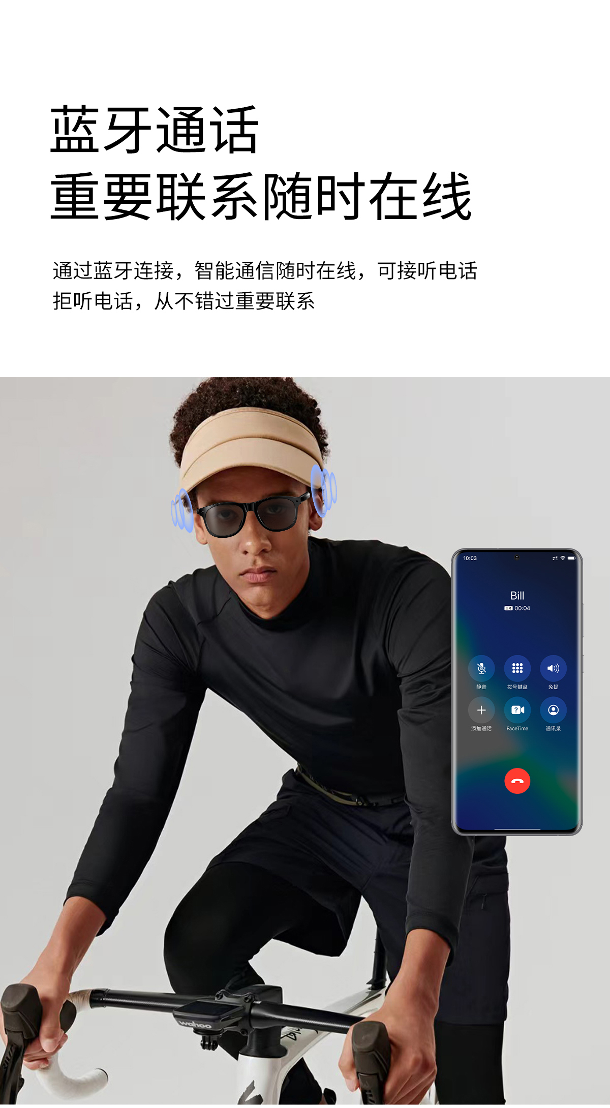 2,既是蓝牙耳机,又是高清户外太阳墨镜,便携多功能合一,听歌,打电话,语音助手;