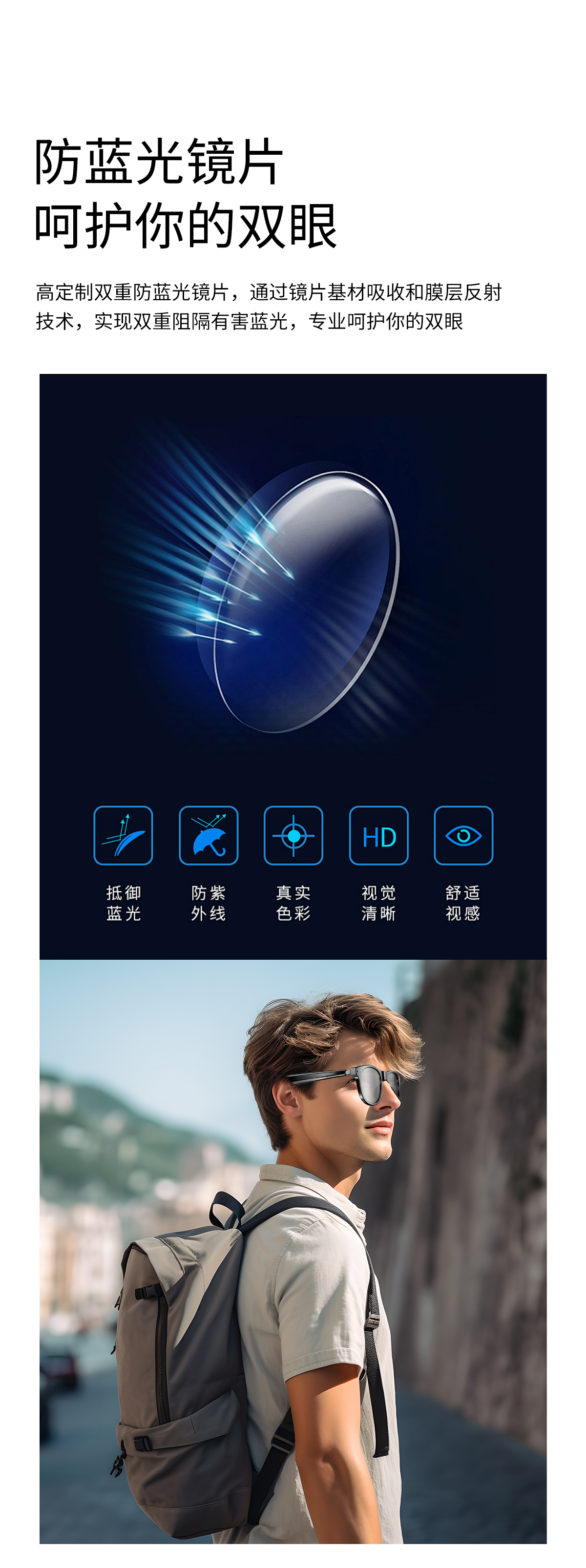 5,大牌墨镜代工厂,来自华为供应链,真实防蓝光镜光,御紫外线,色彩高清真实,舒适感极佳;