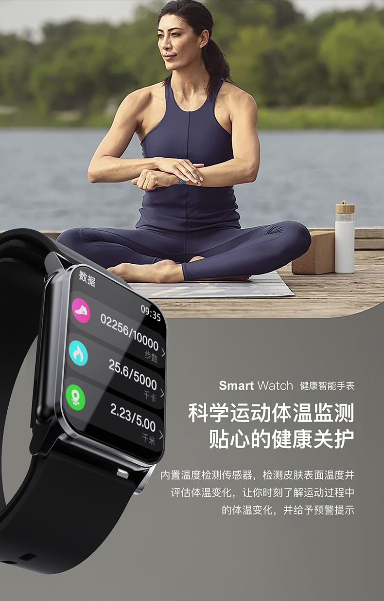 4,内置温度检测传感器,检测皮肤表面温度,预警提示。