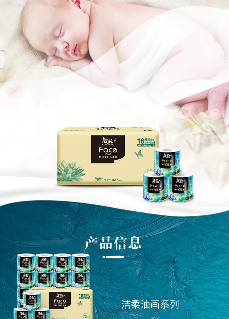 BJ203-16E洁柔卫生纸(Face油画有芯)200g4层(16卷装)(电商专供)