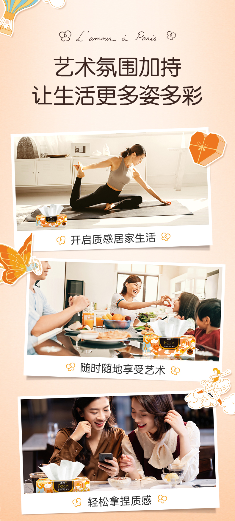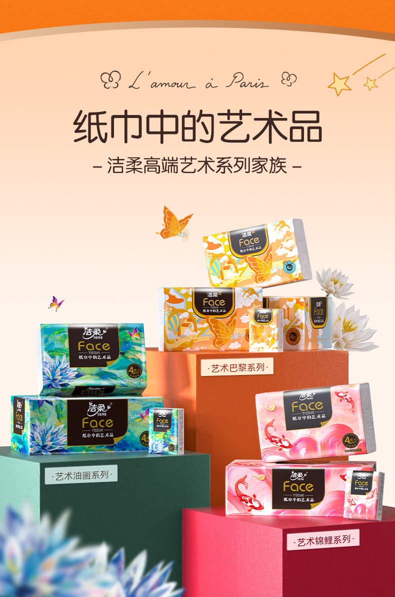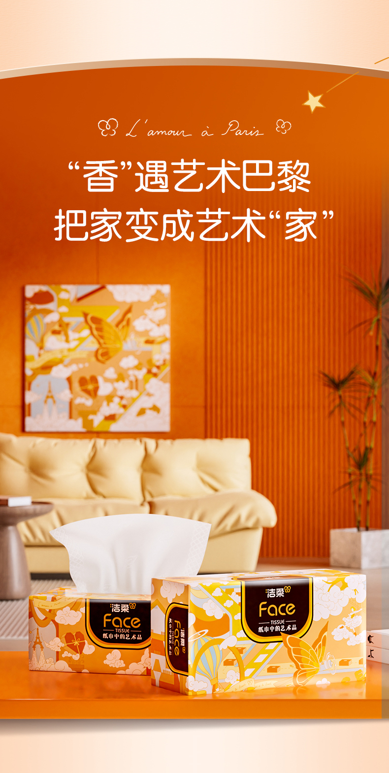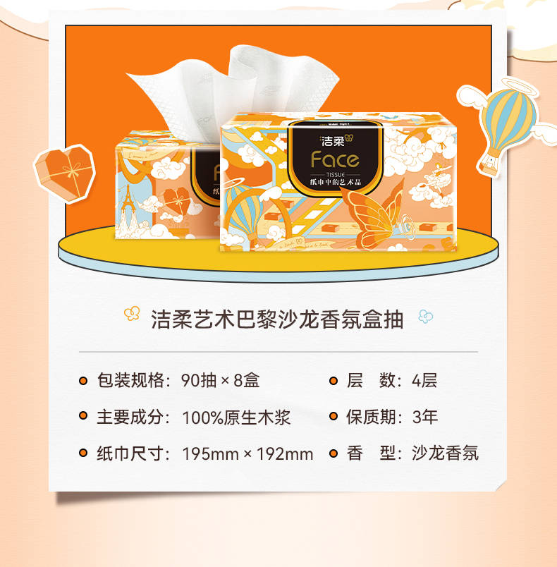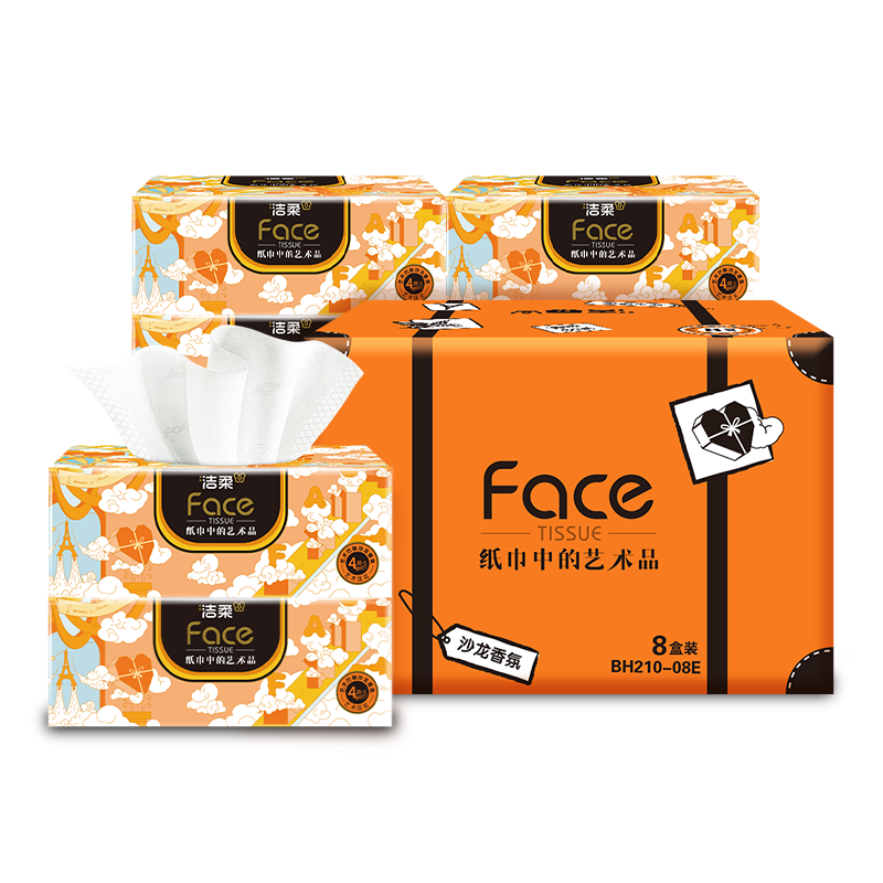 BH210-08E洁柔牌纸面巾(艺术巴黎沙龙香氛盒抽)4层90抽(8盒装)(电商专供)