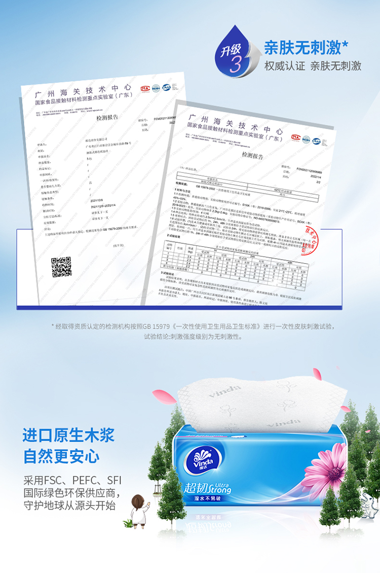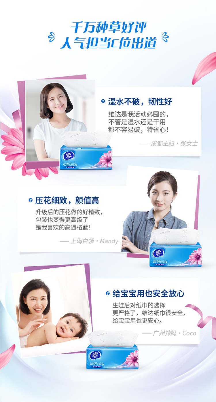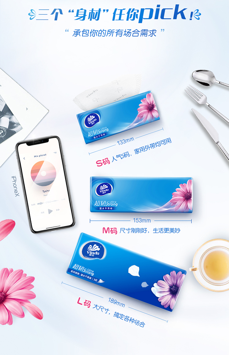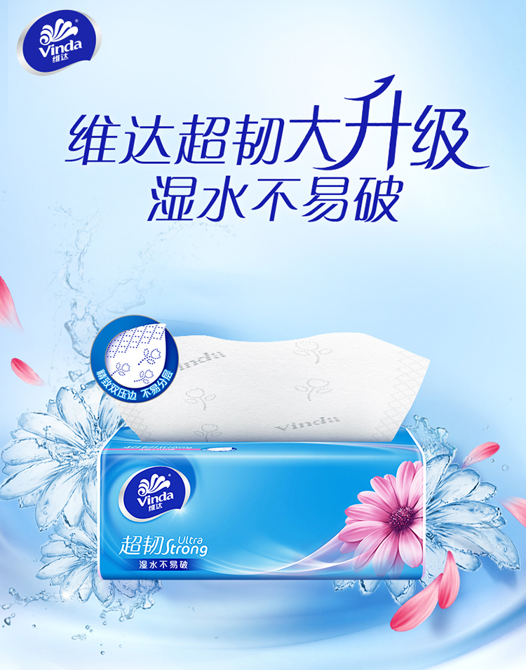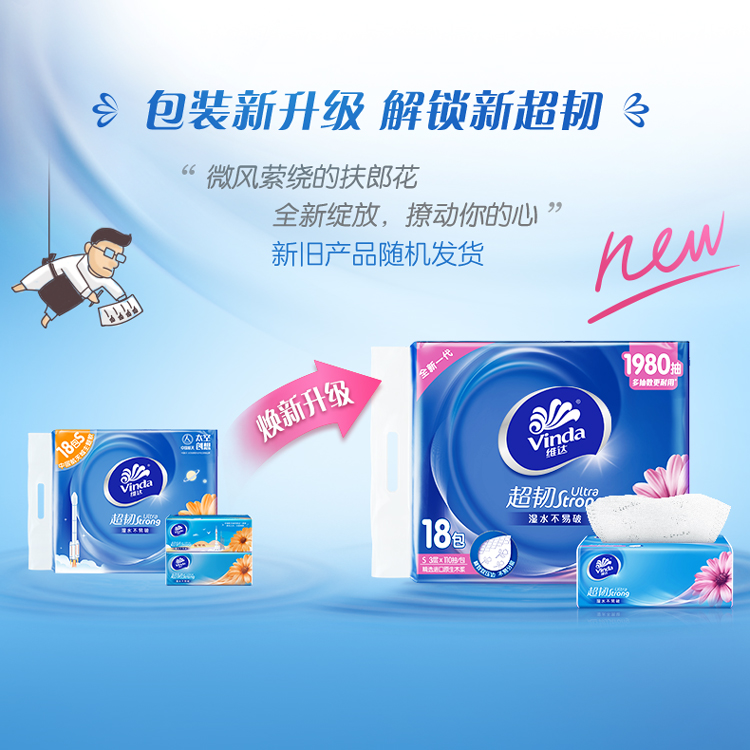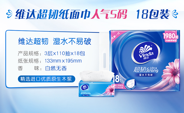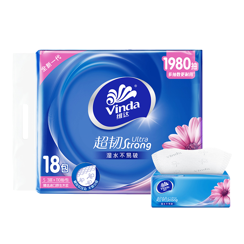 V2288A维达超韧抽取面巾3层S码110抽×18包/提