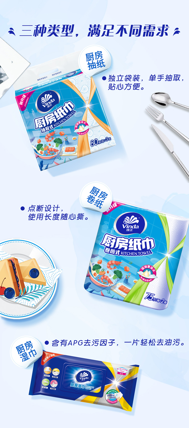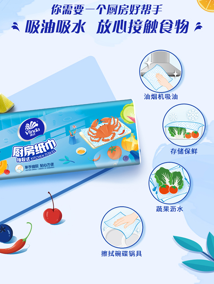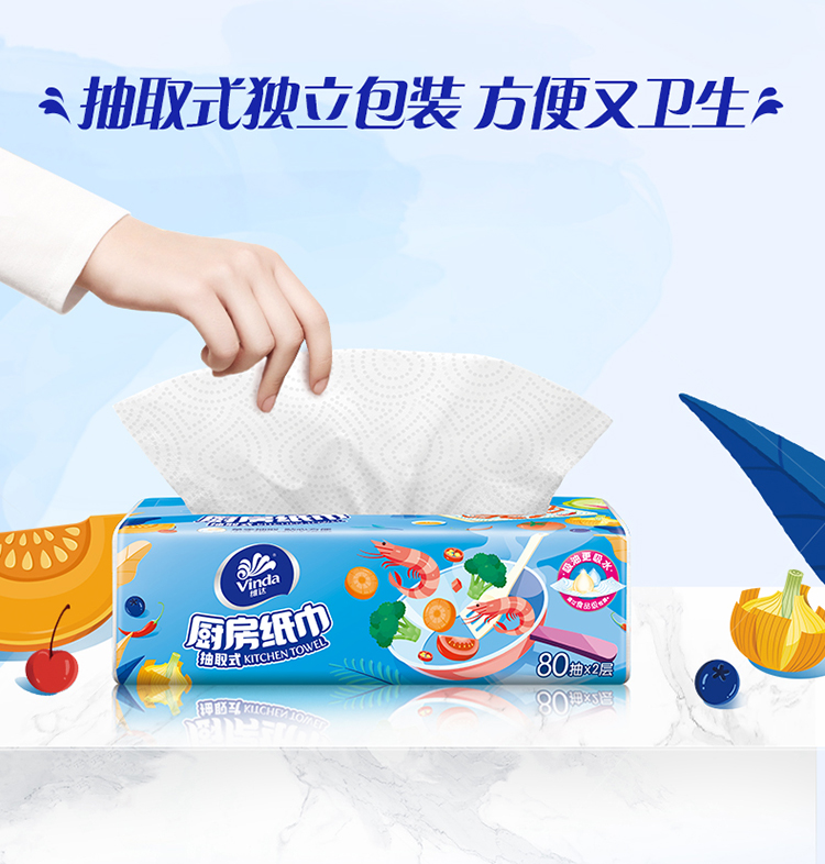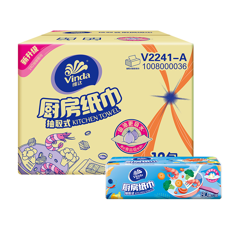 维达V2241-A (电商)80抽2层抽取式厨房纸巾(1×12)装/箱