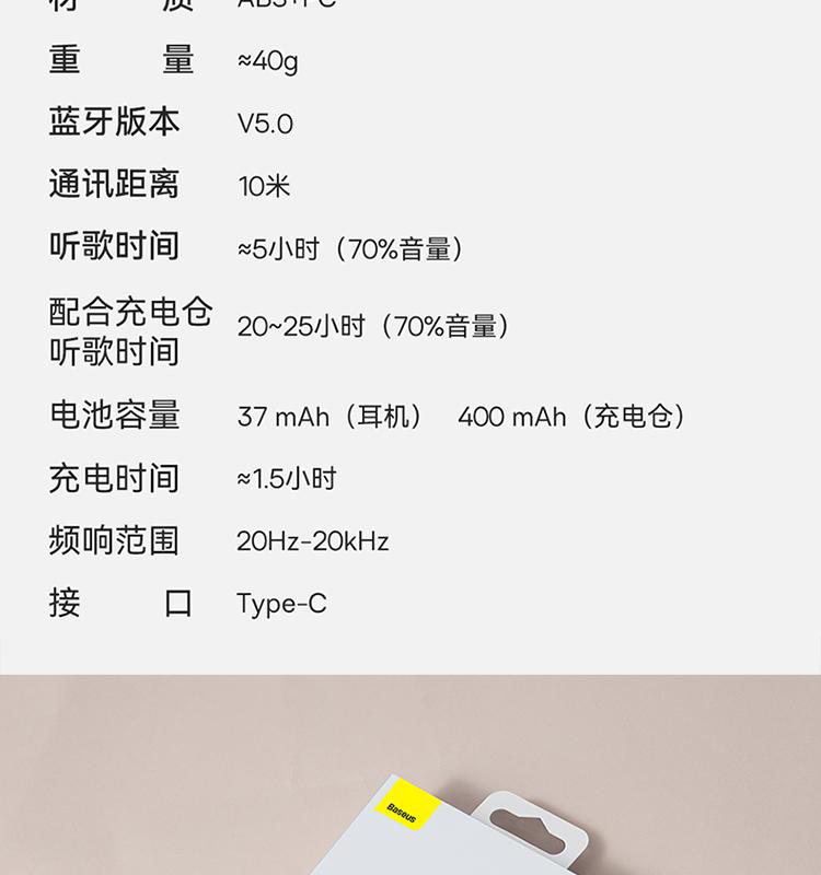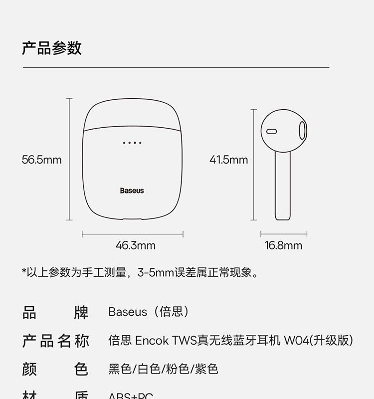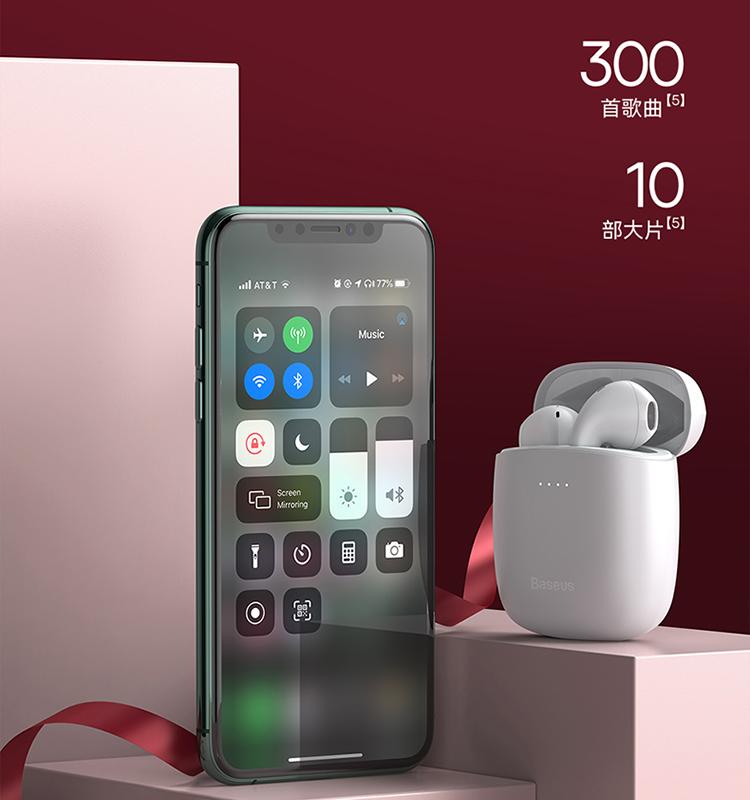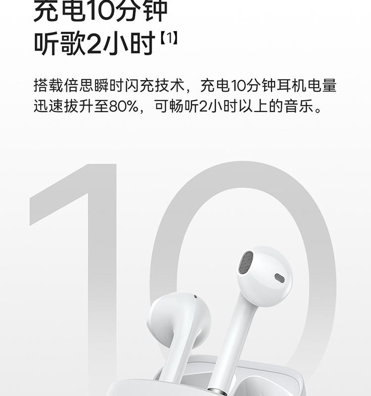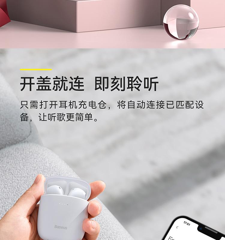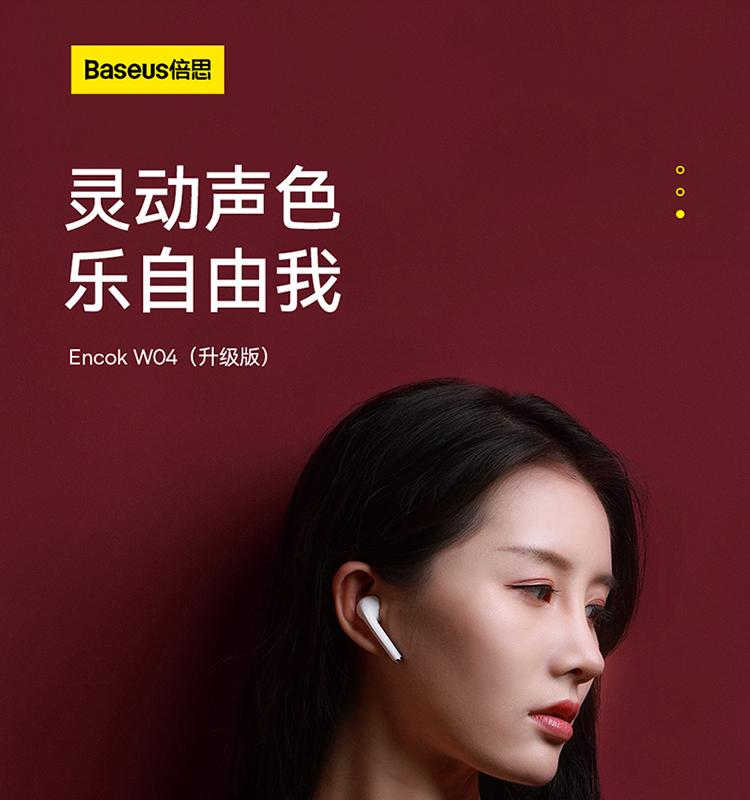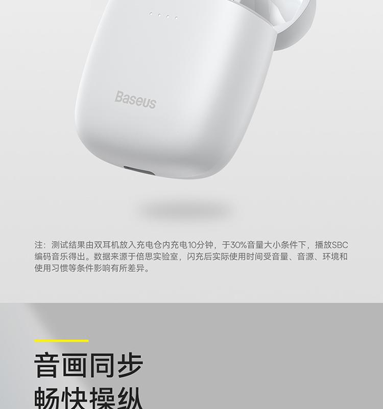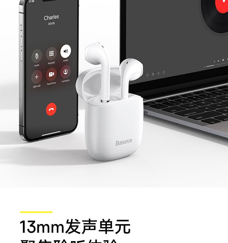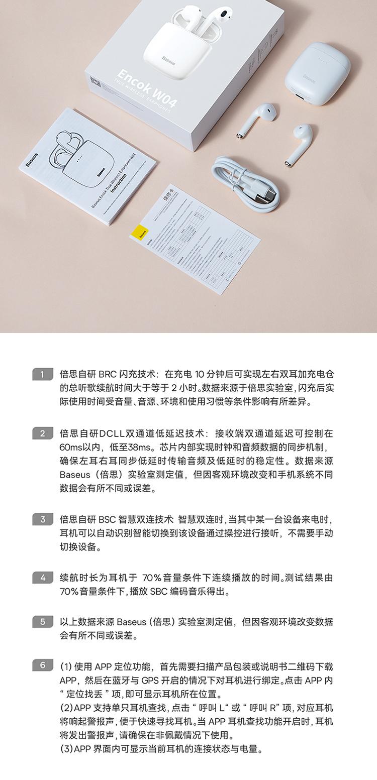 倍思EncokTWS真无线蓝牙耳机W04(升级版)白色(含:简易通用数据线USBtoType-C3A0.3m白色)