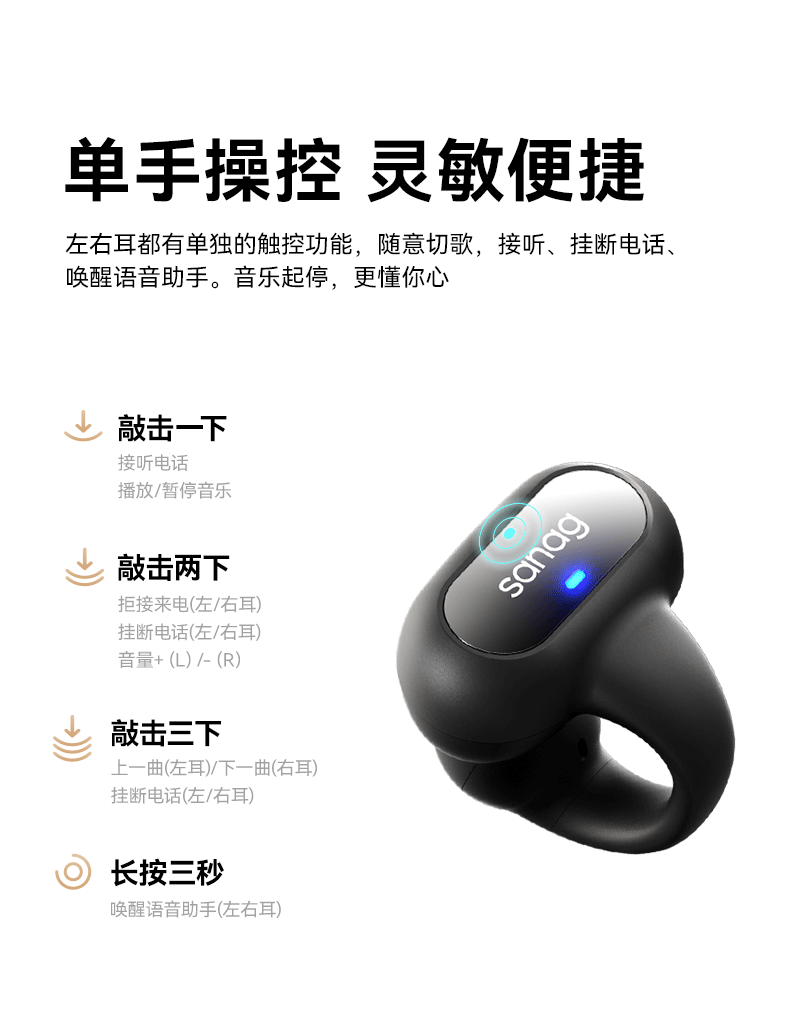 sanag塞那夹耳式蓝牙耳机不入耳无线挂耳传感耳夹式运动新款Z51SProMax