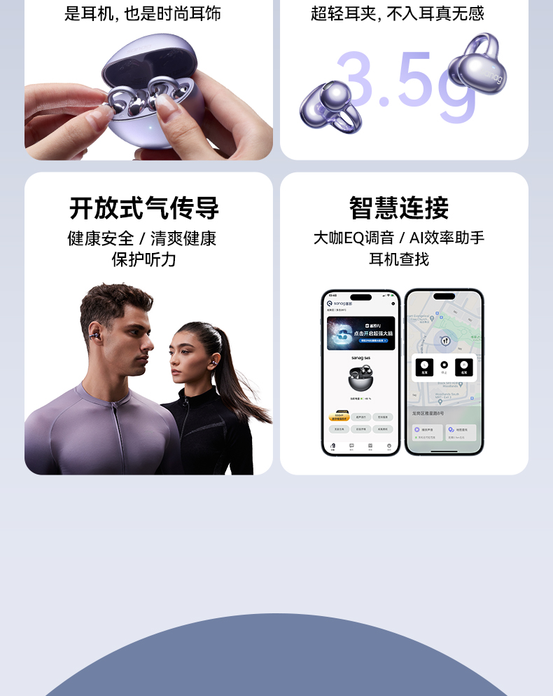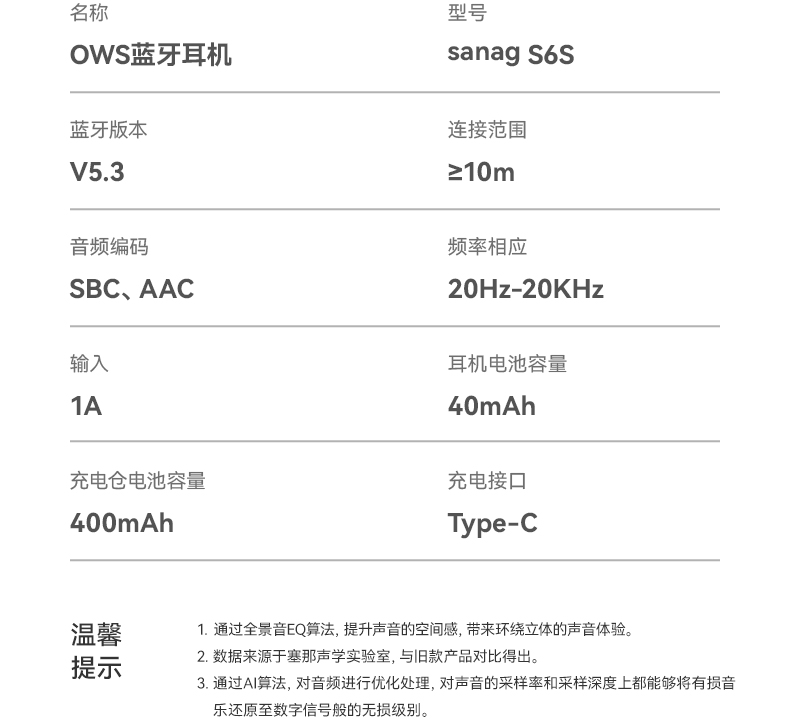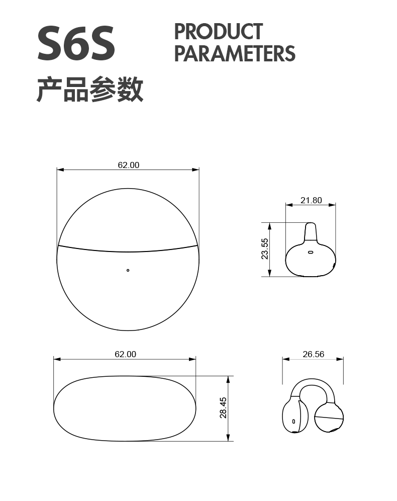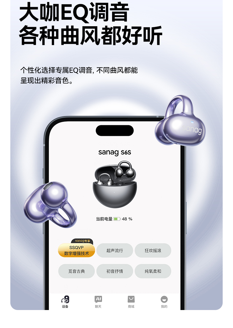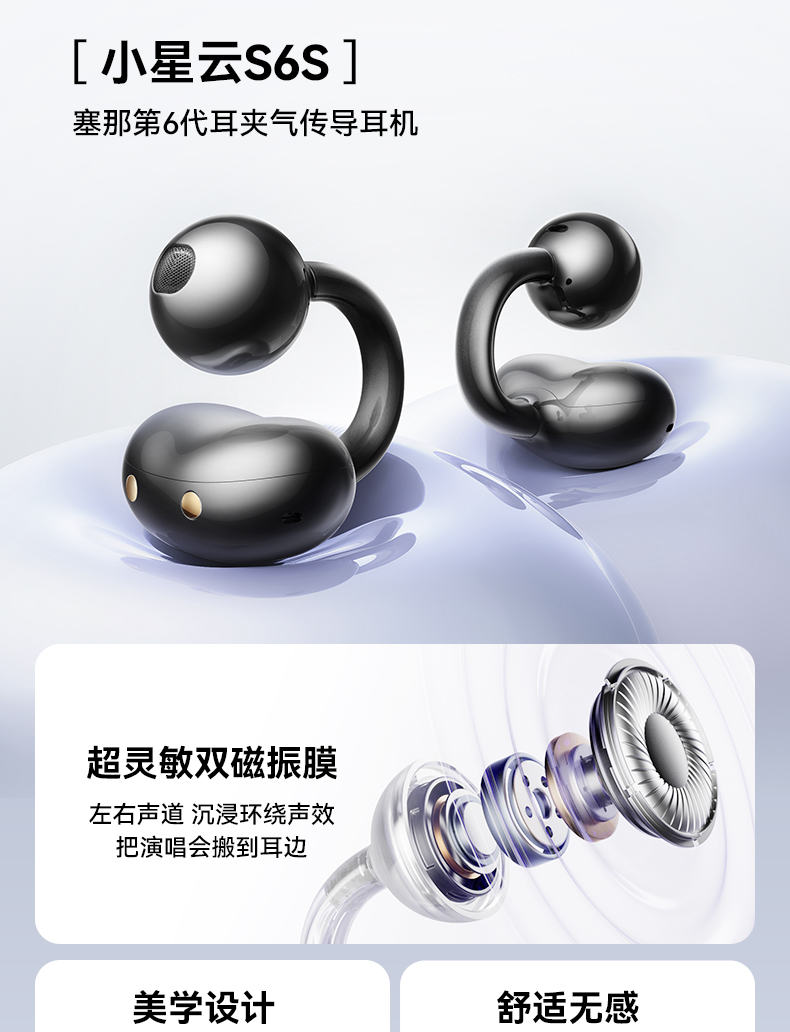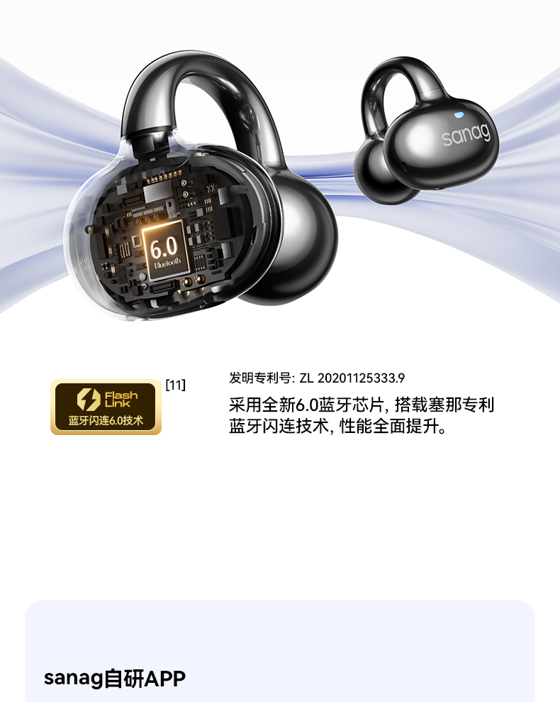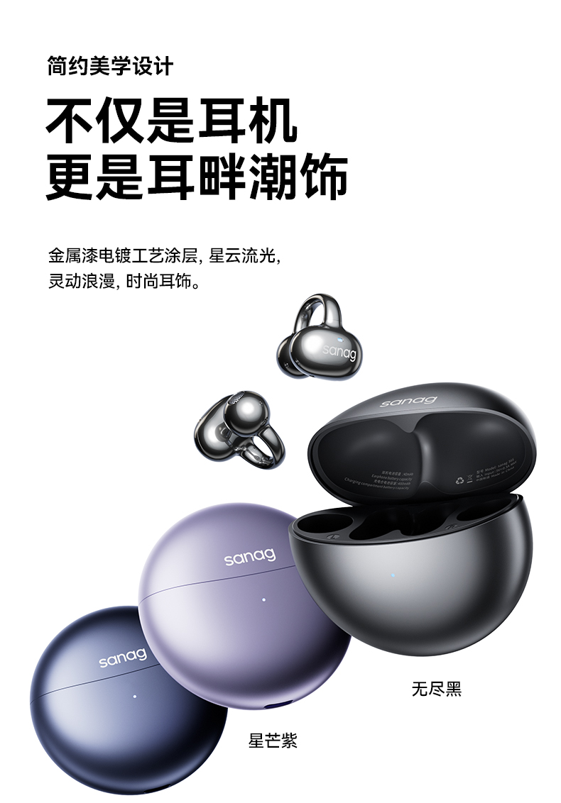 SANAG塞那S6S蓝牙耳机开放式无线耳夹式不入耳运动跑步降噪耳机