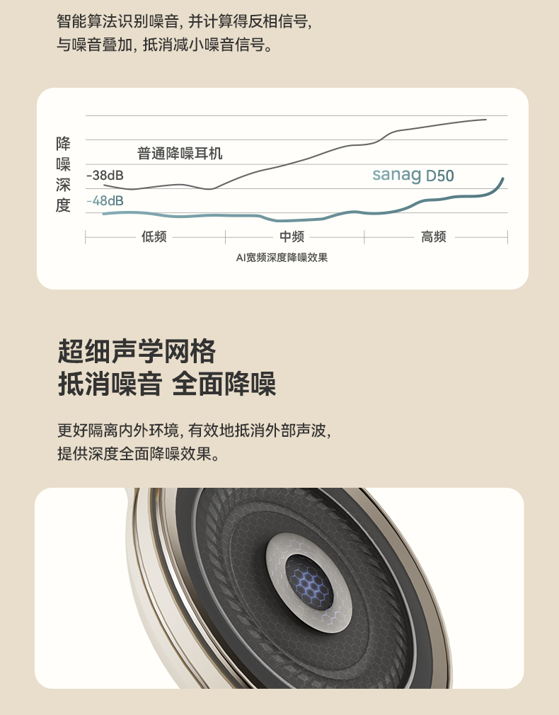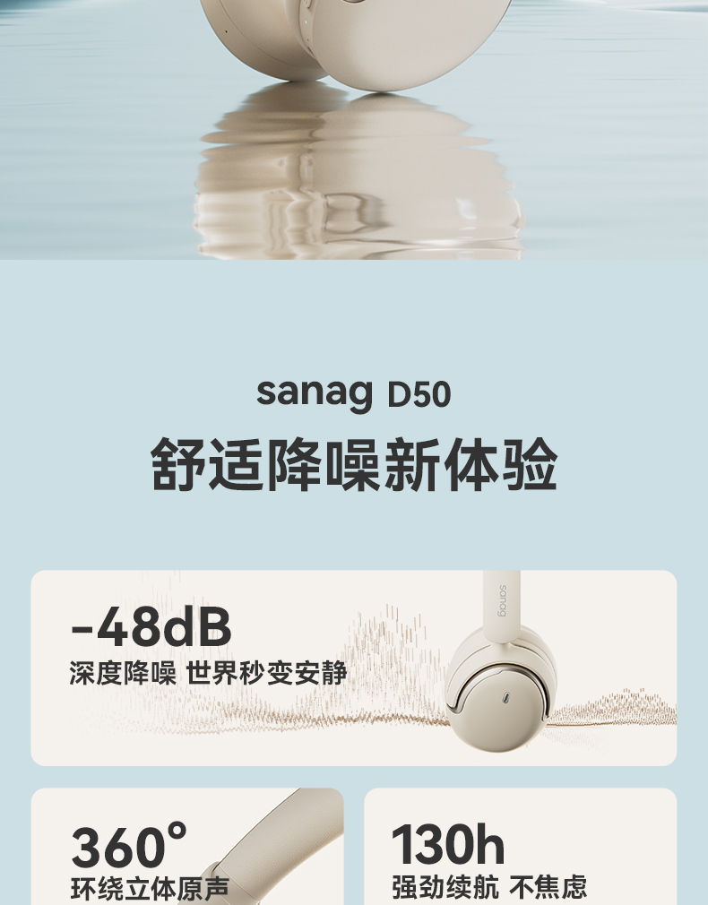 SANAG塞那【央视甄选丨QQ音乐认证】D50头戴式耳机无线蓝牙耳机主动降噪高音质音乐耳机