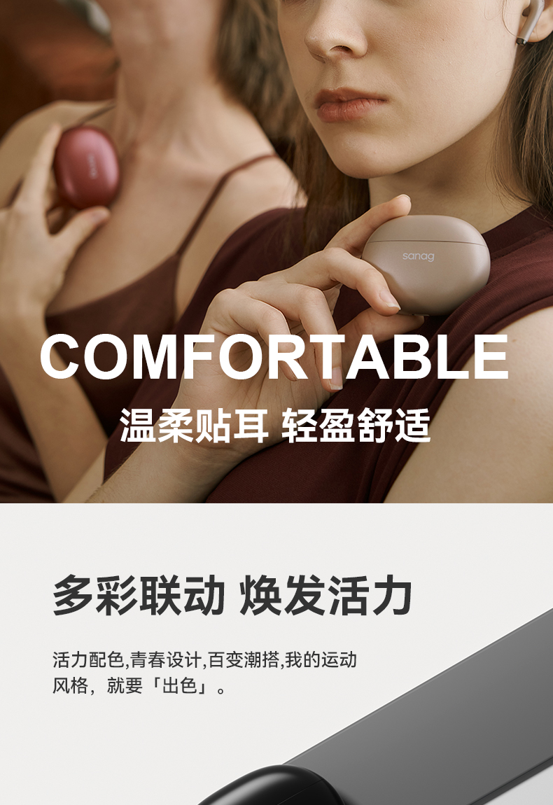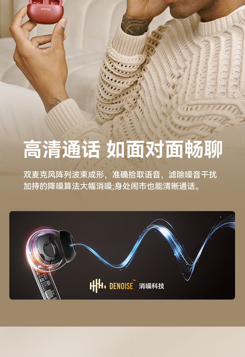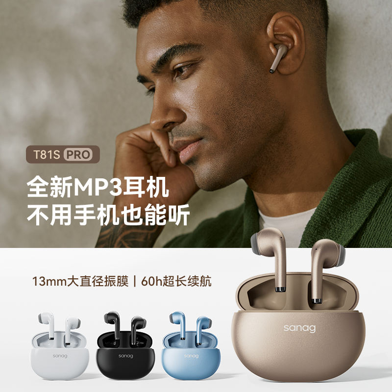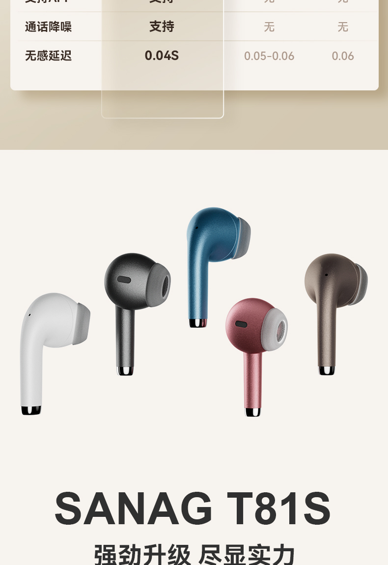 SANAG塞那蓝牙耳机真无线多场景录音入耳式运动降噪超无感延迟T81