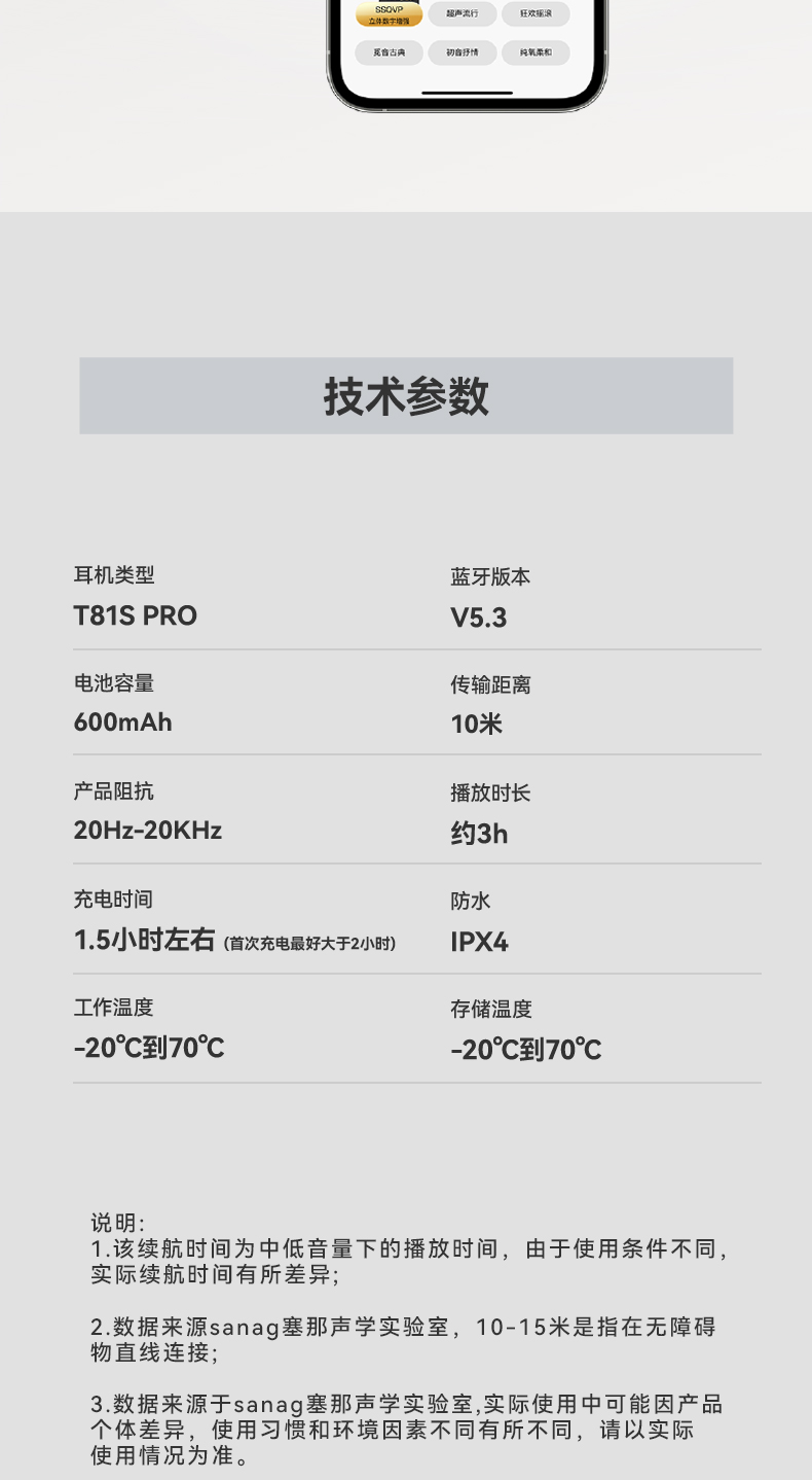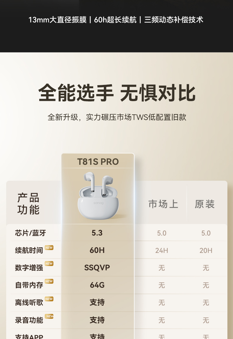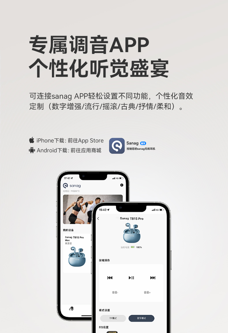 SANAG塞那蓝牙耳机真无线多场景录音入耳式运动降噪超无感延迟T81