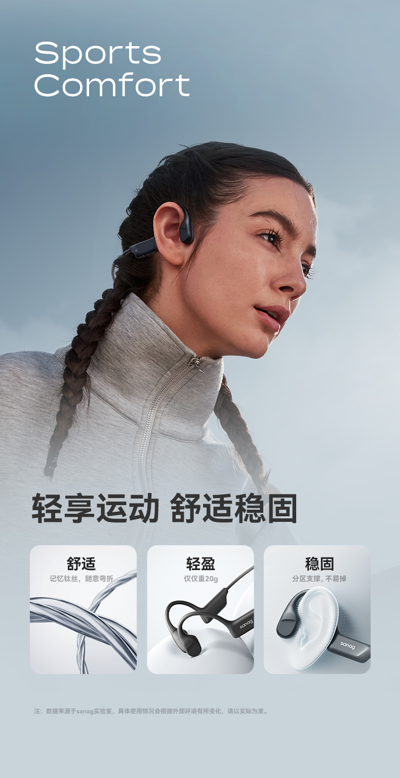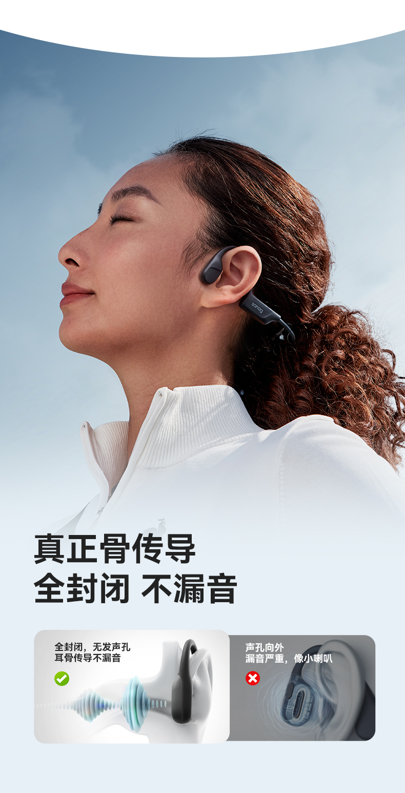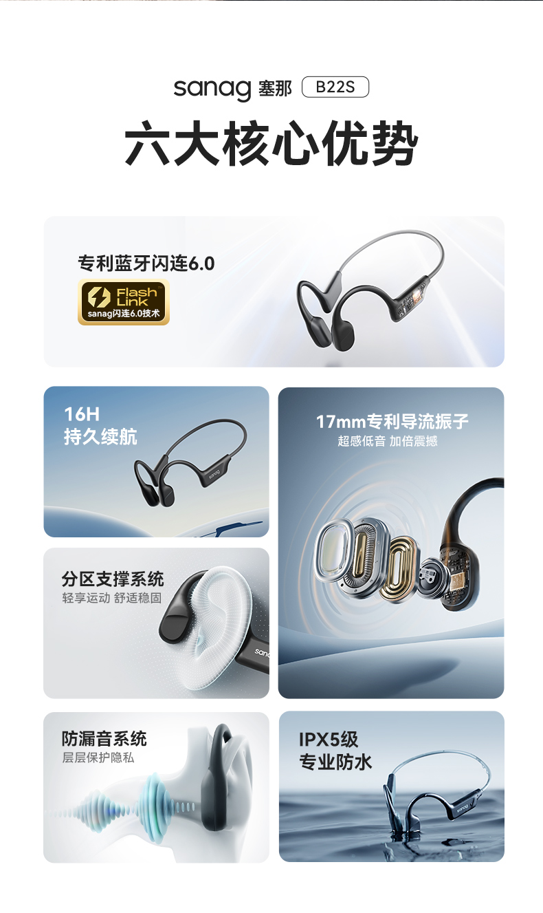 SANAG塞那B22真骨传导蓝牙耳机无线运动跑步游泳专用挂耳式
