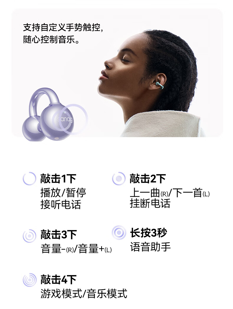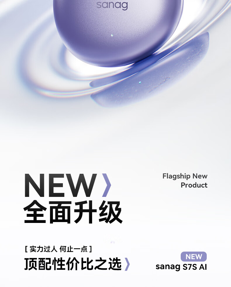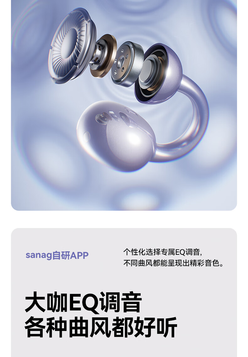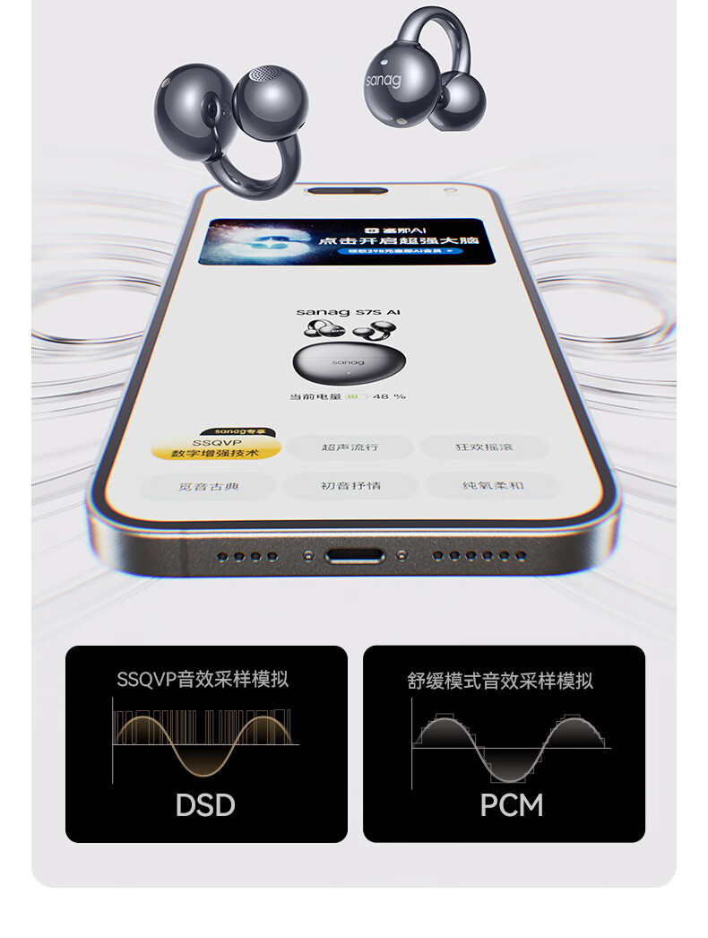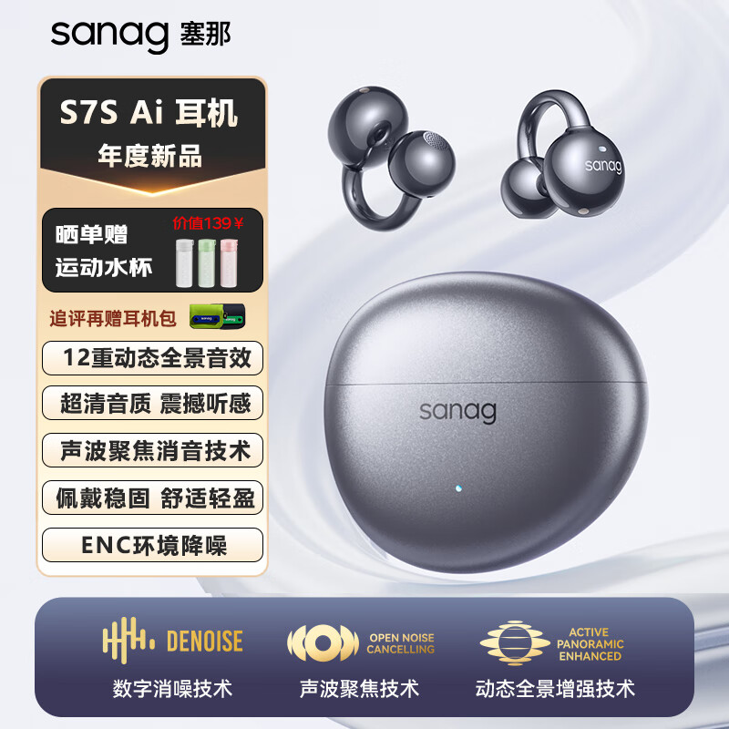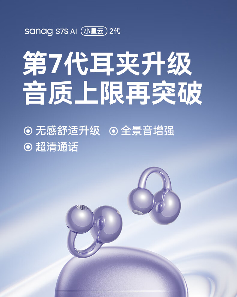 SANAG塞那S7S AI开放式无线不入耳降噪会议纪要耳夹蓝牙耳机
