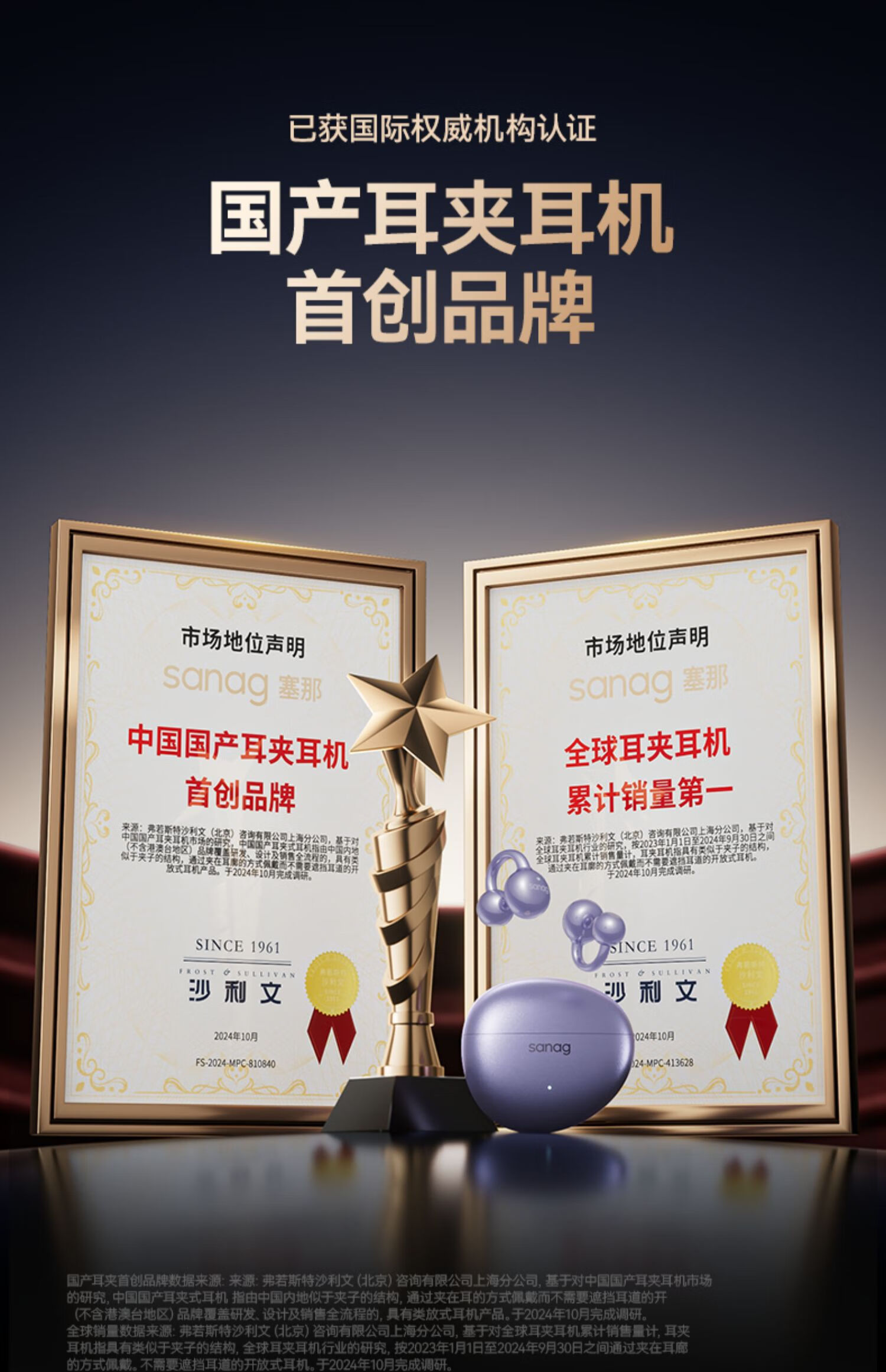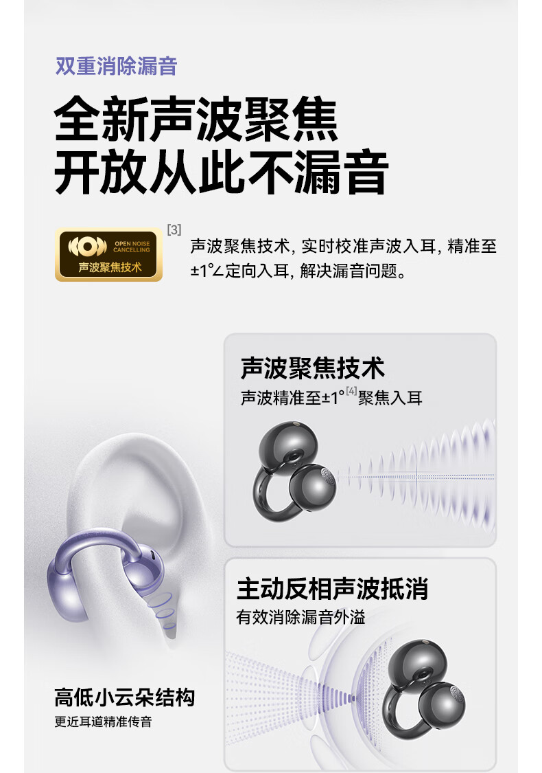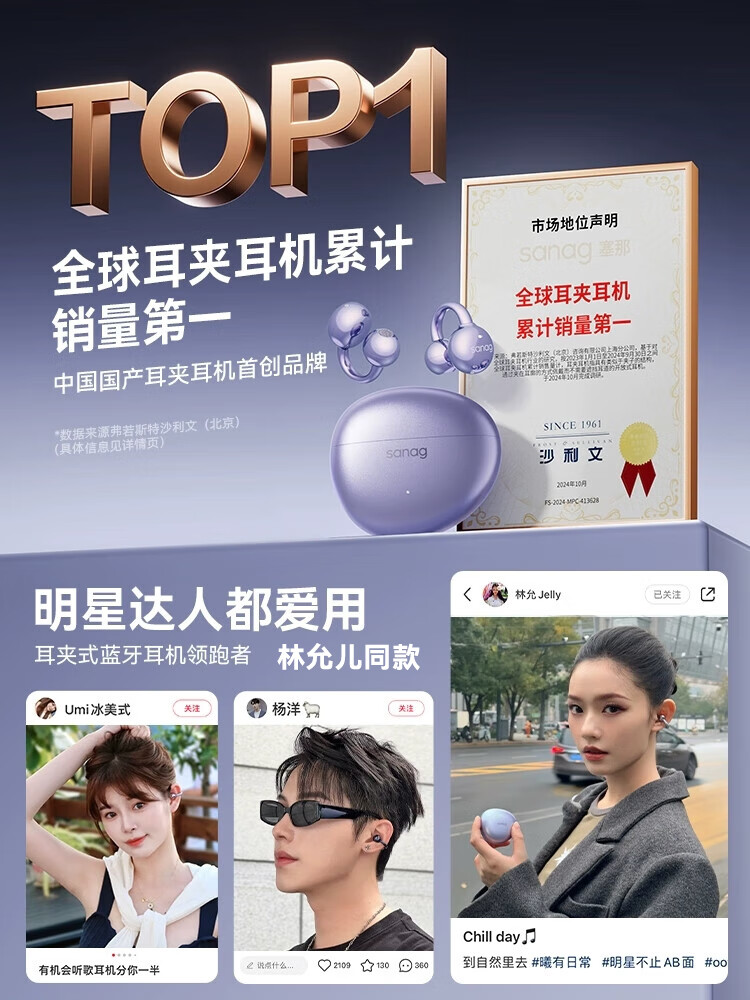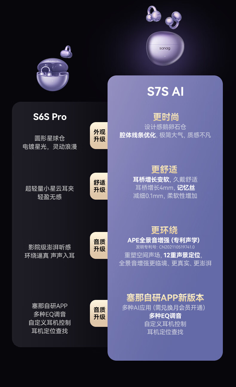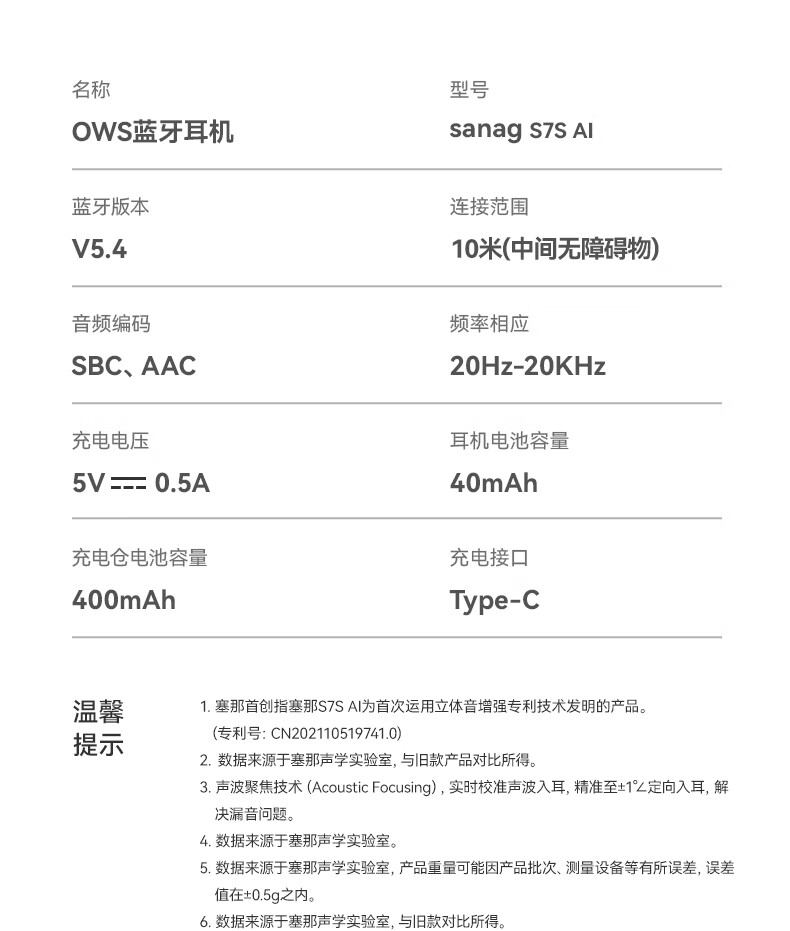SANAG塞那S7S AI开放式无线不入耳降噪会议纪要耳夹蓝牙耳机