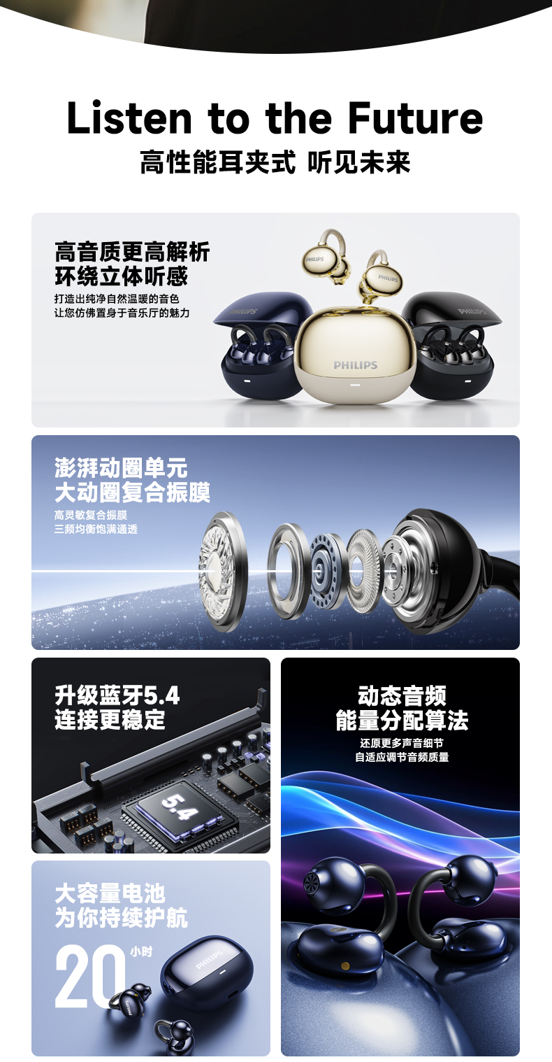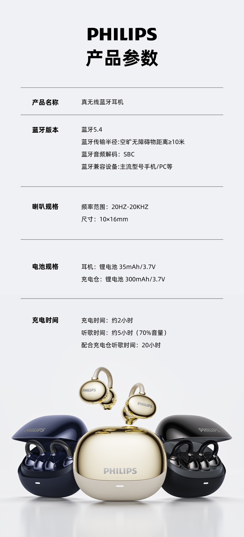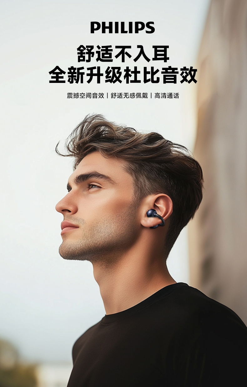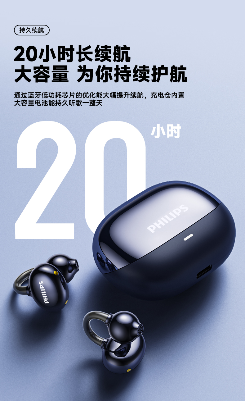 飞利浦(PHILIPS)蓝牙骨传导概念真无线挂耳式开放式夹式耳机(新款)TAT3469