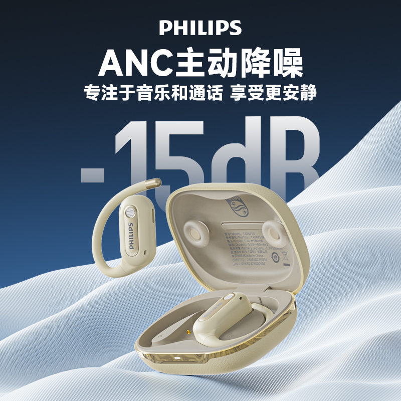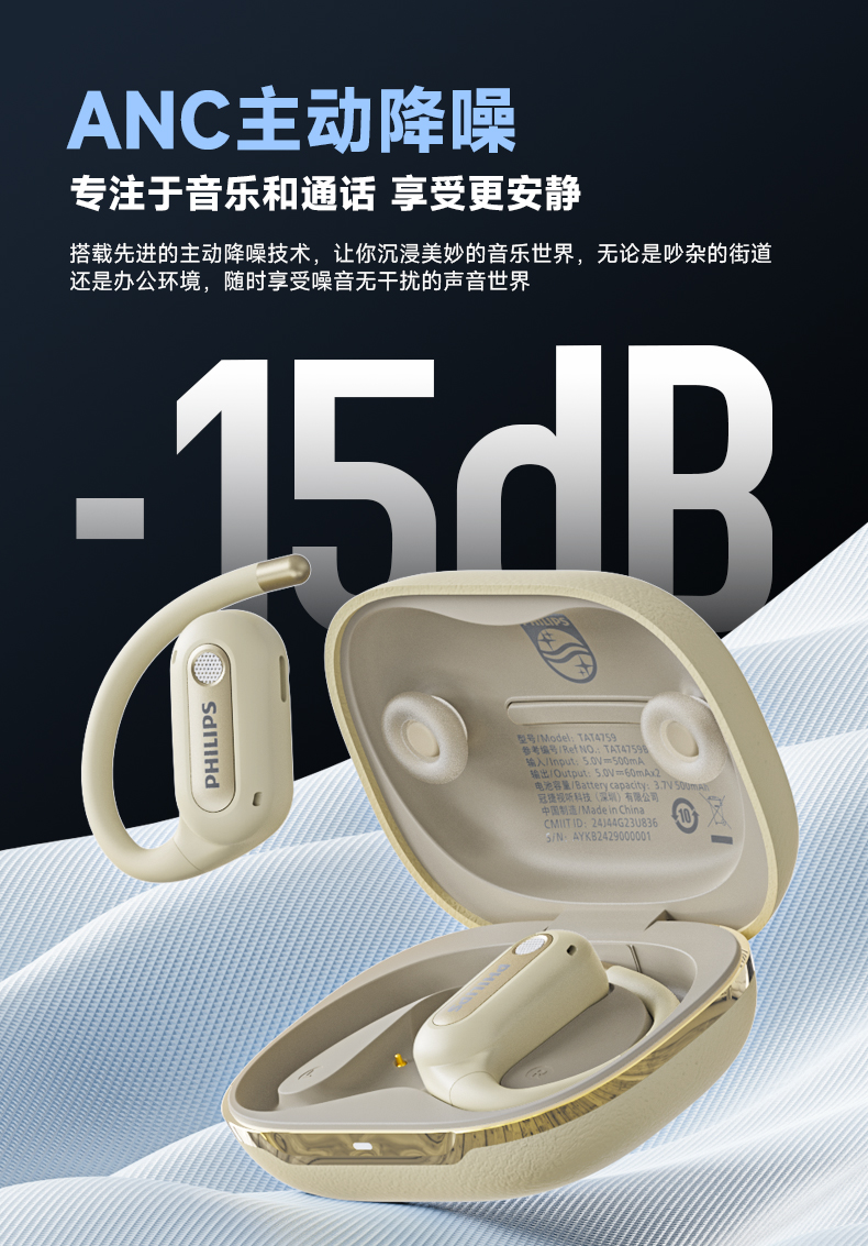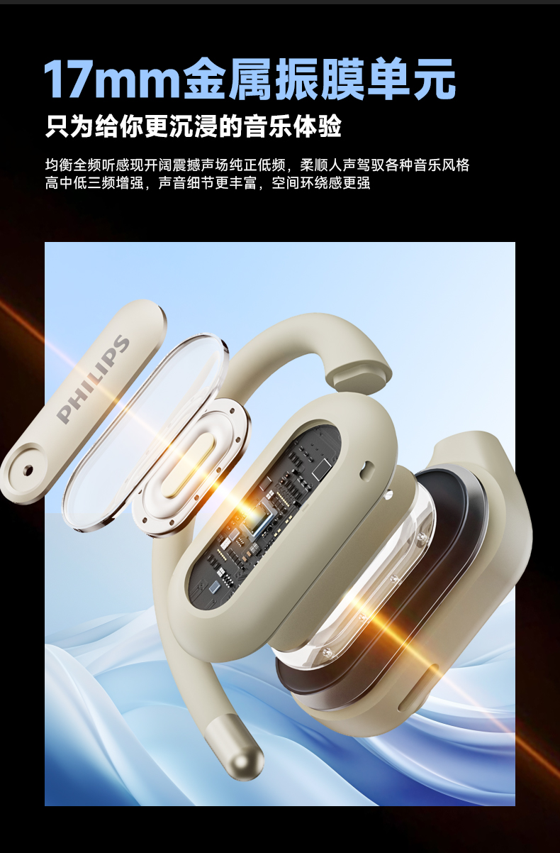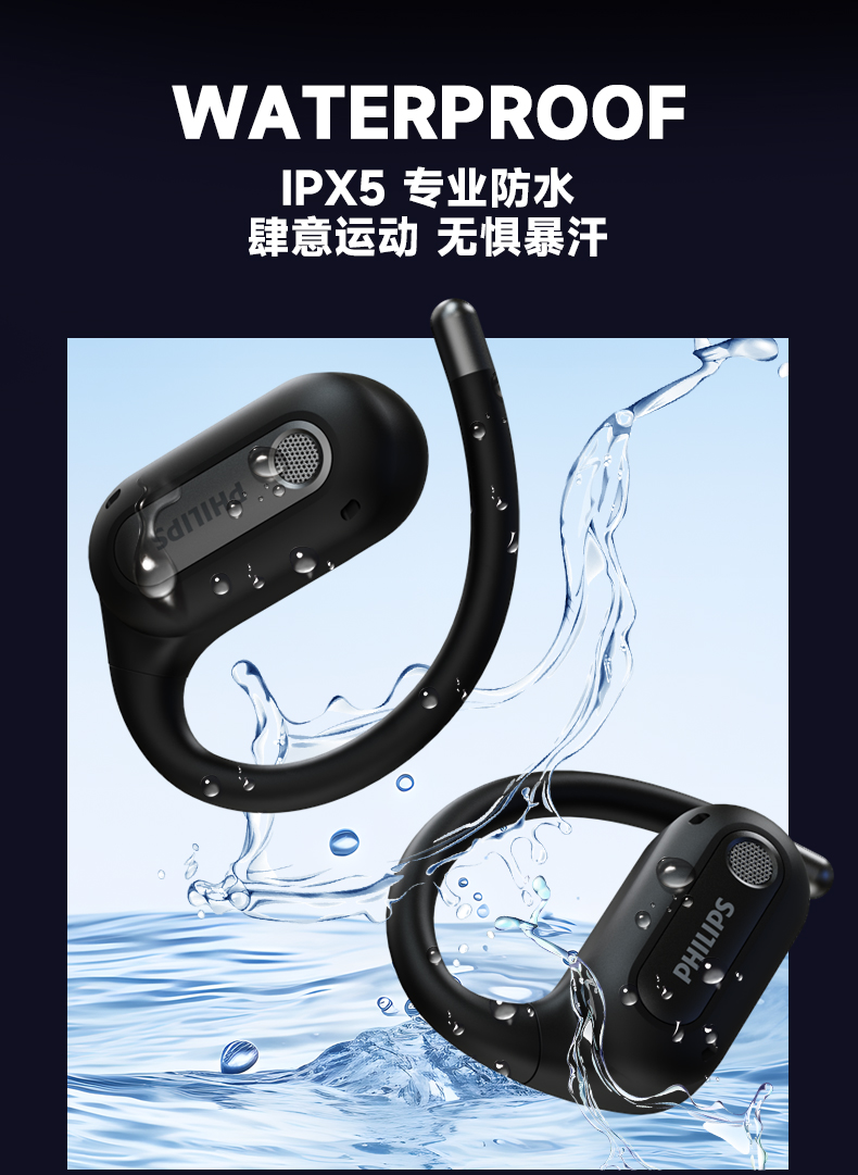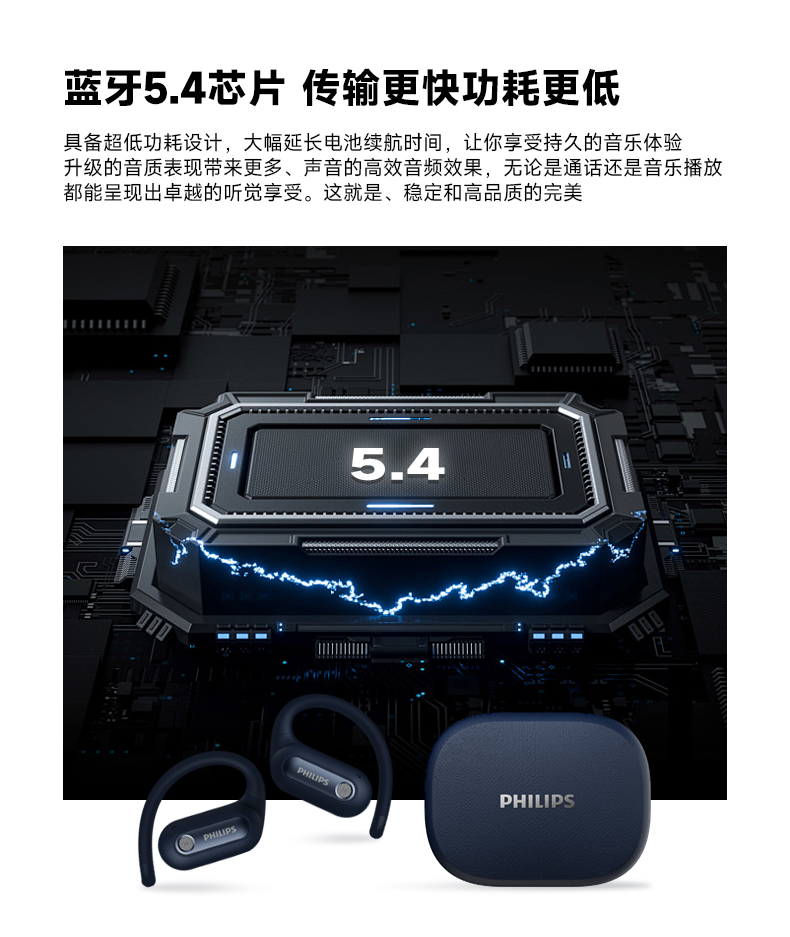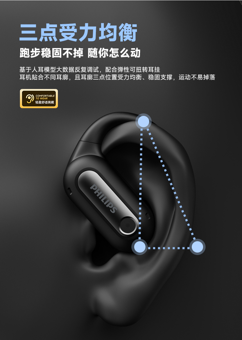 飞利浦(PHILIPS)蓝牙耳机骨传导概念真无线挂耳式开放式不入耳运动跑步长续航高端降噪耳机(新款)TAT4759