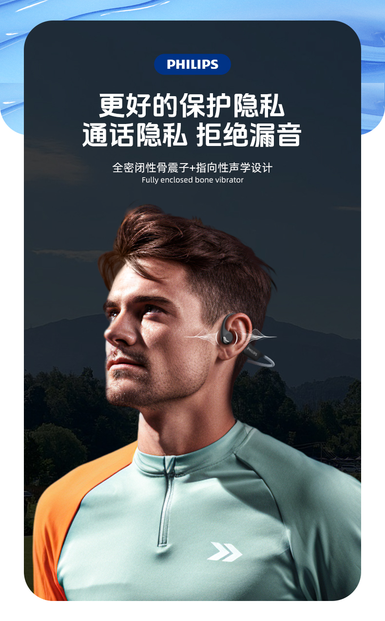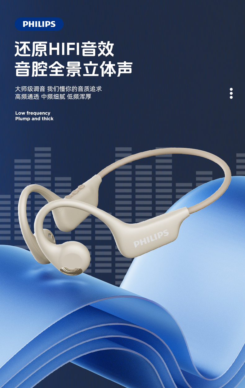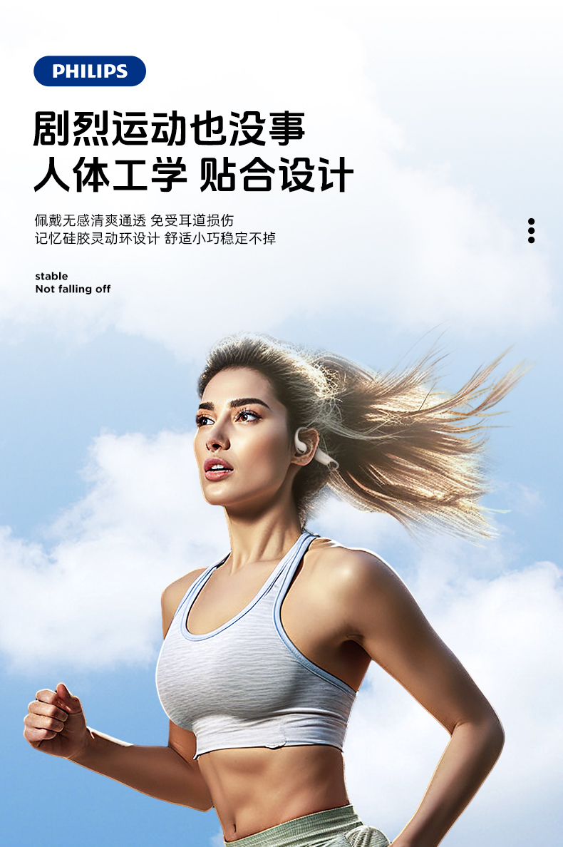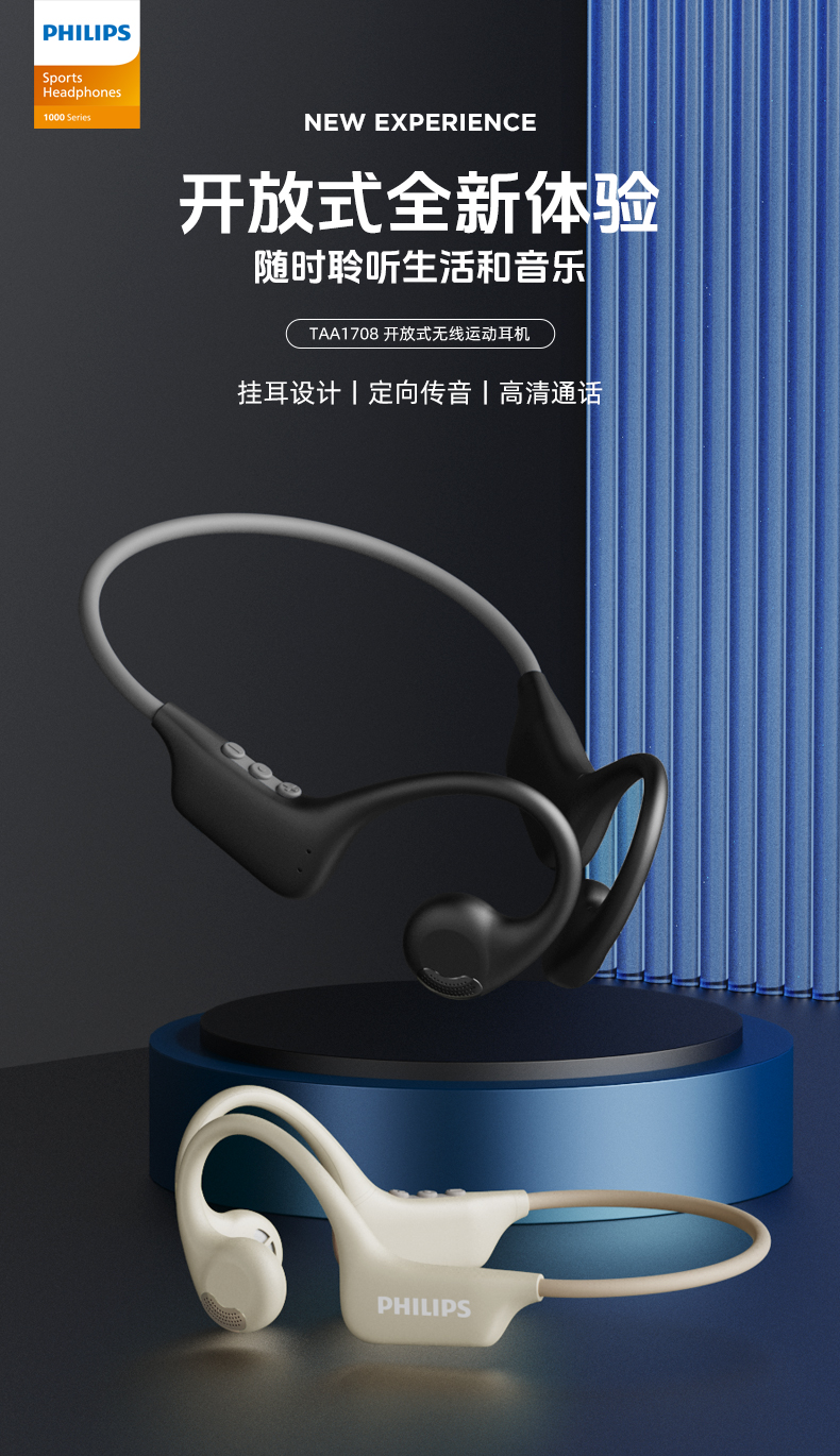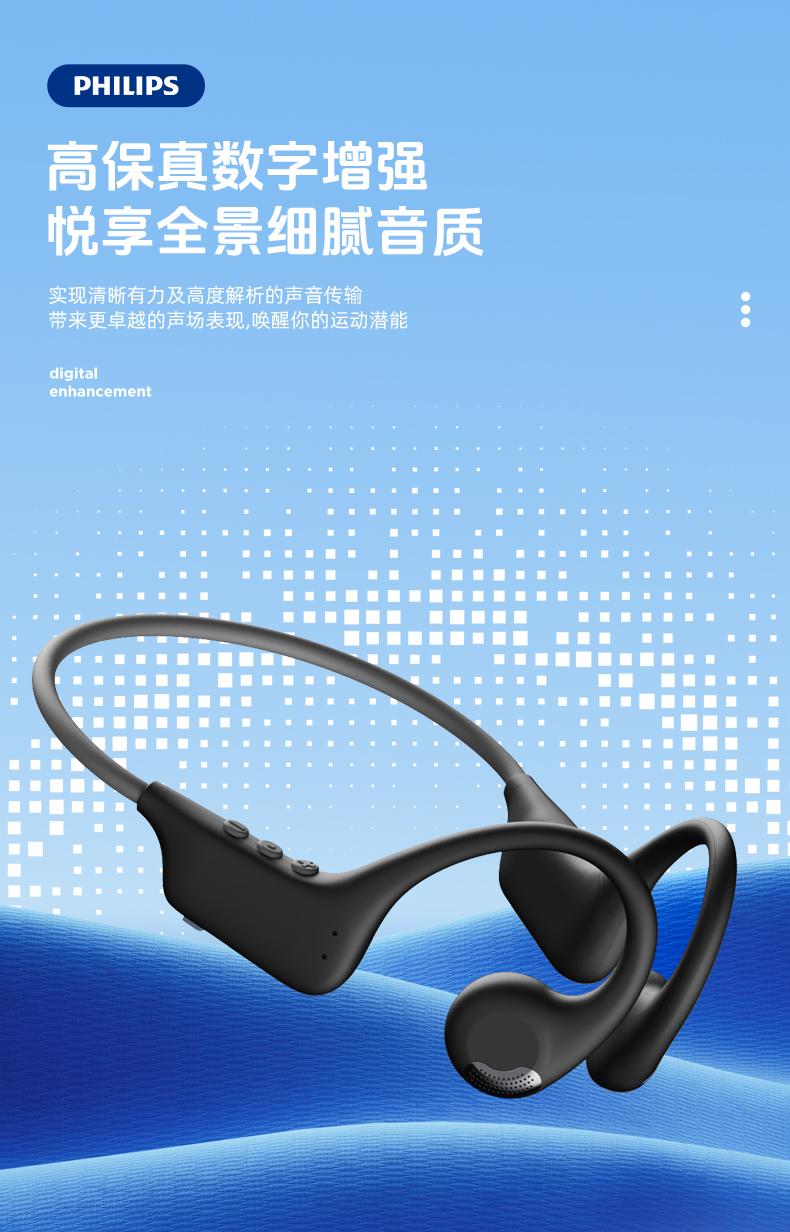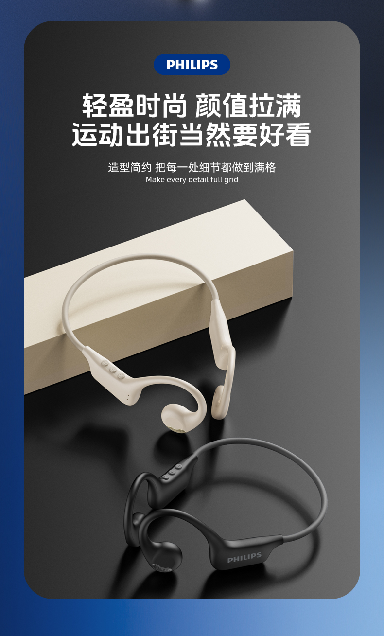 飞利浦(PHILIPS)骨传导概念挂耳式真无线开放式不入耳夹式运动跑步蓝牙耳机TAA1708