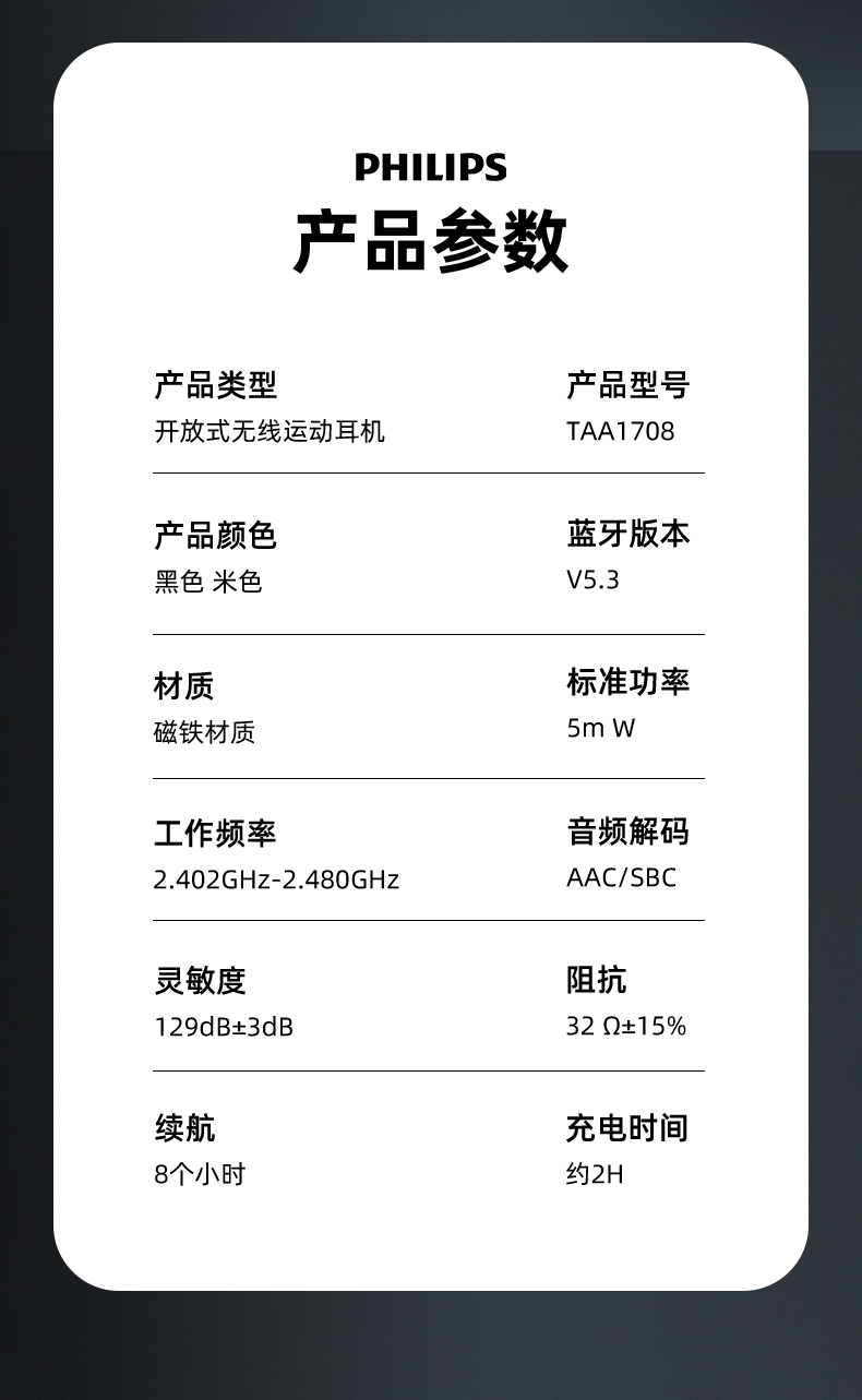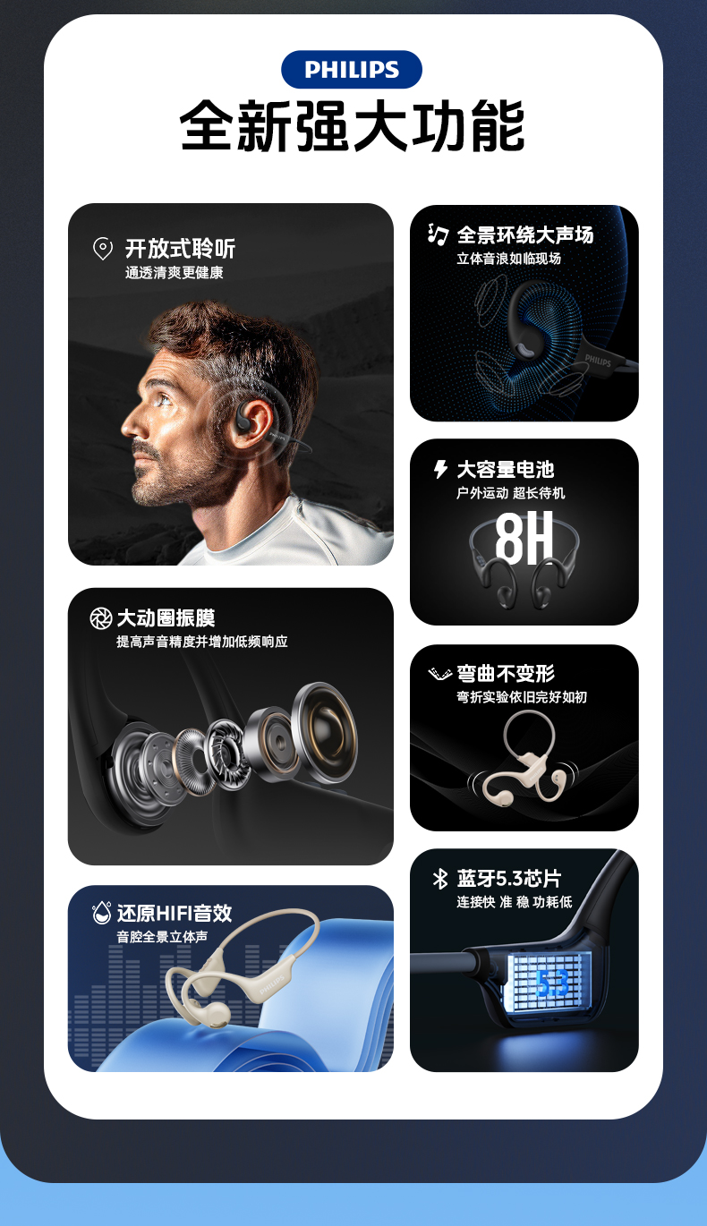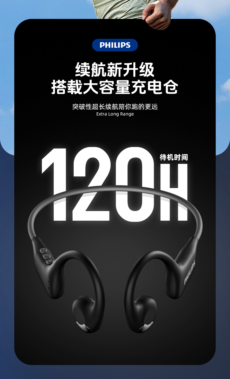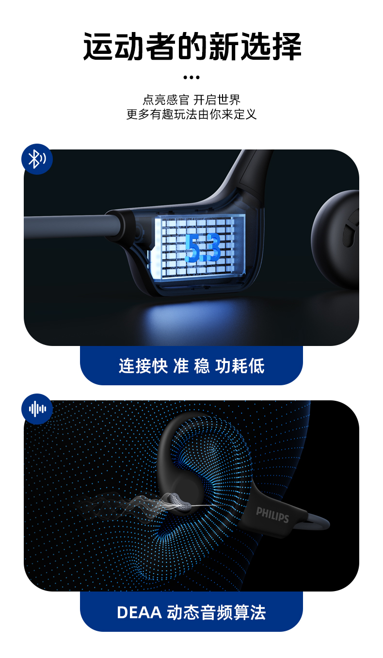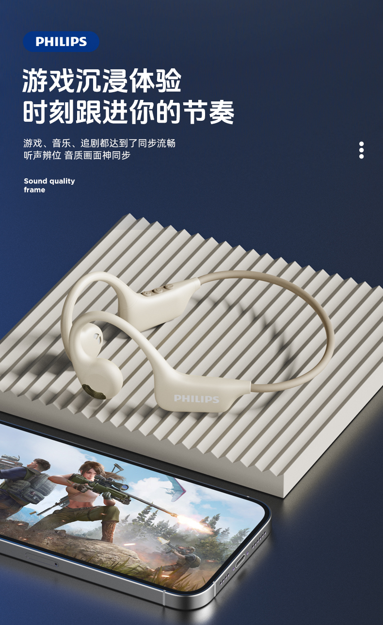 飞利浦(PHILIPS)骨传导概念挂耳式真无线开放式不入耳夹式运动跑步蓝牙耳机TAA1708