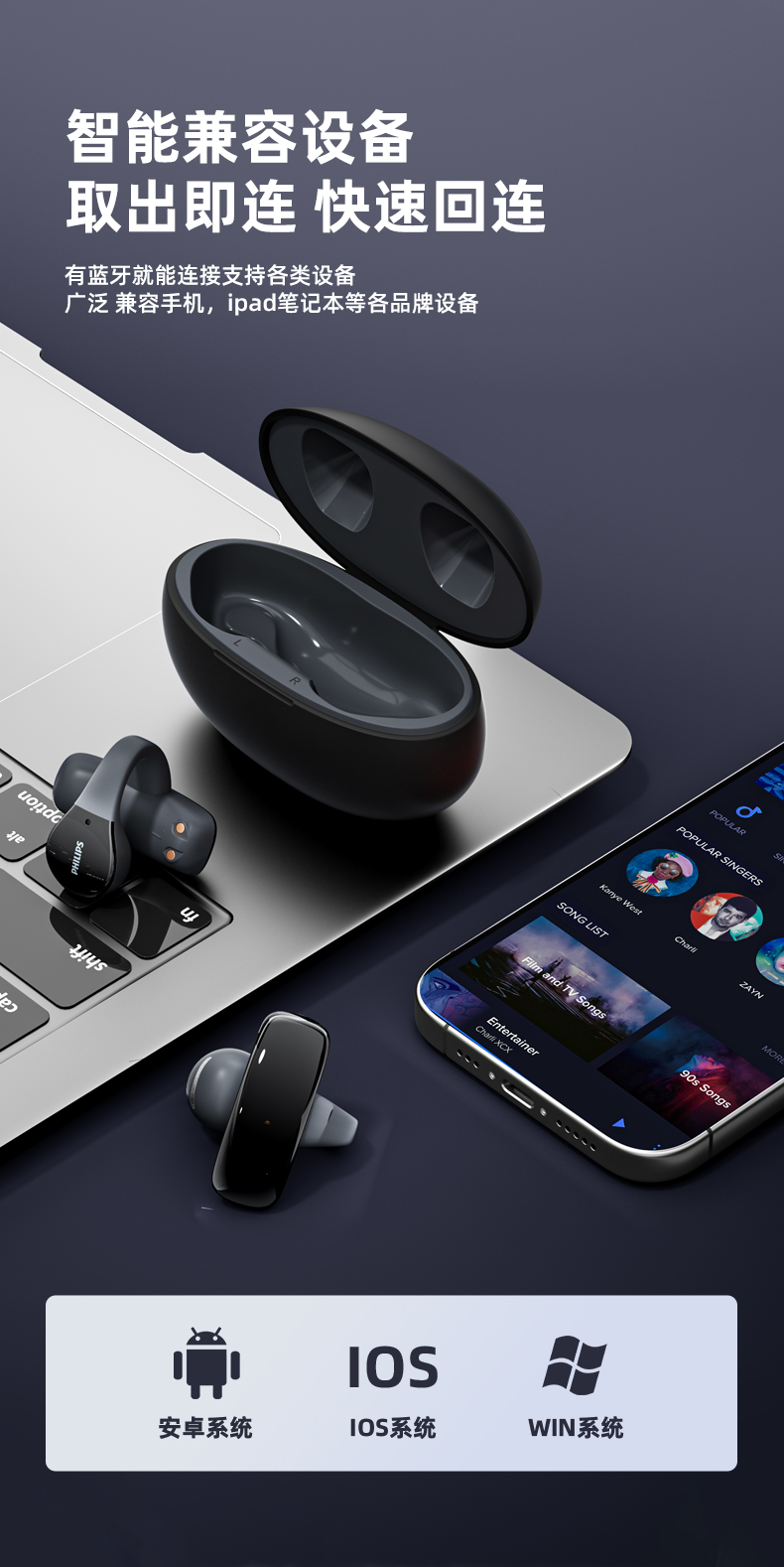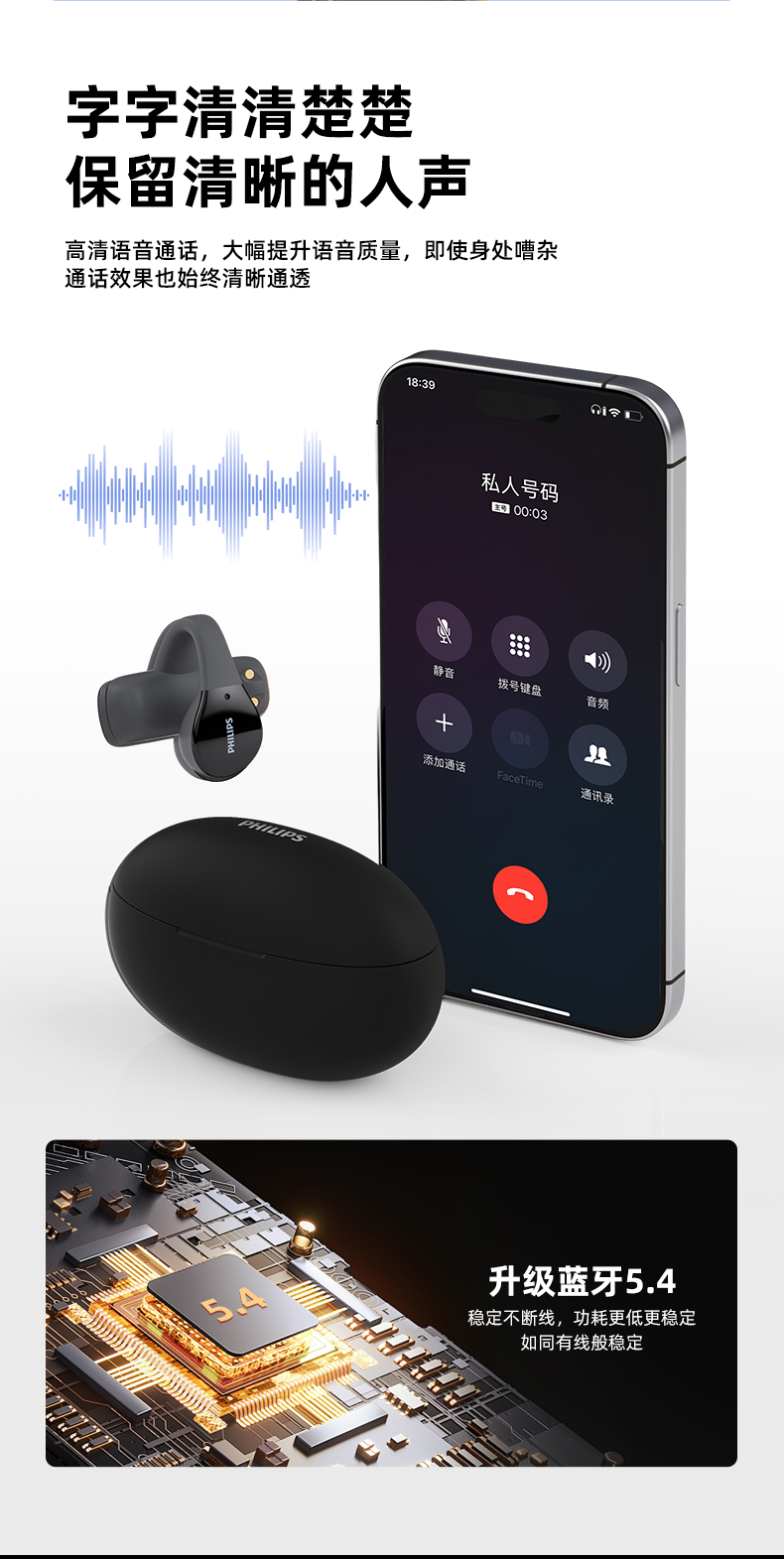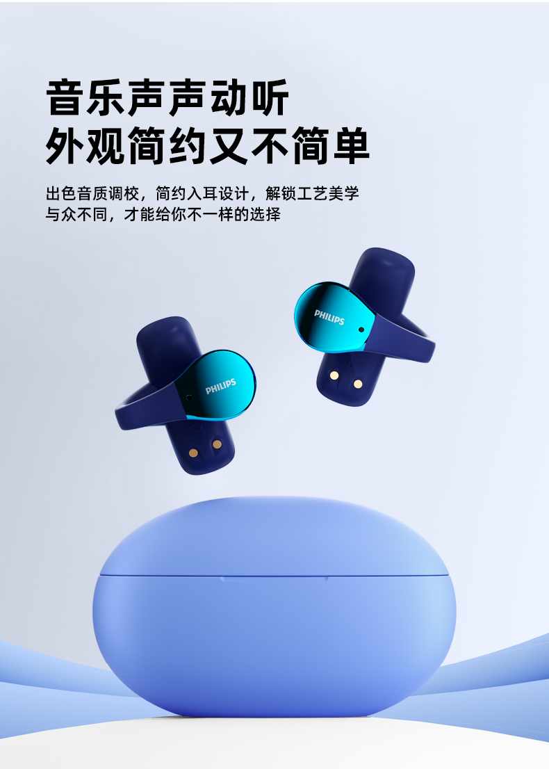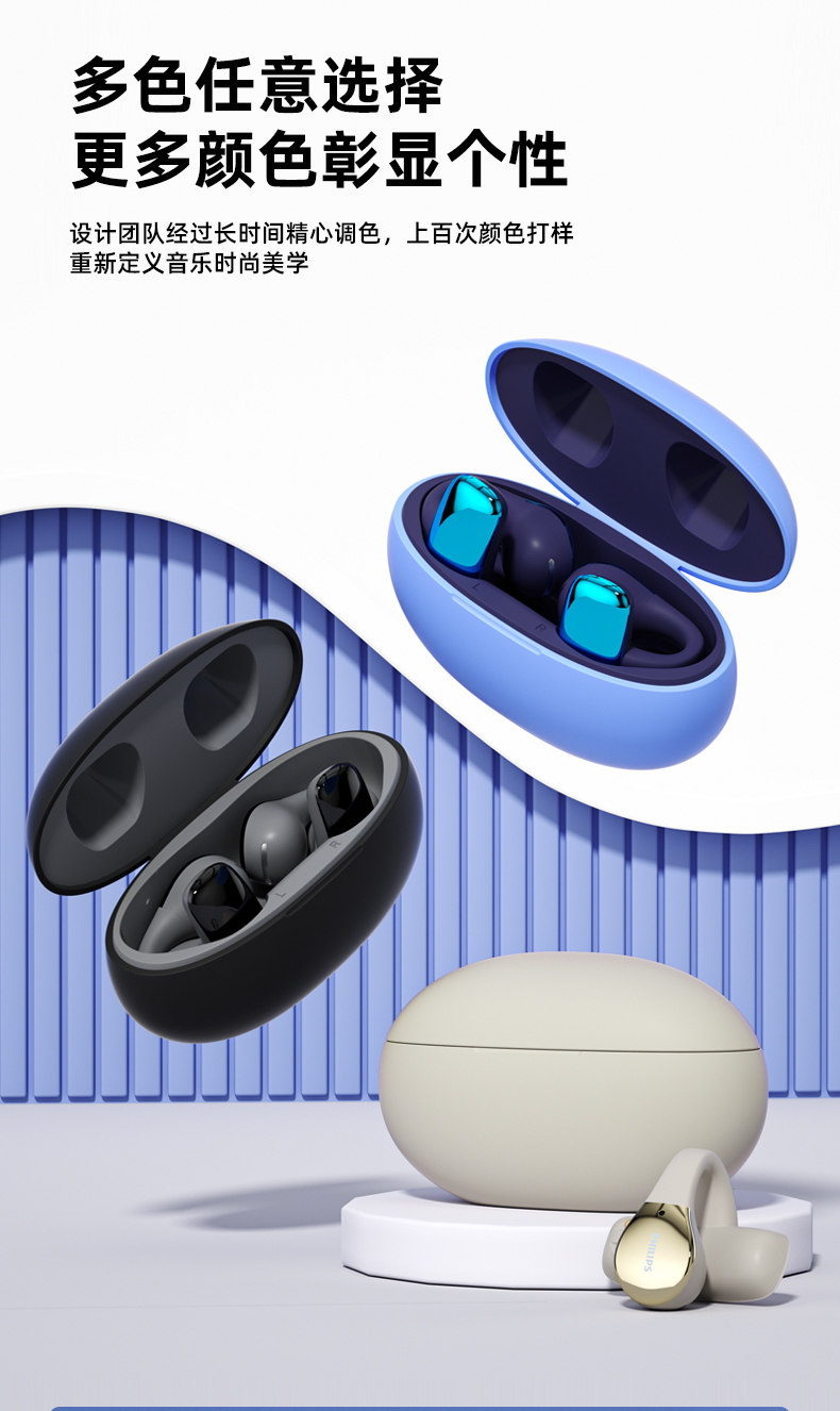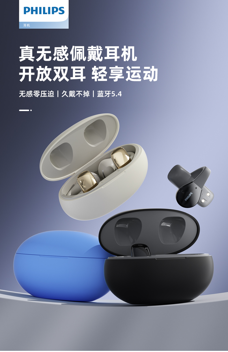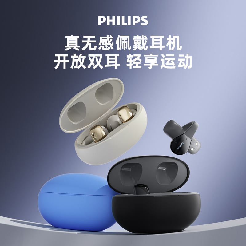 飞利浦(PHILIPS)真无线 蓝牙耳机 开放式挂耳式耳夹式高端运动通话降噪耳机TAT2719